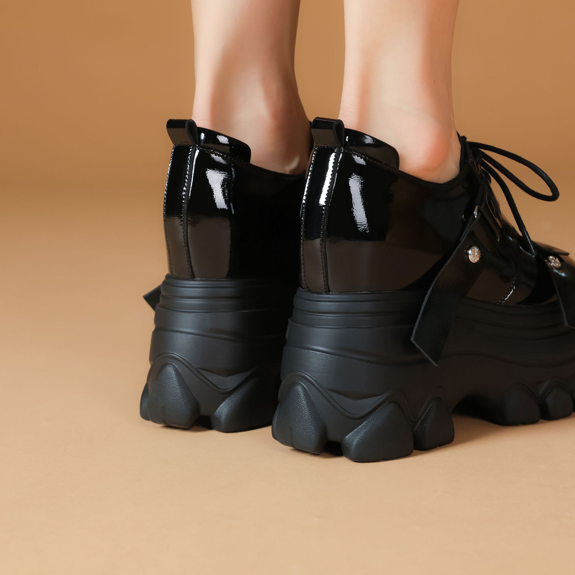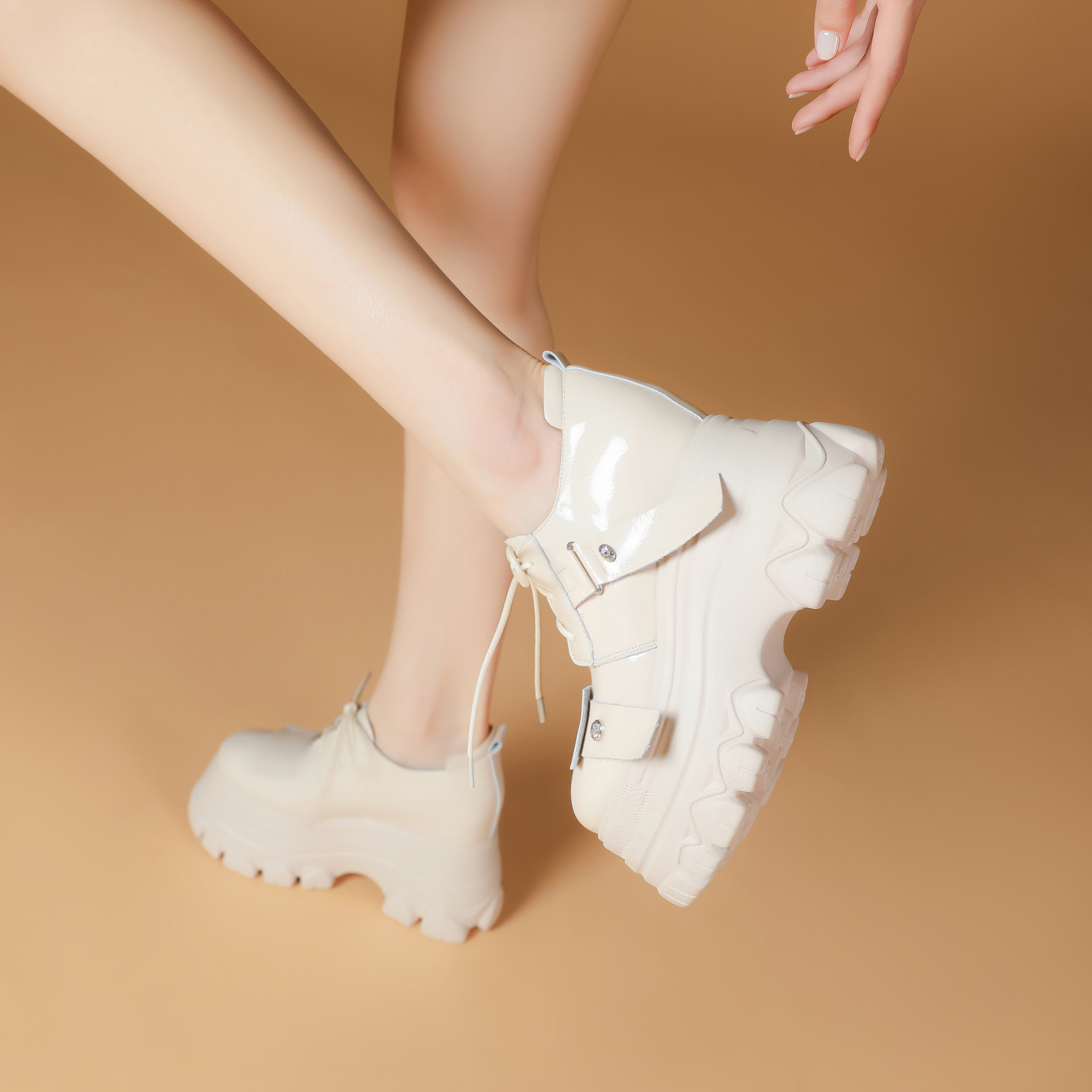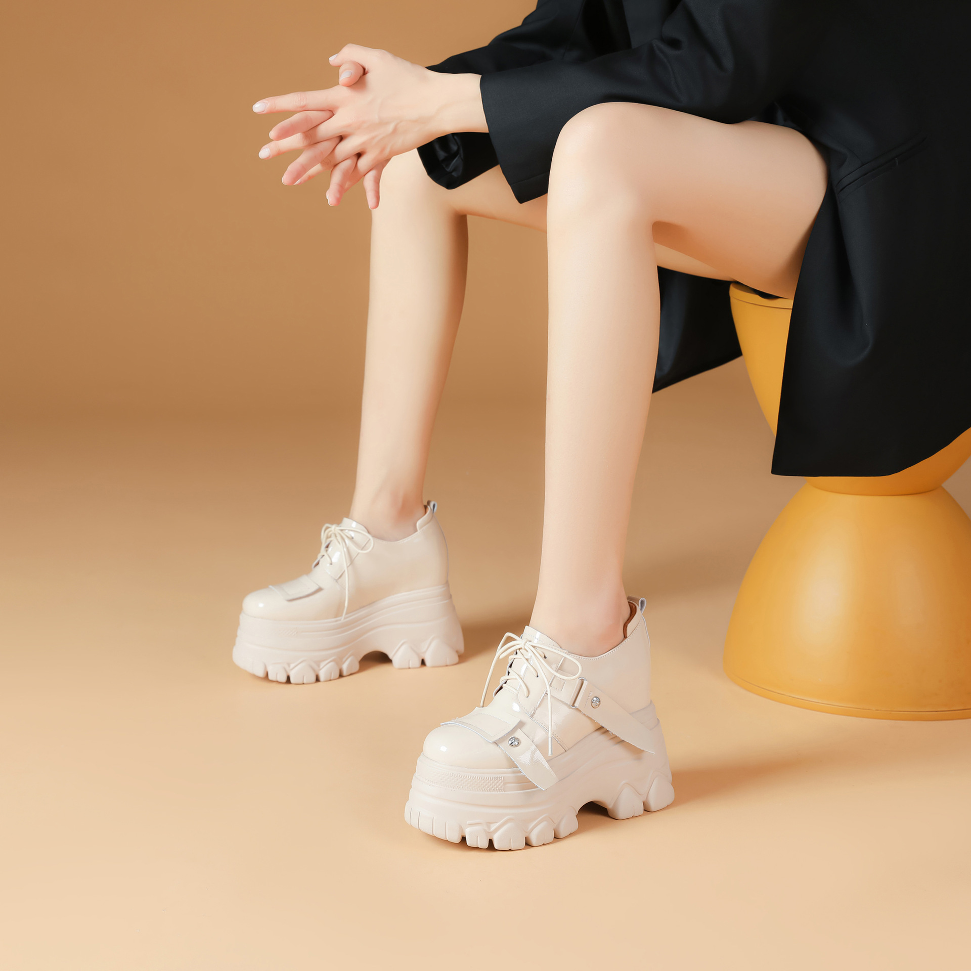 Đôi giày này có phần đế dày bên trong giúp tăng chiều cao một cách tinh tế. Phong cách thiết kế mang hơi hướng cổ điển châu Âu, rất dễ dàng phối hợp với nhiều loại trang phục khác nhau như quần jeans hay váy. Kiểu dáng đơn giản, nhẹ nhàng, phù hợp cho những buổi đi chơi, dạo phố. Bạn chỉ cần xỏ chân vào và cột dây lại là đã có ngay một diện mật trẻ trung, năng động. | Tên sản phẩm: Giày Cao Gót Nữ Cao 12cm Tăng Chiều Cao Đế Cao Hàng Mùa Xuân Thu Đông Phục Cổ Cổ Điển - Giày Dép Nữ | Mã sản phẩm: B4352 - Giá: 2.120.000đ | Mã nhà sản xuất: QIDNG-G05Hình ảnh sản phẩm