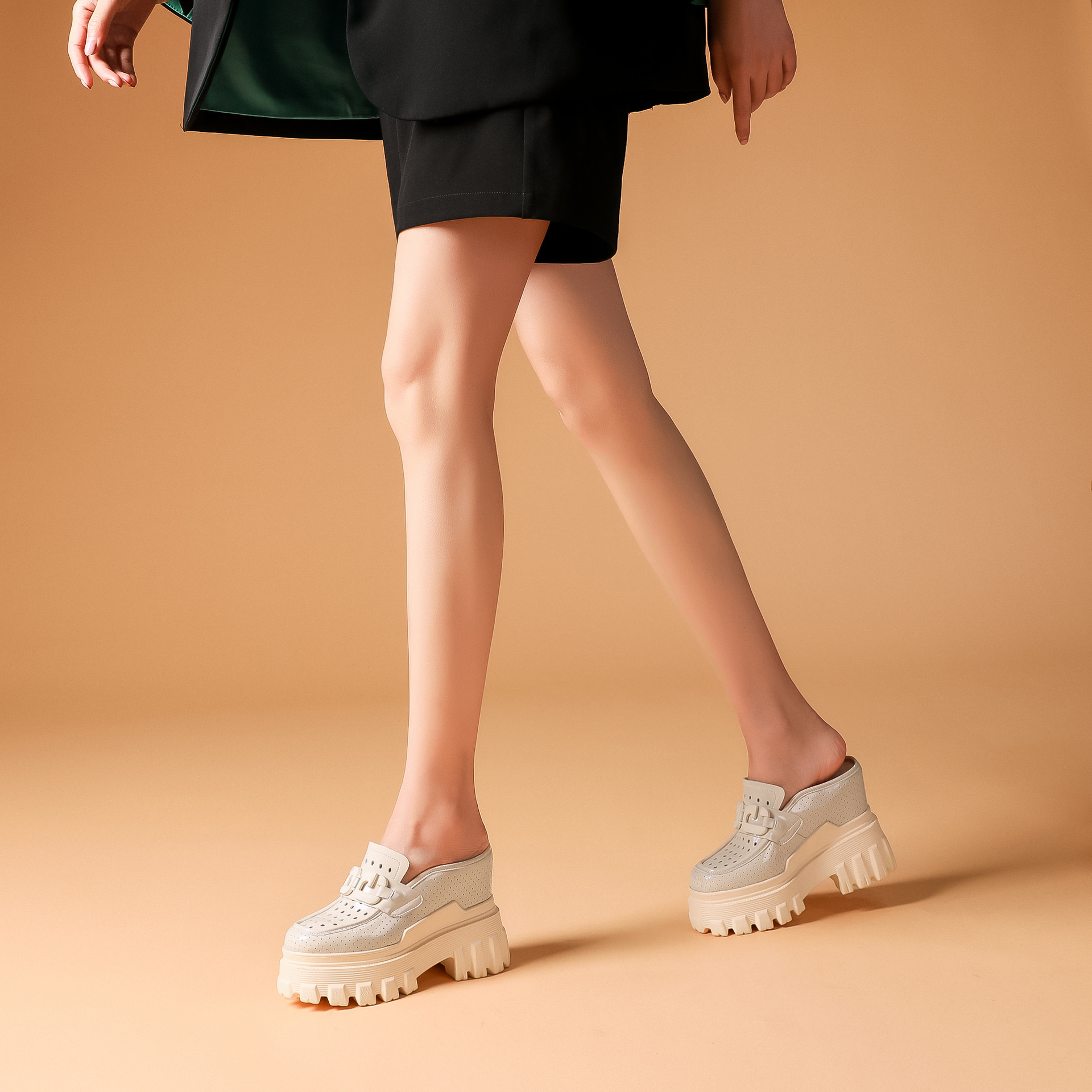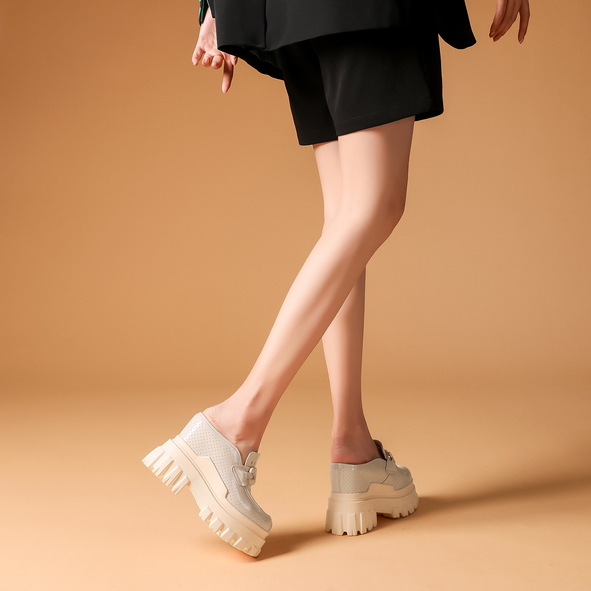 Đôi dép búp bê dành cho nữ này có phần đế được thiết kế dày bên trong, giúp tăng chiều cao một cách tinh tế. Kiểu dáng kín mũi và ôm gót nhưng vẫn tiện lợi như một đôi dép thông thường, rất dễ mang vào hoặc tháo ra. Mẫu mã dễ phối đồ, phù hợp cho những ngày cần sự thoải mái mà vẫn chỉn chu. Bạn có thể dùng nó để đi dạo, mua sắm hoặc trong các sinh hoạt hằng ngày. | Tên sản phẩm: Giày Dép Lê Nữ Cao 12cm Tăng Chiều Cao Đế Cao Hàng Mùa Hè - Giày Dép Nữ | Mã sản phẩm: B4363 - Giá: 1.920.000đ | Mã nhà sản xuất: QIDNG-G05Hình ảnh sản phẩm