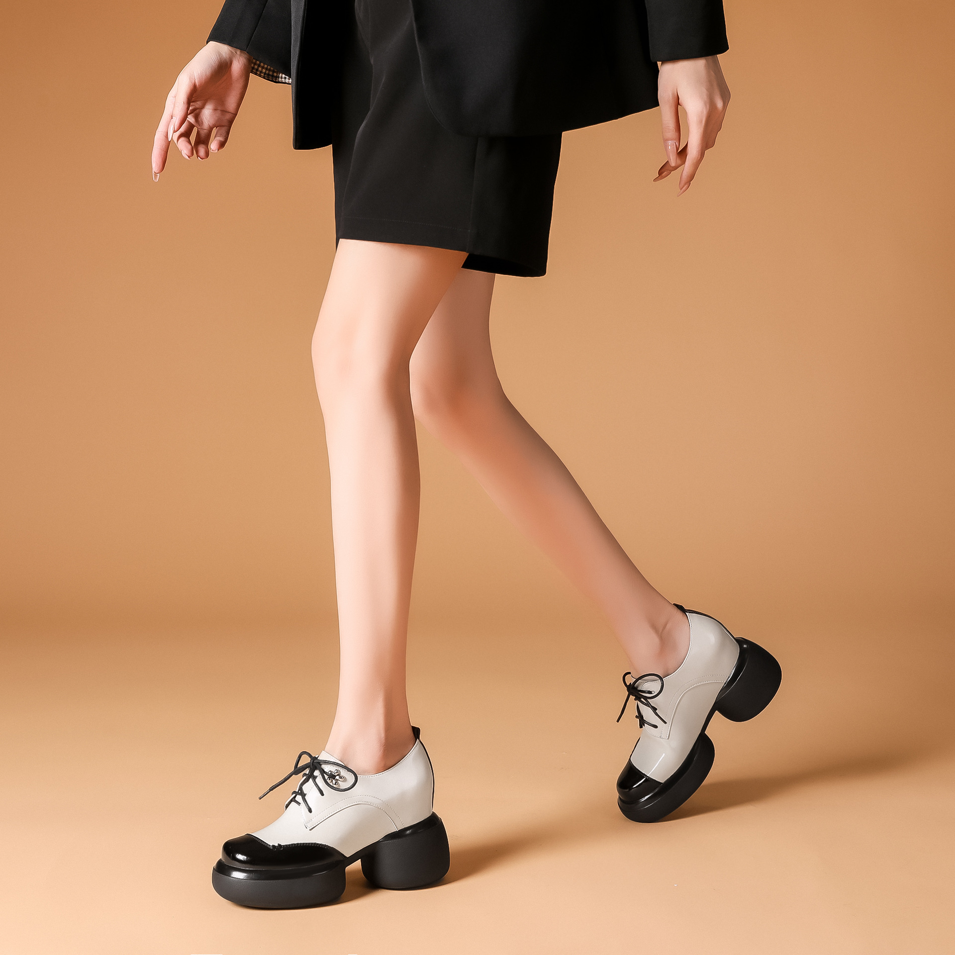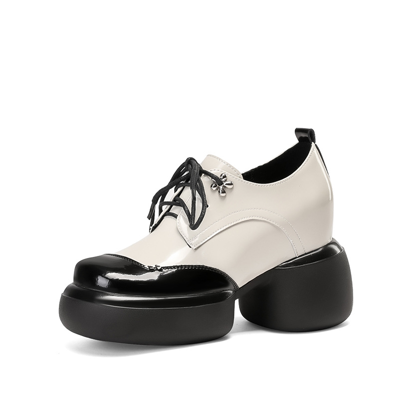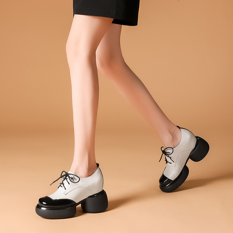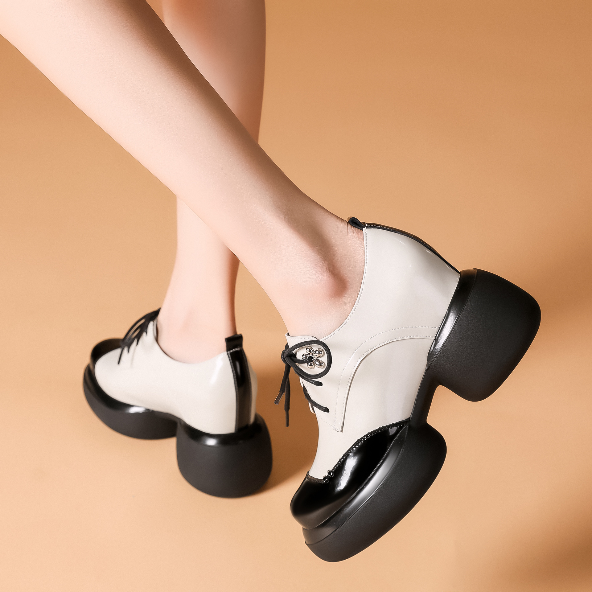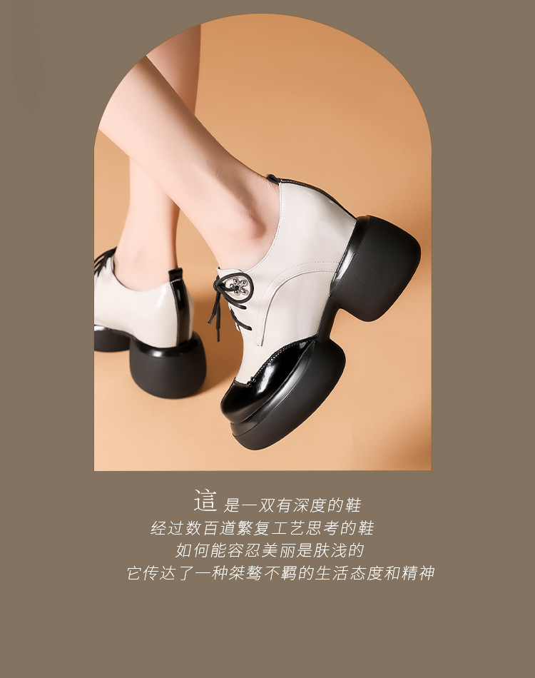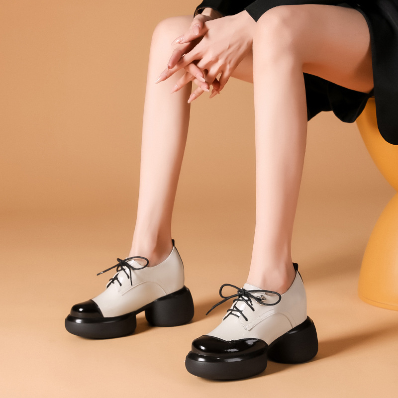 Đôi giày da này mang phong cách Anh cổ điển, phù hợp cho mùa xuân. Đế giày dày khoảng 10cm giúp tăng chiều cao một cách tinh tế, rất thích hợp cho những bạn gái có dáng người nhỏ. Thiết kế có dây buộc điều chỉnh dễ dàng, ôm vừa chân. Có thể phối hợp với nhiều loại trang phục như quần âu, váy hay quần jeans để tạo vẻ ngoài chỉn chu, lịch sự mỗi khi ra ngoài. | Tên sản phẩm: Giày Da Nữ Cao 10cm Tăng Chiều Cao Đế Cao Hàng Mùa Xuân Thu Đông - Giày Dép Nữ | Mã sản phẩm: B4389 - Giá: 1.640.000đ | Mã nhà sản xuất: QIDNG-G05Hình ảnh sản phẩm