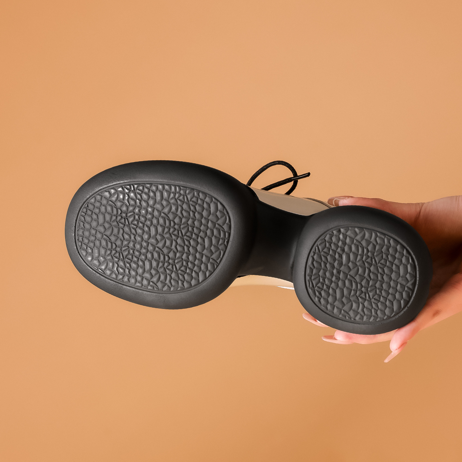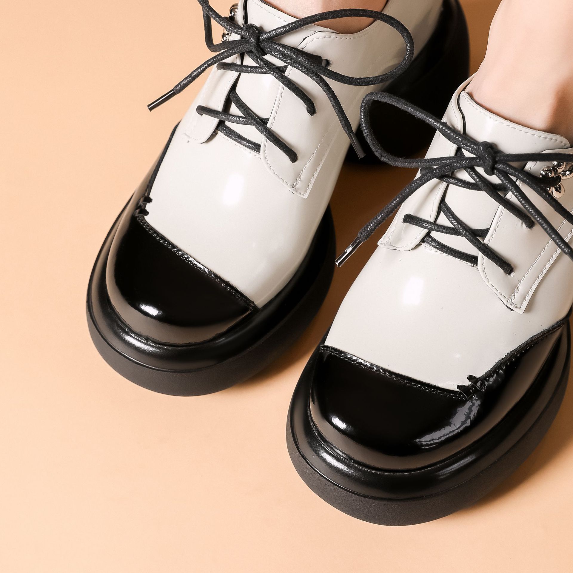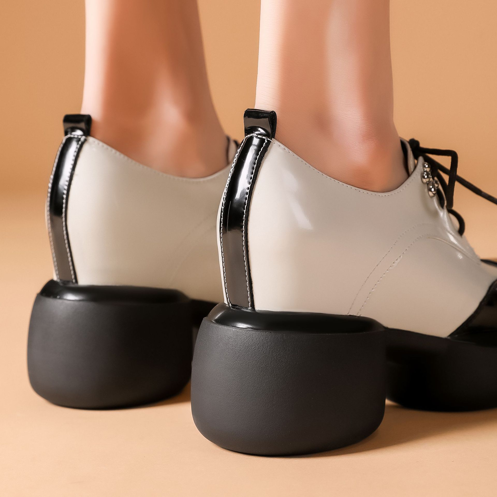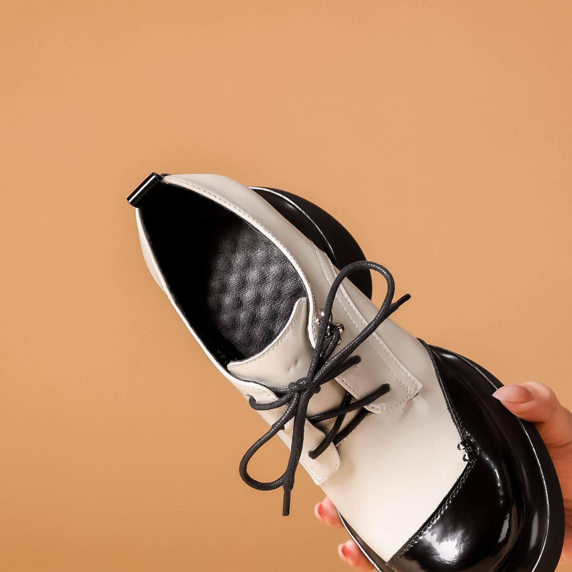 Đôi giày da này mang phong cách Anh cổ điển, phù hợp cho mùa xuân. Đế giày dày khoảng 10cm giúp tăng chiều cao một cách tinh tế, rất thích hợp cho những bạn gái có dáng người nhỏ. Thiết kế có dây buộc điều chỉnh dễ dàng, ôm vừa chân. Có thể phối hợp với nhiều loại trang phục như quần âu, váy hay quần jeans để tạo vẻ ngoài chỉn chu, lịch sự mỗi khi ra ngoài. | Tên sản phẩm: Giày Da Nữ Cao 10cm Tăng Chiều Cao Đế Cao Hàng Mùa Xuân Thu Đông - Giày Dép Nữ | Mã sản phẩm: B4389 - Giá: 1.640.000đ | Mã nhà sản xuất: QIDNG-G05Hình ảnh sản phẩm