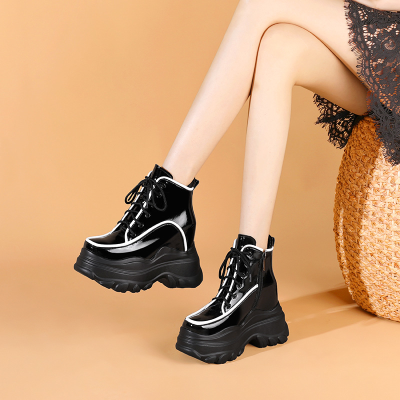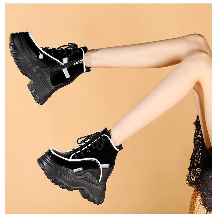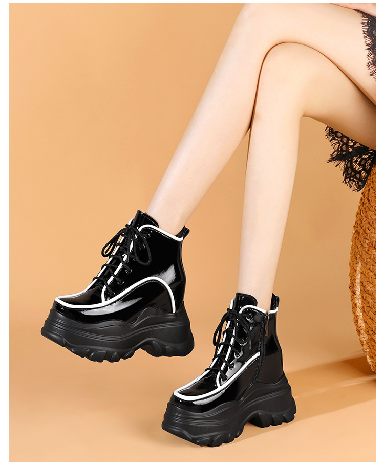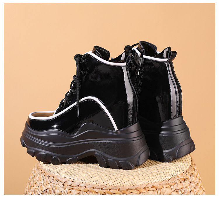 Đôi bốt ngắn nữ tính này có phần đế được thiết kế dày và nhẹ, giúp tăng chiều cao một cách tinh tế. Kiểu dáng cổ điển dễ dàng phối hợp với nhiều trang phục khác nhau như quần jeans, váy hay quần thể thao, phù hợp cho các dịp đi chơi, dạo phố. Bạn có thể sử dụng hằng ngày, mang lại cảm giác thoải mái và vững chãi trong từng bước đi. | Tên sản phẩm: Giày Boot Cổ Thấp Nữ Cao 12cm Tăng Chiều Cao Đế Cao Hàng Mùa Xuân Thu Đông - Giày Dép Nữ | Mã sản phẩm: B4414 - Giá: 1.830.000đ | Mã nhà sản xuất: QIDNG-G05Hình ảnh sản phẩm