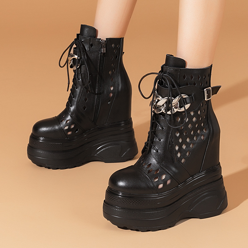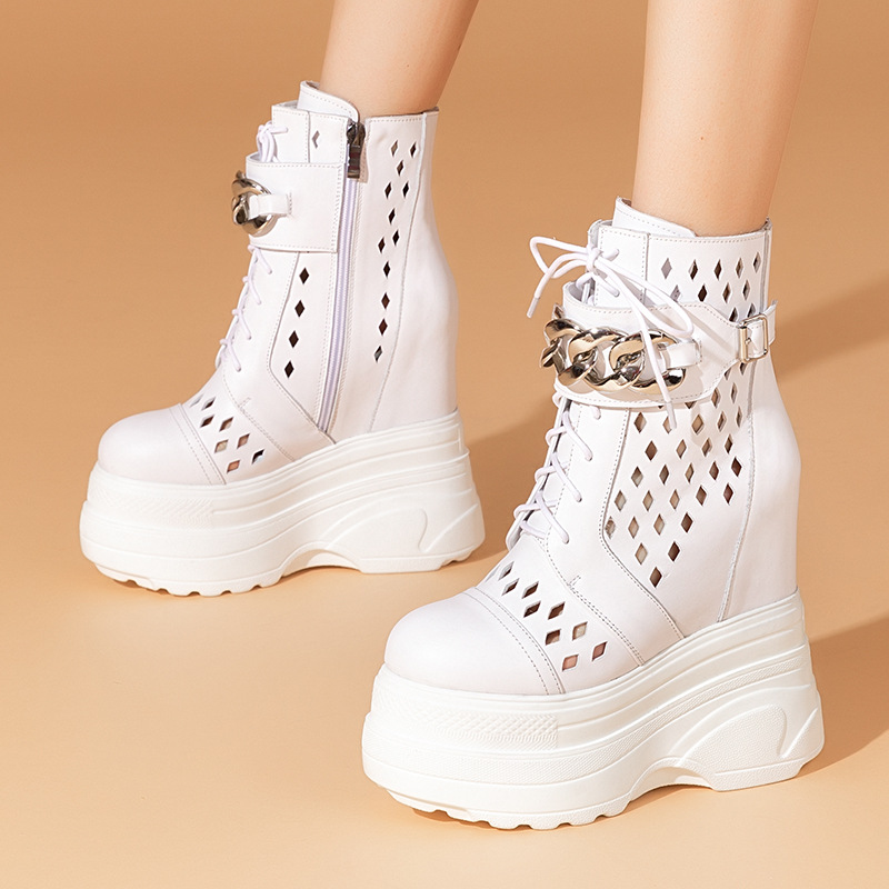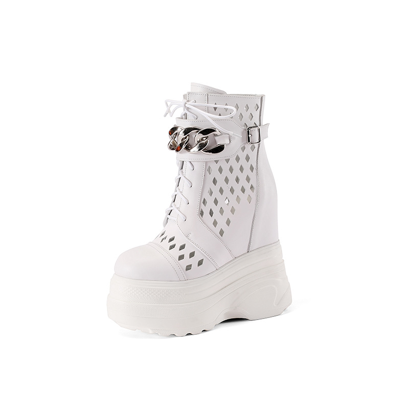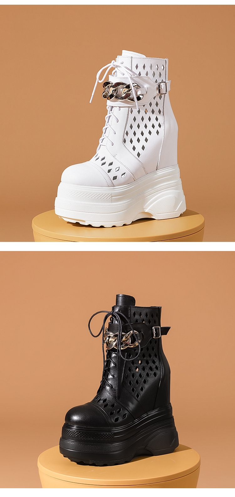 Bốt nữ với phần đế dày và gót cao tới 16cm, giúp tôn dáng một cách tinh tế. Điểm nhấn là khóa kim loại chắc chắn, phối cùng thiết kế khoét lỗ tăng độ thoáng khí. Kiểu dáng ôm chân, dễ dàng kết hợp với nhiều trang phục khác nhau. Sản phẩm mang đến sự thoải mái khi di chuyển mà vẫn giữ được vẻ ngoài thời trang. | Tên sản phẩm: Cao Gót Nữ Cao 16cm Tăng Chiều Cao Thoáng Khí Đế Cao - Giày Dép Nữ | Mã sản phẩm: B4436 - Giá: 2.690.000đ | Mã nhà sản xuất: QIDNG-G06Hình ảnh sản phẩm
