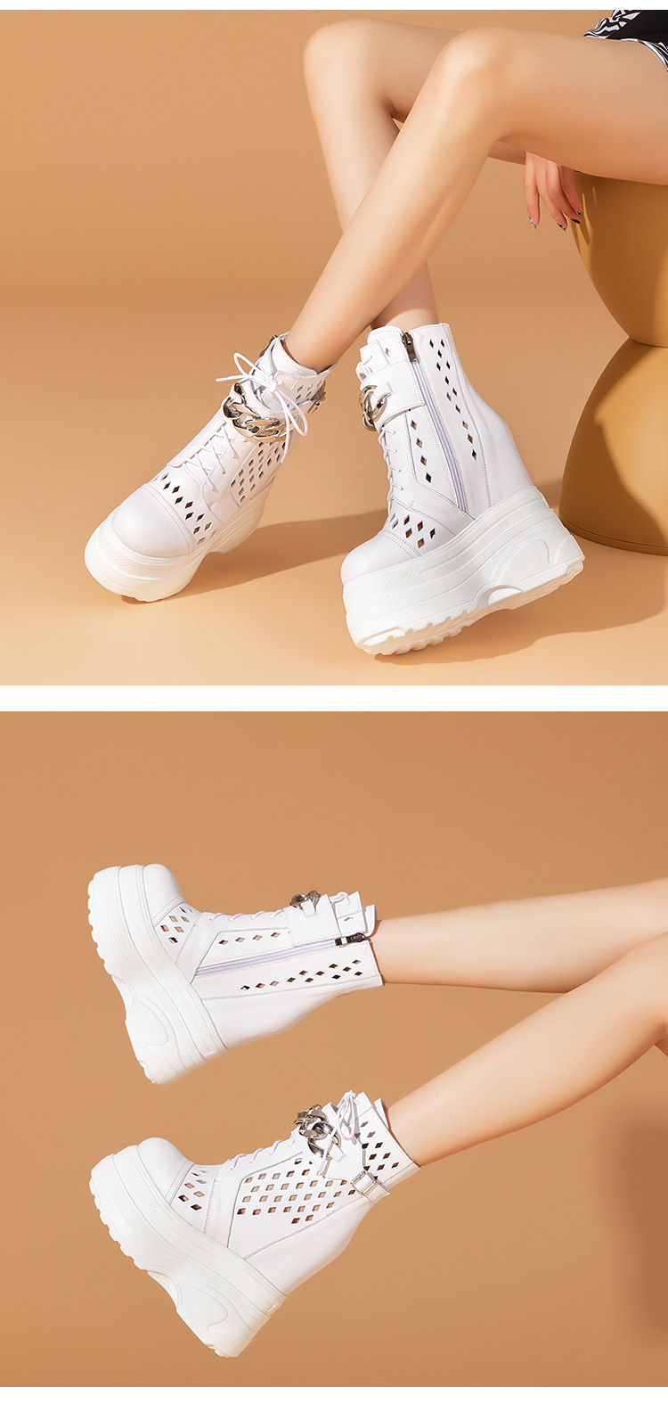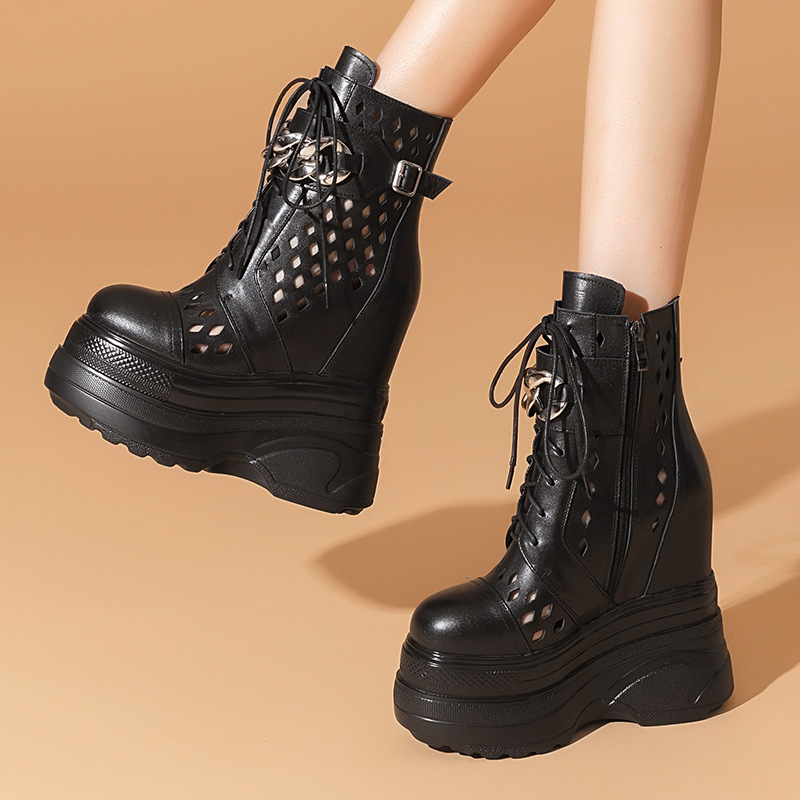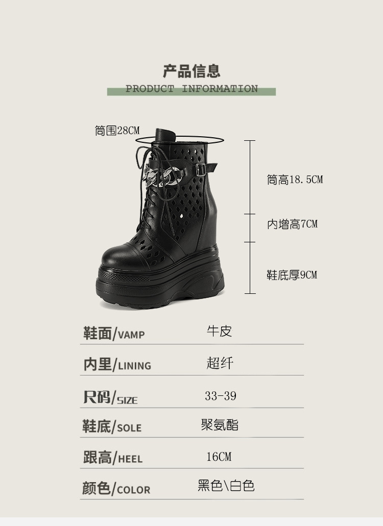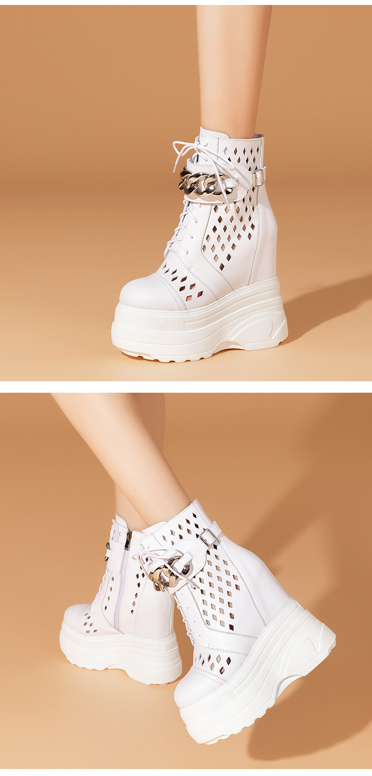 Bốt nữ với phần đế dày và gót cao tới 16cm, giúp tôn dáng một cách tinh tế. Điểm nhấn là khóa kim loại chắc chắn, phối cùng thiết kế khoét lỗ tăng độ thoáng khí. Kiểu dáng ôm chân, dễ dàng kết hợp với nhiều trang phục khác nhau. Sản phẩm mang đến sự thoải mái khi di chuyển mà vẫn giữ được vẻ ngoài thời trang. | Tên sản phẩm: Cao Gót Nữ Cao 16cm Tăng Chiều Cao Thoáng Khí Đế Cao - Giày Dép Nữ | Mã sản phẩm: B4436 - Giá: 2.690.000đ | Mã nhà sản xuất: QIDNG-G06Hình ảnh sản phẩm