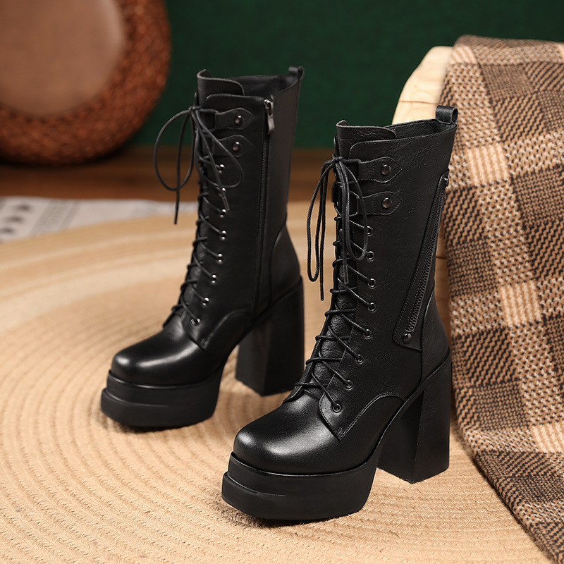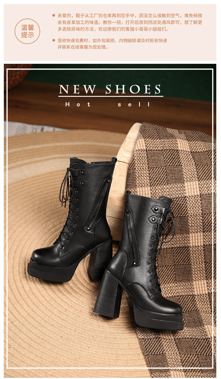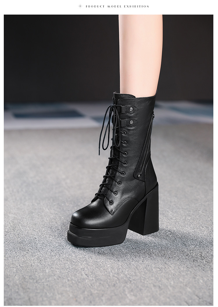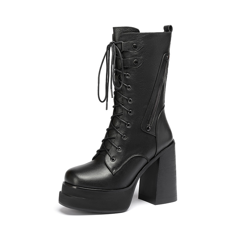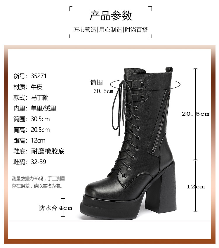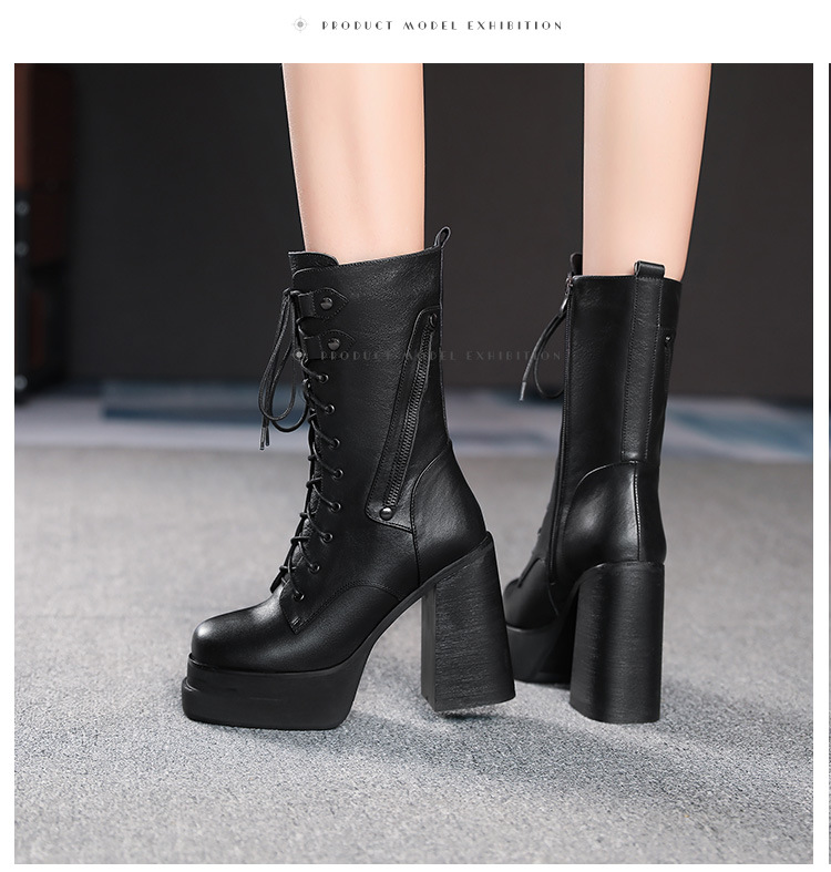 Mẫu bốt cổ trung mới nhất cho các ngày thu đông. Đế ngoài có phần đệm chống nước, cùng độ cao gót siêu khủng lên tới mười hai phân. Kiểu dáng gót to vững chãi, phối cùng dây buộc cá tính giúp ôm chân thoải mái. Dễ dàng phối với quần jeans năng động hay váy cá tính. Mang trong các dịp dạo phố, gặp gỡ bạn bè, tôn dáng đầy ấn tượng. | Tên sản phẩm: Boot Cổ Thấp Nữ Cao 12cm Gót Vuông Hàng Mùa Xuân Thu Đông - Giày Dép Nữ | Mã sản phẩm: B4441 - Giá: 2.680.000đ | Mã nhà sản xuất: QIDNG-G06Hình ảnh sản phẩm