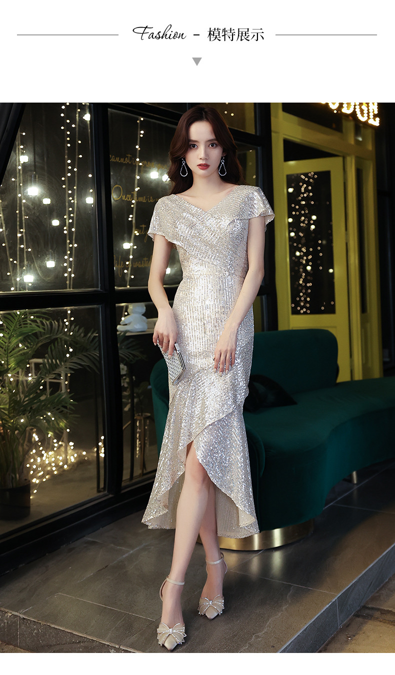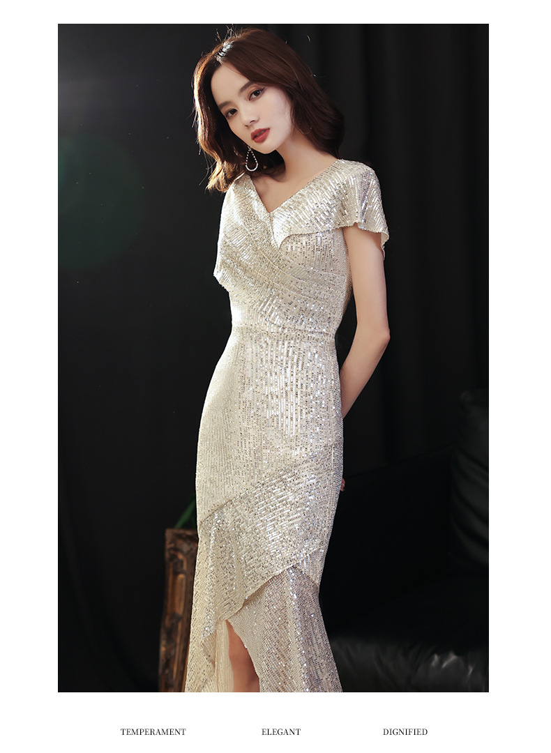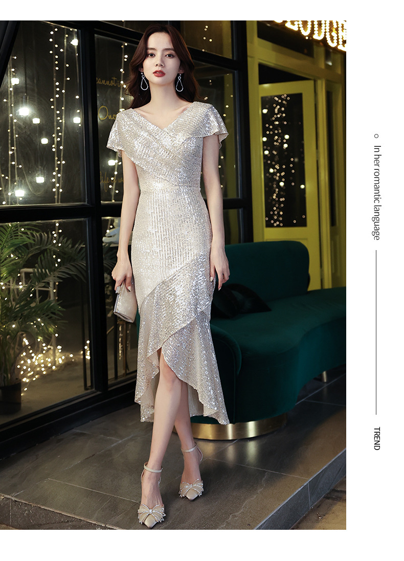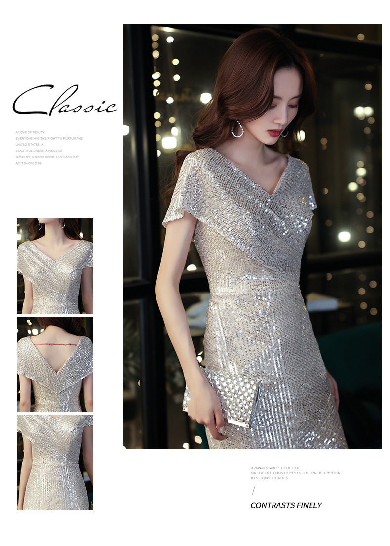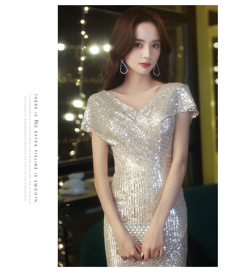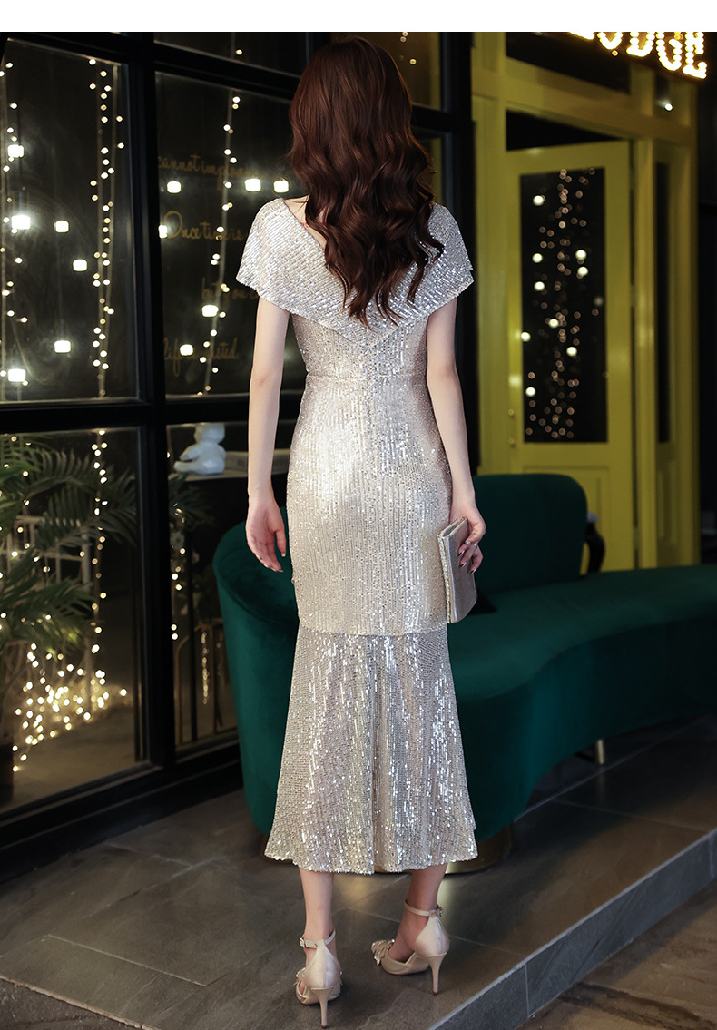 Chiếc đầm dự tiệc này có điểm nhấn là những hạt ánh sáng lấp lánh tinh tế khắp thân váy. Thiết kế ôm sát cơ thể, phần chân váy xòe nhẹ tạo dáng đuôi cá duyên dáng, giúp tôn lên những đường nét cơ thể. Chất vải mềm mại mang lại sự thoải mái khi mặc. Sản phẩm phù hợp cho các buổi tiệc tối hoặc sự kiện. Có thể kết hợp cùng phụ kiện đơn giản và giày cao gót để hoàn thiện bộ trang phục. | Tên sản phẩm: Váy Đầm Liền Thân Dự Tiệc Nữ Dáng Ôm Kiểu Đuôi Cá - Thời Trang Nữ | Mã sản phẩm: B4446 - Giá: 1.220.000đ | Mã nhà sản xuất: SUCTTO-G04Hình ảnh sản phẩm