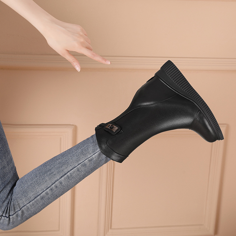 Giày bốt thiết kế mũi nhọn, phần gót dạng đế xuồng dày tạo độ nâng chiều cao nhẹ nhàng bên trong. Sản phẩm sử dụng chất liệu đế làm từ cao su, giúp bám sàn tốt, hạn chế trơn trượt khi di chuyển. Kiểu dáng cổ thấp, màu sắc trang nhã dễ dàng phối cùng nhiều trang phục như quần jeans hay váy. Bạn có thể mang hàng ngày để tạo điểm nhấn năng động và thoải mái. | Tên sản phẩm: Cao Gót Nữ Mũi Nhọn Tăng Chiều Cao Đế Xuồng Đế Cao Hàng Mùa Xuân Thu Đông - Giày Dép Nữ | Mã sản phẩm: B4447 - Giá: 1.830.000đ | Mã nhà sản xuất: QIDNG-G05Hình ảnh sản phẩm