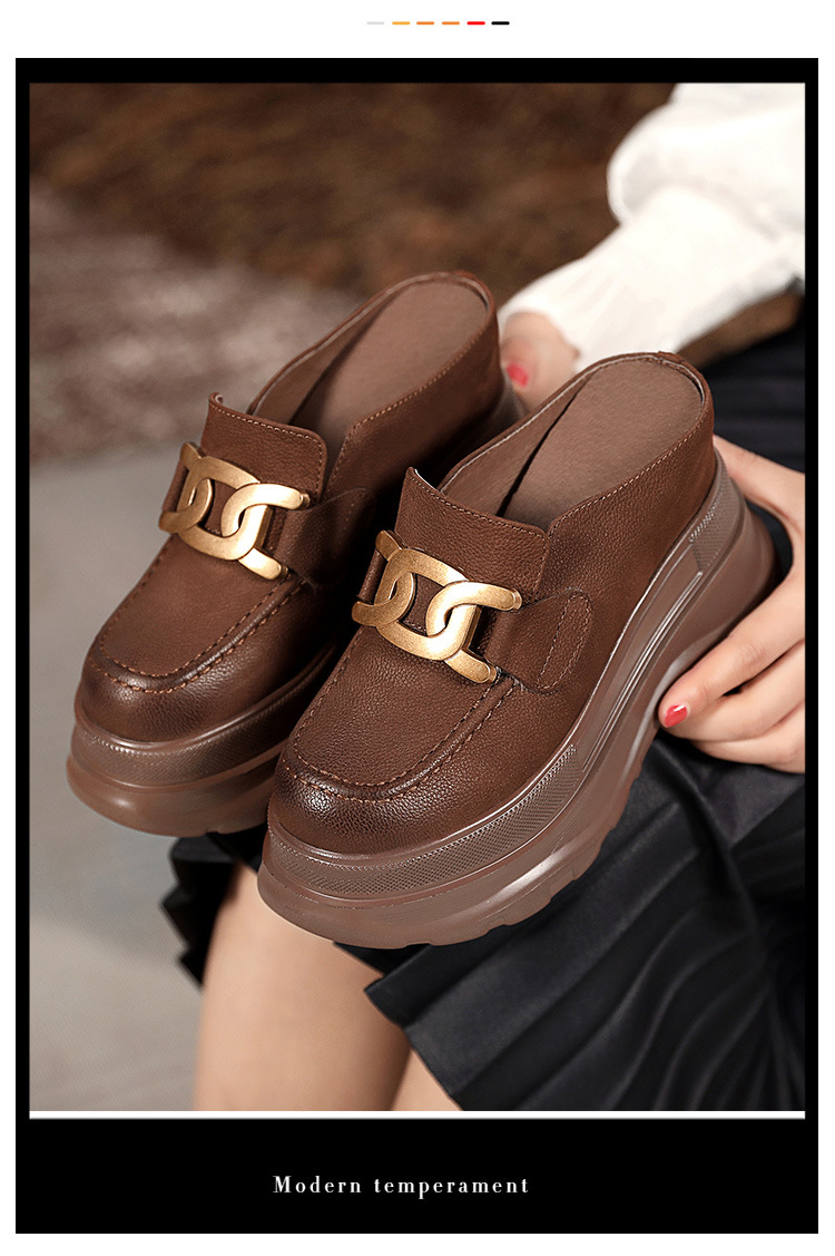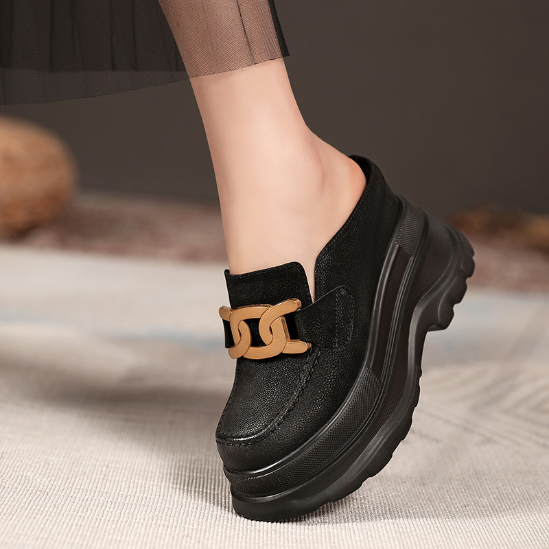 Đôi dép mang phong cách thời trang hằng ngày với phần đế được thiết kế dày tạo cảm giác thoải mái khi di chuyển. Kiểu dáng kín mũi và qu hậu ôm vừa chân, phù hợp để dùng trong nhiều dịp. Sản phẩm được làm từ chất liệu da mềm, tạo độ bền và cảm giác dễ chịu cho bàn chân. Bạn có thể kết hợp với trang phục đơn giản như quần jeans và áo thun để tạo nên vẻ ngoài năng động. | Tên sản phẩm: Giày Dép Lê Nữ Chất Liệu Da Bò Cao 10cm Tăng Chiều Cao Đế Cao Hàng Mùa Hè - Giày Dép Nữ | Mã sản phẩm: B4454 - Giá: 1.830.000đ | Mã nhà sản xuất: QIDNG-G05Hình ảnh sản phẩm