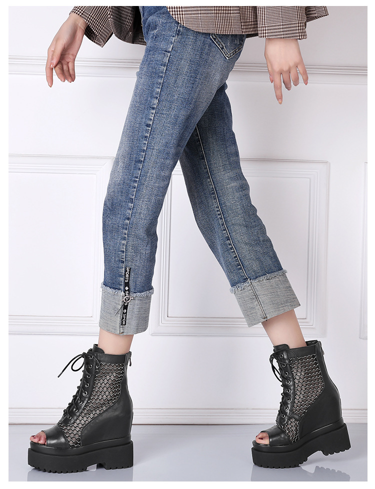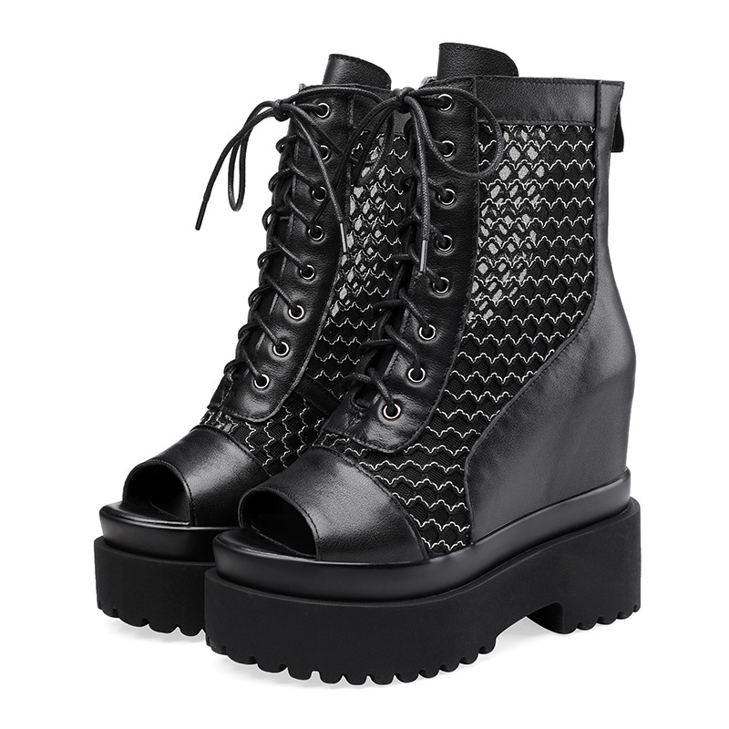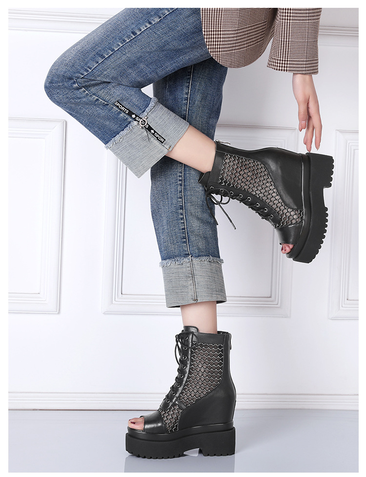 Đôi bốt cổ cao này có phần đế ngoài cao mười hai phân, kết hợp cùng đế trong tạo dáng thanh thoát. Chất vải lưới nhẹ nhàng và mềm mại, giúp đôi chân luôn thông thoáng. Kiểu dáng hở mũi cùng phần thân ôm nhẹ mang đến vẻ ngoại năng động, phù hợp cho những ngày tiết trời ấm áp. Bạn có thể dễ dàng phối cùng quần shorts hoặc váy ngắn để tạo điểm nhấn cho trang phục hàng ngày. | Tên sản phẩm: Giày Boot Cổ Thấp Nữ Cao 12cm Lưới Mỏng Tăng Chiều Cao Đế Xuồng Hàng Mùa Xuân Thu Đông - Giày Dép Nữ | Mã sản phẩm: B4456 - Giá: 1.830.000đ | Mã nhà sản xuất: QIDNG-G05Hình ảnh sản phẩm