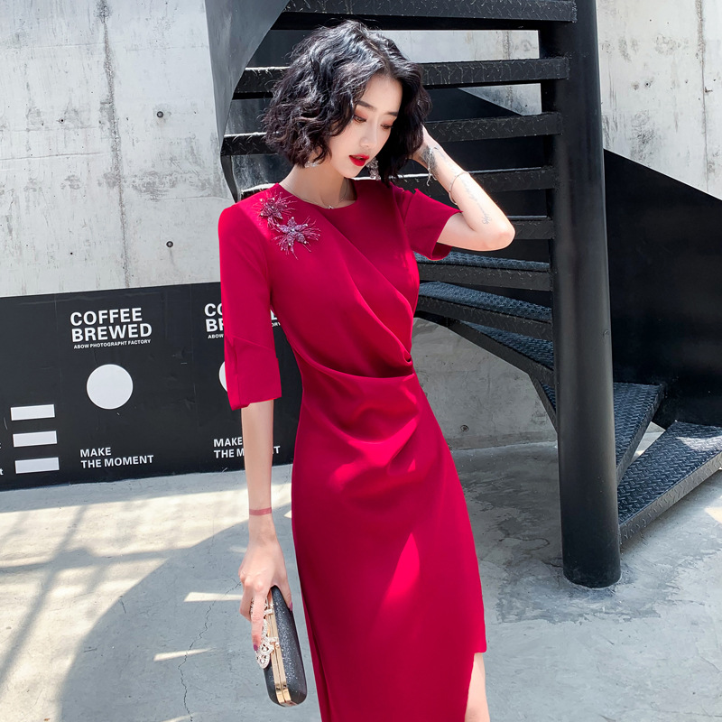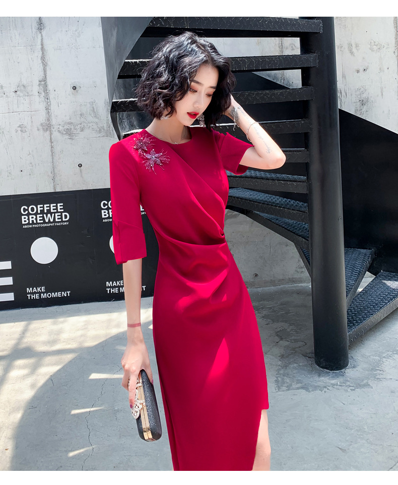 Váy dành cho cô dâu trong các buổi tiệc, có màu đỏ rượu vang ấm áp. Thiết kế giúp tôn dáng, phù hợp cho những bạn nữ có chiều cao khiêm tốn. Kiểu dáng thanh lịch, có thể mặc trong tiệc đính hôn, lễ cưới mùa hè hoặc những dịp thường ngày. Chất vải nhẹ nhàng, thoáng mát cho những ngày nắng nóng. Dễ dàng phối cùng phụ kiện và giày để tạo nên vẻ ngoài ưa nhìn. | Tên sản phẩm: Váy Đầm Liền Thân Dự Tiệc Nữ Hàng Mùa Hè Dùng Trong Lễ Cưới Ngày Cưới - Thời Trang Nữ | Mã sản phẩm: B4471 - Giá: 1.020.000đ | Mã nhà sản xuất: SUCTTO-G03Hình ảnh sản phẩm