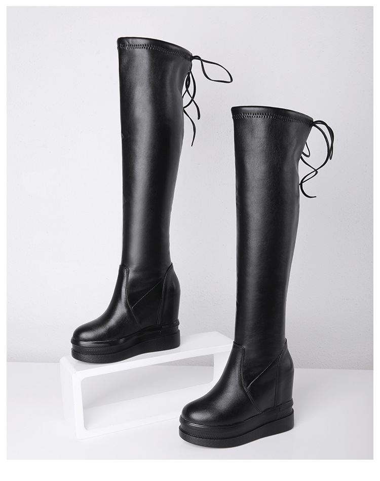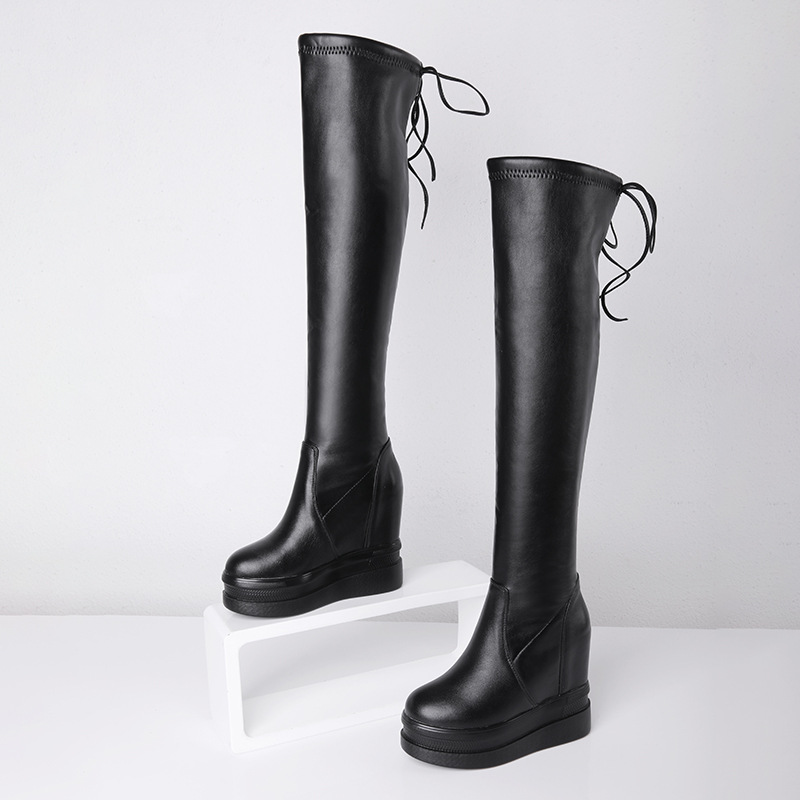Đôi bốt nữ thiết kế dáng ôm cổ cao, phần ống kéo dài quá đầu gối tạo điểm nhấn nổi bật. Sản phẩm có phần đế được thiết kế thêm lớp lót bên trong, giúp tăng chiều cao một cách tự nhiên. Chất liệu co giãn nhẹ ôm sát chân, mang lại cảm giác dễ chịu khi sử dụng. Kiểu dáng dễ phối hợp với nhiều trang phục khác nhau như quần jeans, váy hay legging. Phù hợp để sử dụng trong những ngày thời tiết mát mẻ. | Tên sản phẩm: Boot Cổ Cao Nữ Cổ Cao Qua Gối Tăng Chiều Cao Hàng Mùa Xuân Thu Đông - Giày Dép Nữ | Mã sản phẩm: B4474 - Giá: 2.020.000đ | Mã nhà sản xuất: QIDNG-G05Hình ảnh sản phẩm