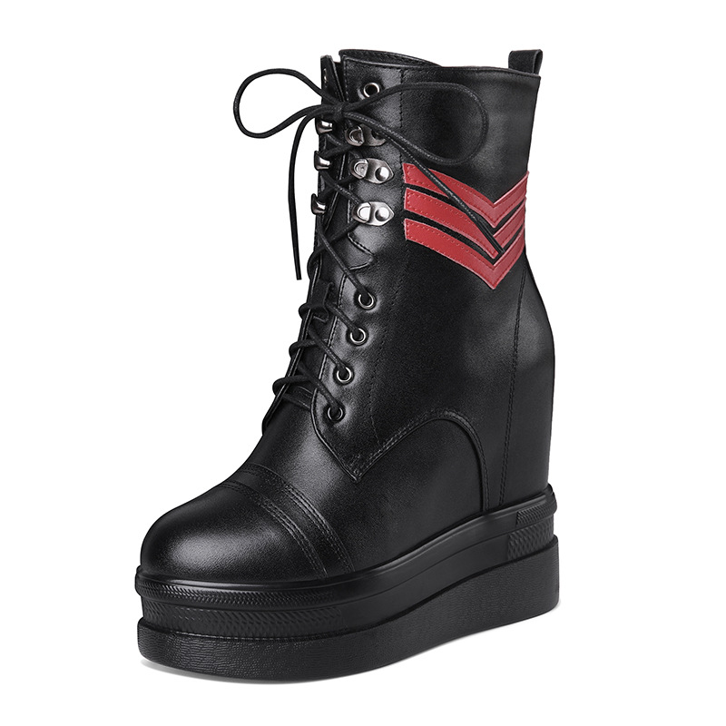 Đôi bốt cổ thấp kiểu dáng năng động, thiết kế dễ phối đồ cho các cô gái. Sản phẩm có phần đế dày bên trong giúp tăng chiều cao một cách tinh tế, phù hợp diện trong mùa thu đông. Form giàu ôm chân vừa vặn, mang lại sự thoải mái khi di chuyển cả ngày. Bạn có thể dùng để kết hợp với quần jeans, váy hay legging đều rất hợp. Chất liệu nhẹ, dễ dàng sử dụng cho nhiều hoạt động thường ngày. | Tên sản phẩm: Giày Boot Cổ Thấp Nữ Tăng Chiều Cao Đế Xuồng Hàng Mùa Xuân Thu Đông Phong Cách Hàn Quốc - Giày Dép Nữ | Mã sản phẩm: B4479 - Giá: 2.120.000đ | Mã nhà sản xuất: QIDNG-G05Hình ảnh sản phẩm