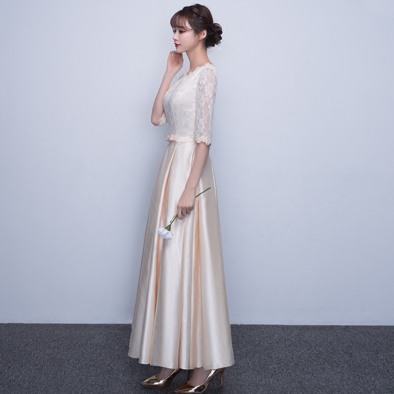 Áo dài tay dành cho bạn gái phụ dâu trong các buổi tiệc, với màu sắc nhẹ nhàng như rượu vang sủi tăm. Kiểu dáng thướt tha đến mắt cá chân, phù hợp cho các buổi biểu diễn đồng ca hoặc dự tiệc tối. Váy được may từ chất liệu mềm mại, tôn dáng người mặc. Có thể giặt bằng tay và phơi trong bóng mát để giữ vẻ đẹp lâu dài. | Tên sản phẩm: Váy Đầm Liền Thân Nữ Dài Tay - Thời Trang Nữ | Mã sản phẩm: B4561 - Giá: 1.190.000đ | Mã nhà sản xuất: SUCTTO-G04Hình ảnh sản phẩm