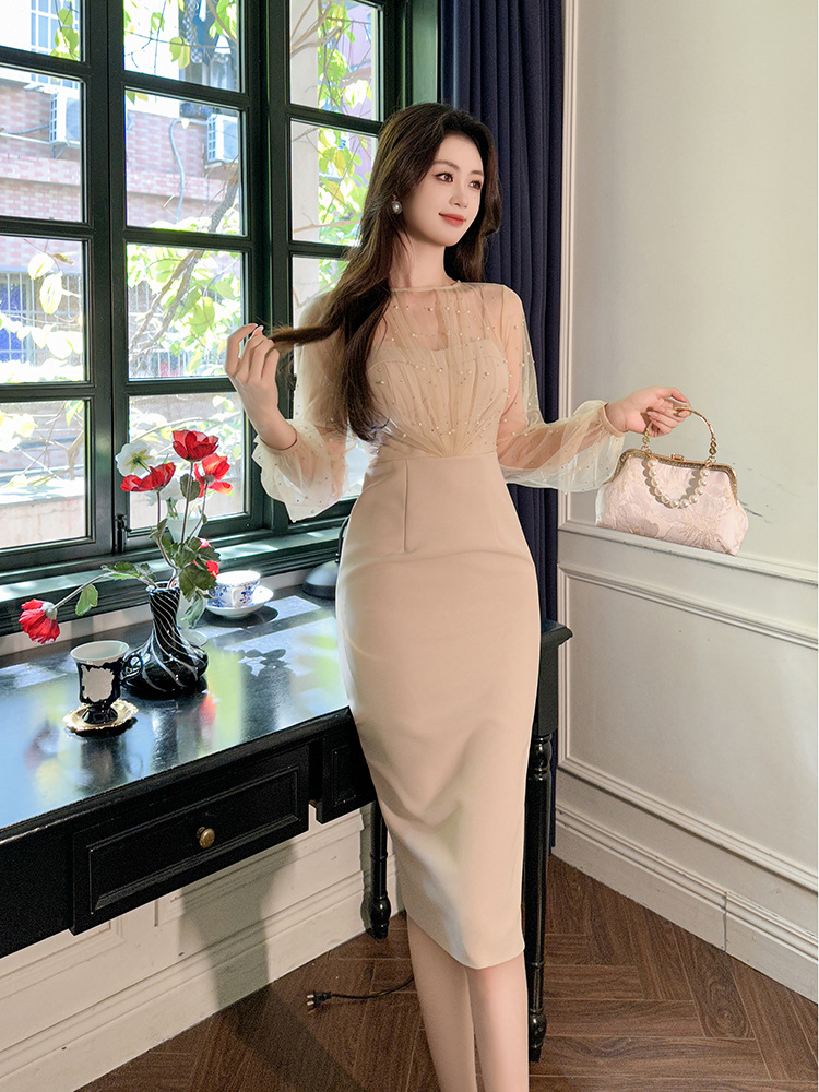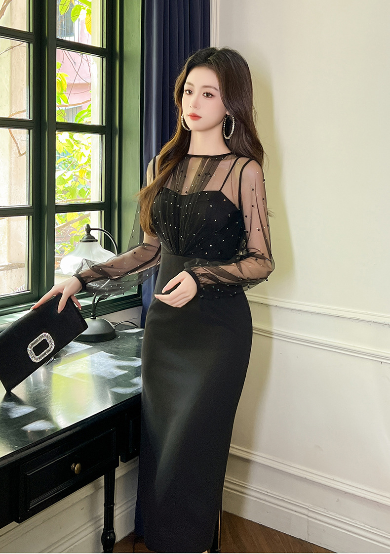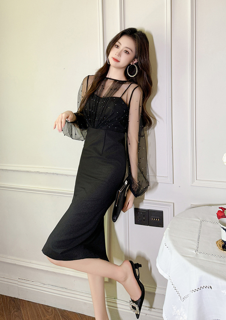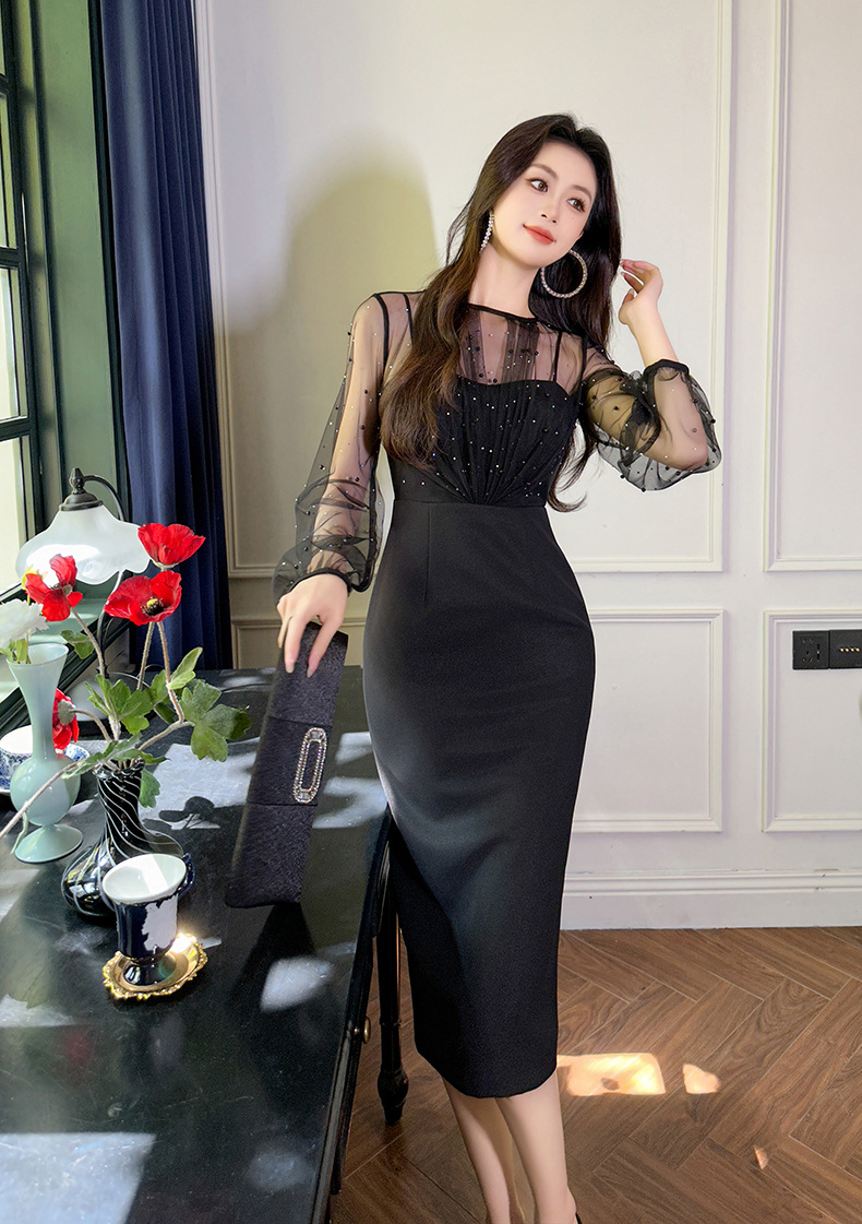 Chiếc đầm dạ hội này có thiết kế ôm sát cơ thể, tôn lên những đường nét quyến rũ. Chất liệu voan mỏng được kết hợp khéo léo, tạo nên vẻ đẹp mờ ảo mà vẫn thanh lịch. Đây là mẫu thiết kế mới cho mùa thu, phù hợp với những buổi tiệc tối. Bạn có thể mặc nó cùng một đôi giày cao gương để hoàn thiện bộ trang phục. | Tên sản phẩm: Váy Đầm Liền Thân Nữ Lưới Mỏng Hàng Mùa Xuân Thu Đông - Thời Trang Nữ | Mã sản phẩm: B4597 - Giá: 1.280.000đ | Mã nhà sản xuất: CHDG-G04Hình ảnh sản phẩm