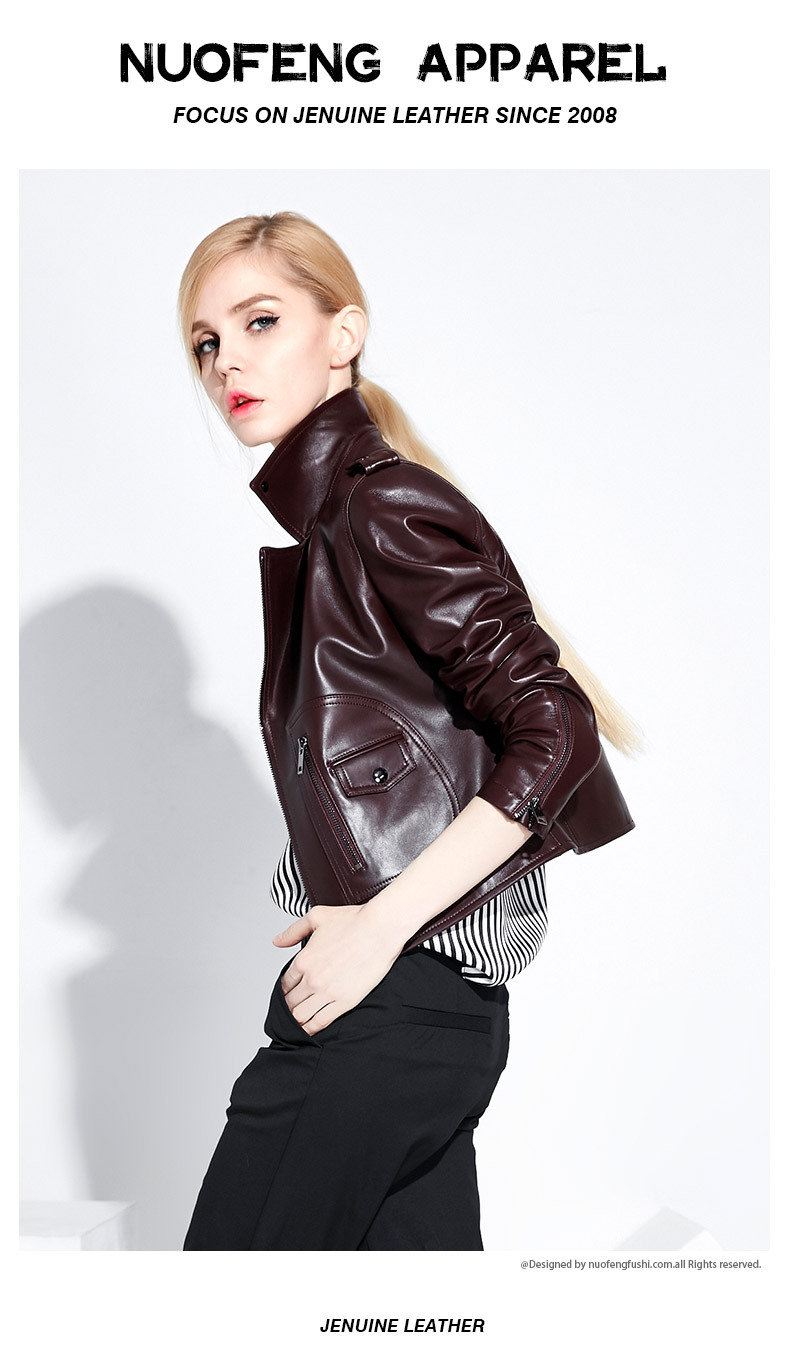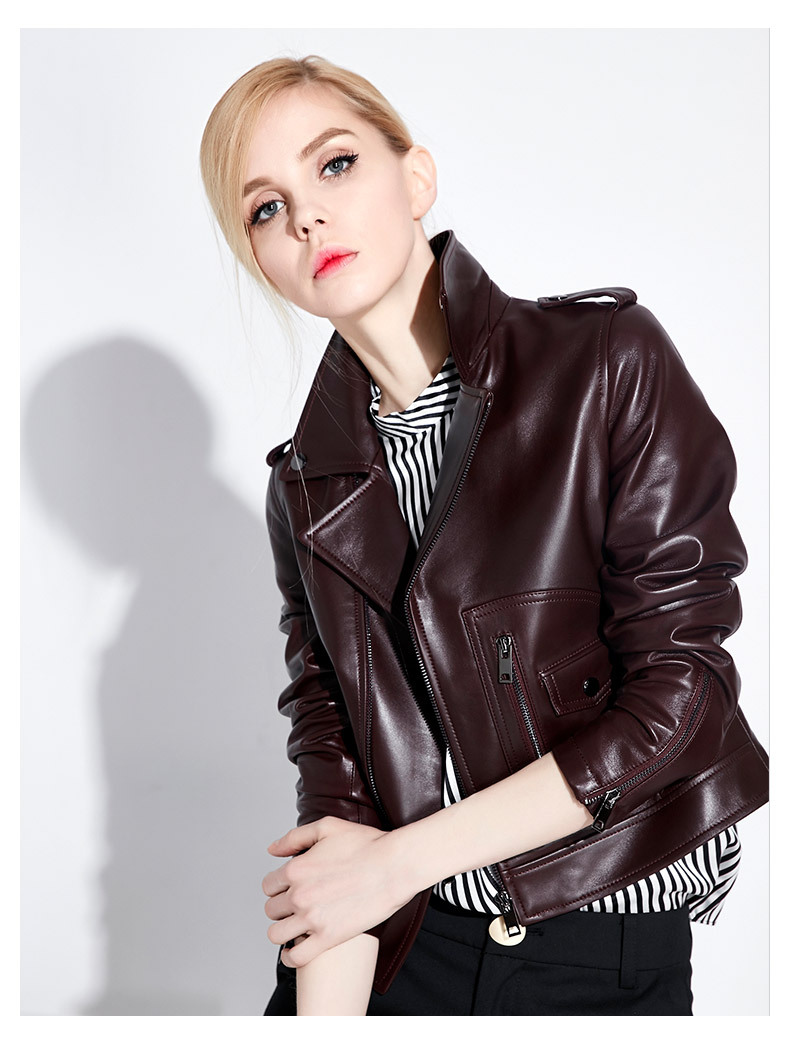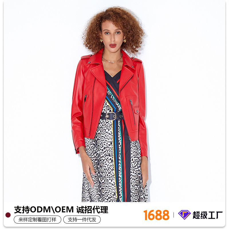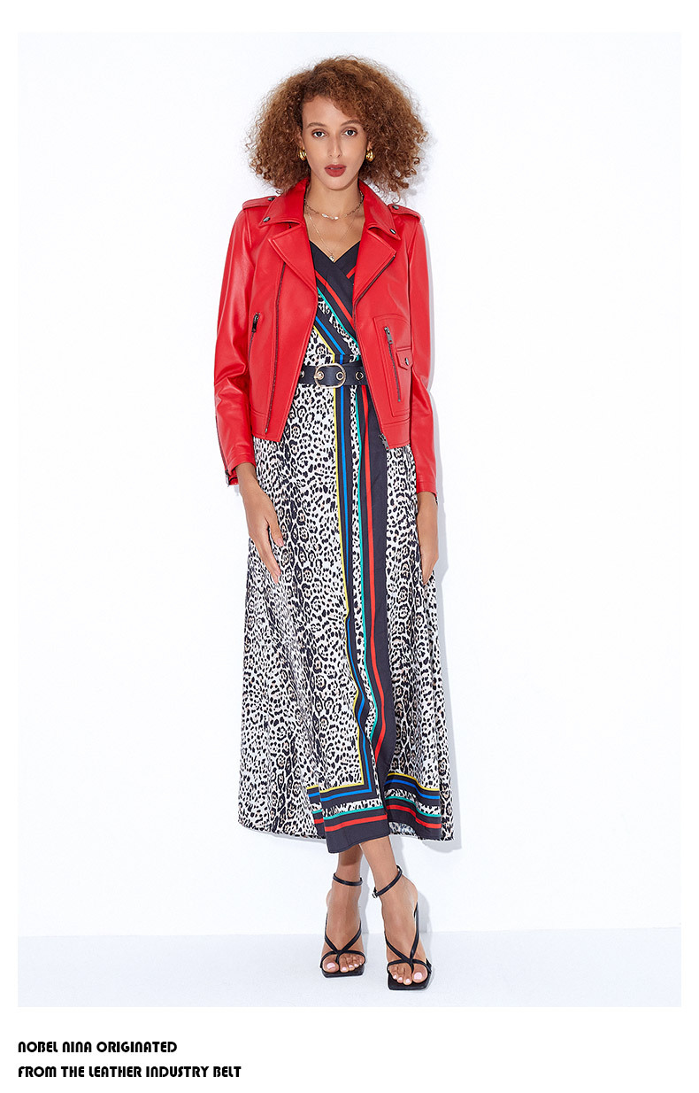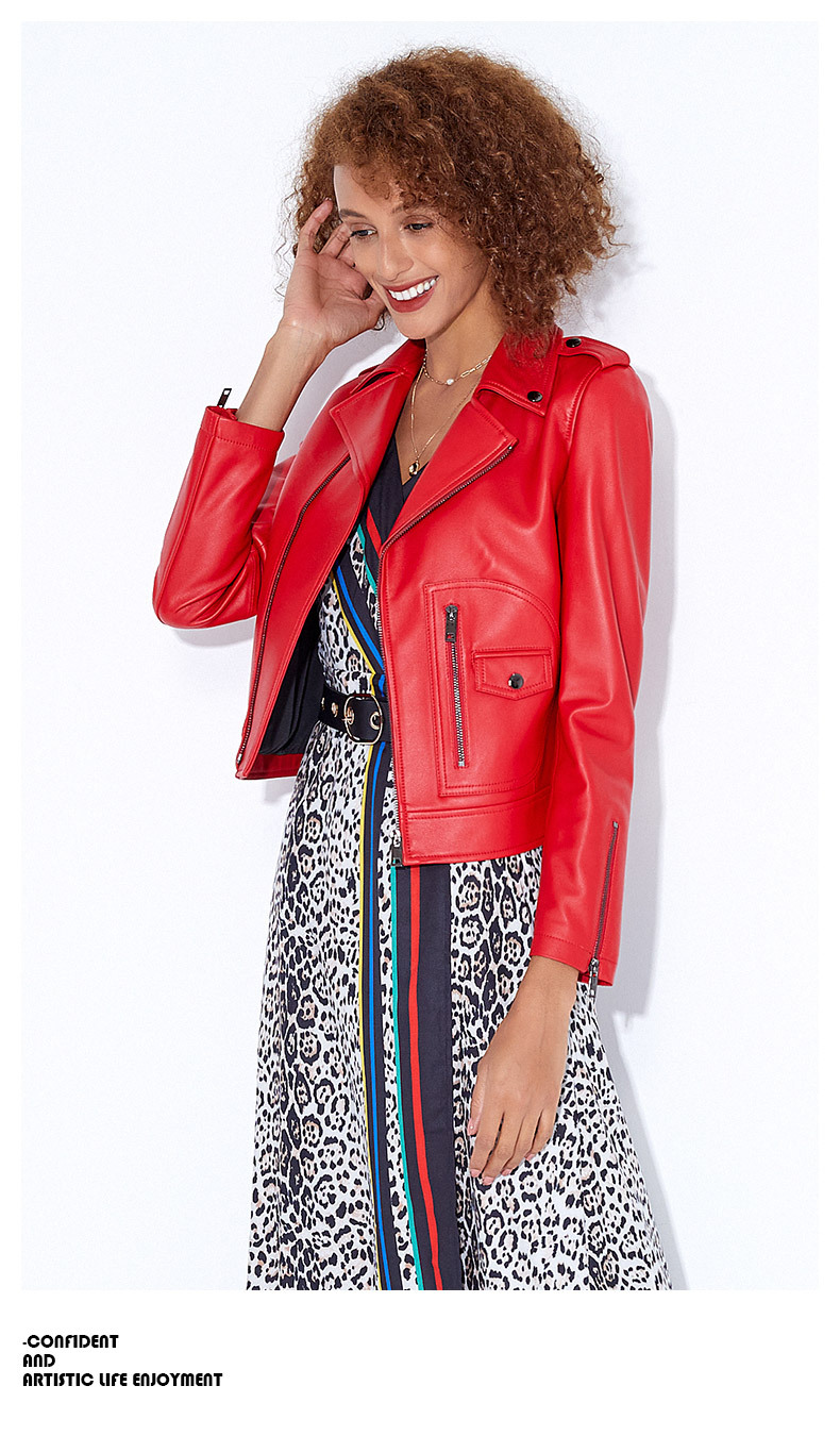 Áo khoác da màu đỏ tươi dành cho nữ, kiểu dáng ngắn gọn phù hợp mặc trong mùa xuân. Chất liệu da mềm mại từ loại da cừu, tạo cảm giác dễ chịu khi mặc. Thiết kế theo phong cách năng động với các chi tiết khóa kéo và phối túi tiện lợi. Sản phẩm dễ dàng phối cùng quần jeans và áo thun để tạo vẻ trẻ trung. Có thể giặt khô hoặc lau nhẹ bằng vải mềm để bảo quản chất liệu da. | Tên sản phẩm: Áo Da Nữ Chất Liệu Da Bò Hàng Mùa Xuân Thu Đông - Thời Trang Nữ | Mã sản phẩm: B4598 - Giá: 9.240.000đ | Mã nhà sản xuất: HADG-G06Hình ảnh sản phẩm