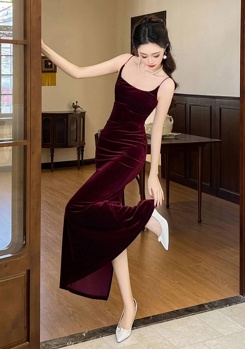 Váy dự tiệc cuối năm với thiết kế cổ vuông kiểu Pháp, tôn dáng người mặc. Chất liệu nhung mềm mại, kết hợp hai dây đeo tạo vẻ thanh thoát. Kiểu dáng ôn nhẹ ở thân giúp tôn lên các đường nét cơ thể. Sản phẩm thích hợp cho các buổi họp mặt, liên hoan vào mùa thu đông. Có thể phối cùng giày cao gót và phụ kiện nhỏ để hoàn thiện bộ trang phục. | Tên sản phẩm: Áo Hai Dây Nữ Dáng Ôm Hai Dây Hở Vai Hàng Mùa Xuân Thu Đông - Thời Trang Nữ | Mã sản phẩm: B4621 - Giá: 750.000đ | Mã nhà sản xuất: CHDG-G02Hình ảnh sản phẩm