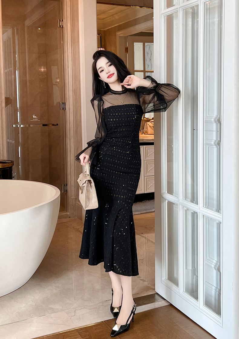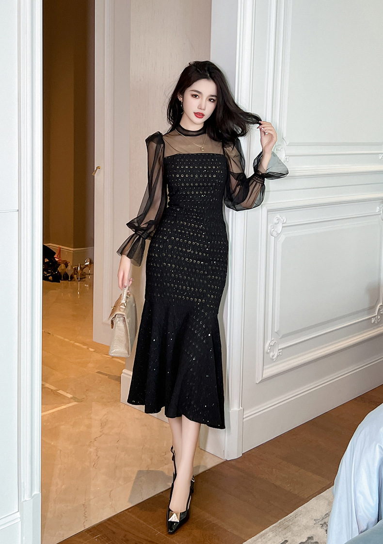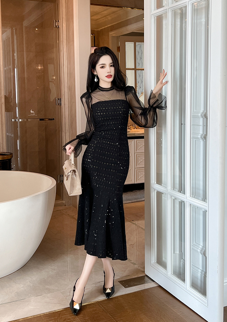 Chiếc đầm dáng dài với thiết kế ôm sát cơ thể, tôn lên những đường nét quyến rũ. Điểm nhấn là sự kết hợp tinh tế giữa chất liệu voan mỏng nhẹ và những chi tiết phản quang lấp lánh. Phần đuôi váy xòe nhẹ tạo dáng vẻ uyển chuyển, như chiếc đuôi cá. Sản phẩm phù hợp cho các buổi tiệc hoặc sự kiện. Mặc cùng phụ kiện đơn giản để tôn lên vẻ đẹp của đầm. | Tên sản phẩm: Váy Đầm Liền Thân Dáng Dài Nữ Dáng Ôm Lưới Mỏng Kiểu Đuôi Cá Hàng Mùa Xuân Thu Đông - Thời Trang Nữ | Mã sản phẩm: B4623 - Giá: 1.190.000đ | Mã nhà sản xuất: CHDG-G04Hình ảnh sản phẩm
