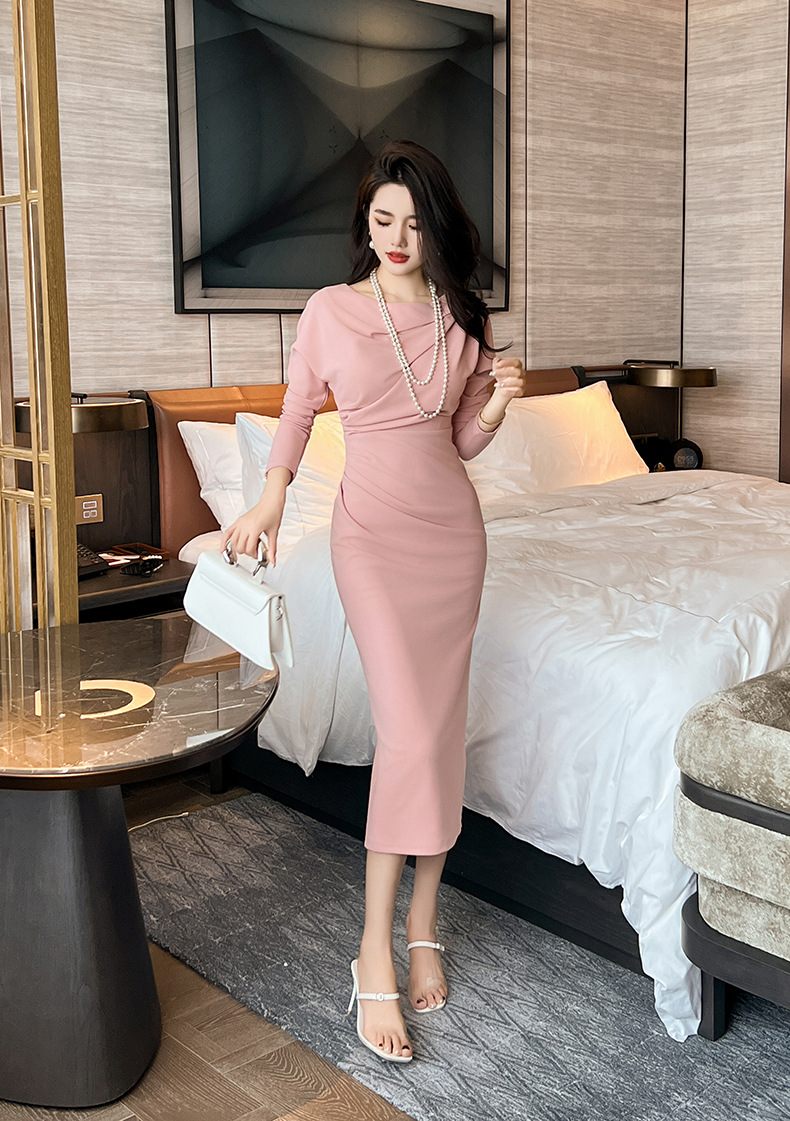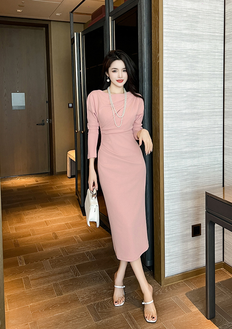 Chiếc đầm dáng dài tay cho mùa thu đông này được thiết kế với những đường nhún tinh tế, tạo nên điểm nhấn đặc biệt. Form đầm ôm vừa vặn, eo được bo lại giúp tôn lên đường nét cơ thể. Sắc hồng dịu nhẹ mang đến vẻ đẹp nữ tính và thanh lịch. Sản phẩm phù hợp để mặc đi làm, dự tiệc hoặc gặp mặt bạn bè. Có thể kết hợp cùng giày cao gót và túi xách nhỏ để hoàn thiện bộ trang phục. | Tên sản phẩm: Váy Đầm Liền Thân Nữ Dáng Ôm Hàng Mùa Xuân Thu Đông - Thời Trang Nữ | Mã sản phẩm: B4639 - Giá: 1.050.000đ | Mã nhà sản xuất: CHDG-G03Hình ảnh sản phẩm