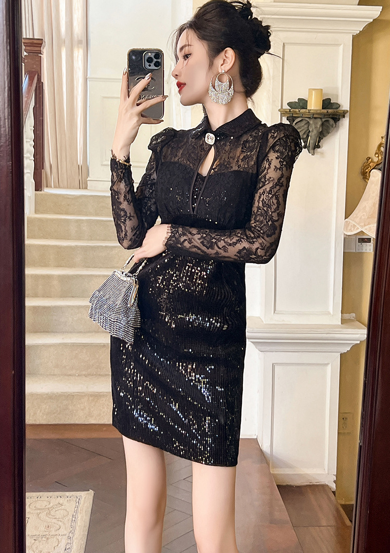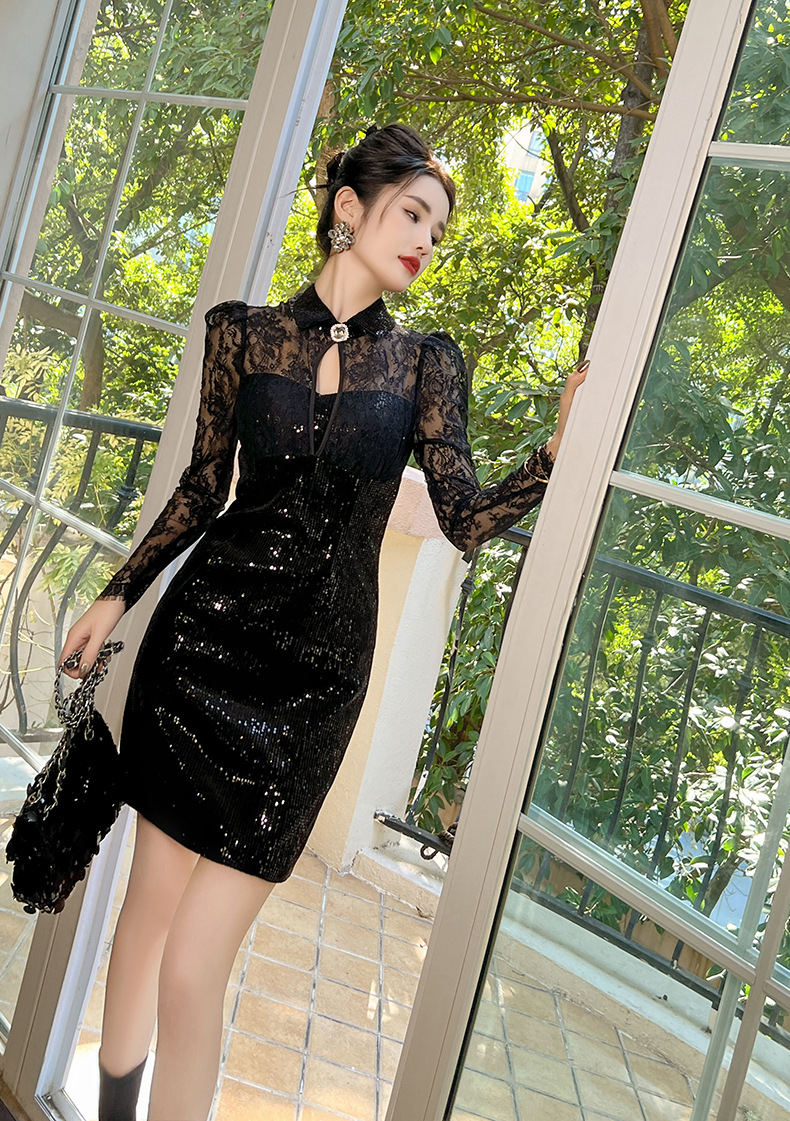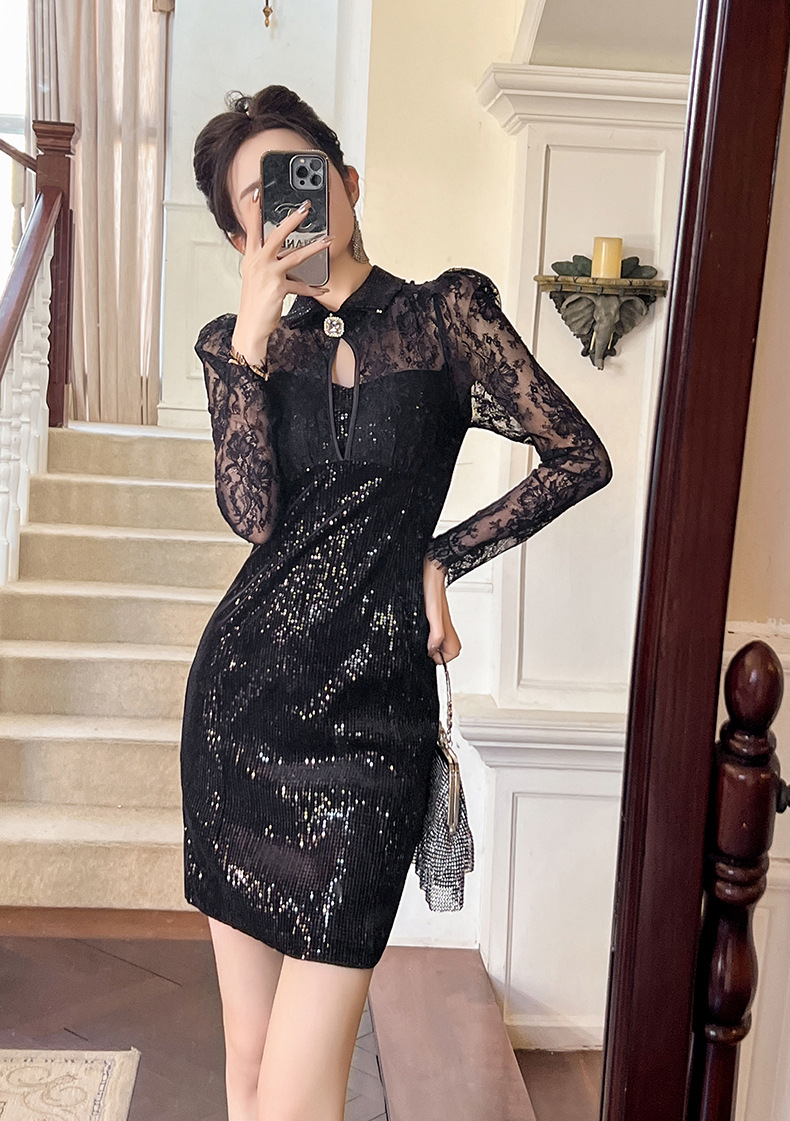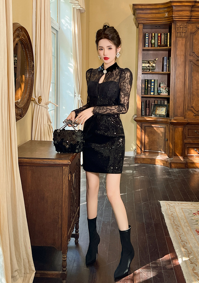 Chiếc đầm body ôm sát dáng, điểm nhấn là đường ren tinh xảo và những mảnh kim tuyến lấp lánh. Thiết kế này rất phù hợp cho các buổi tiệc sinh nhật hay dự sự kiện. Kiểu dáng ôm body tôn lên các đường nét cơ thể một cách thanh lịch. Bạn chỉ cần phối cùng một đôi giày cao gót và vài món trang sức nhỏ là đã có một set đồ hoàn chỉnh, giúp bạn tự tin tỏa sáng. | Tên sản phẩm: Váy Đầm Liền Thân Nữ Chất Liệu Ren Hàng Mùa Xuân Thu Đông - Thời Trang Nữ | Mã sản phẩm: B4658 - Giá: 1.190.000đ | Mã nhà sản xuất: CHDG-G04Hình ảnh sản phẩm