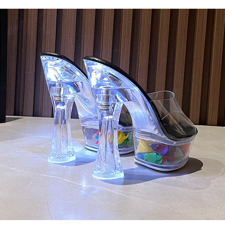 Đôi dép cao gót này có phần đế rất dày phía trước và gót thấp vững chãi, giúp tăng chiều cao đáng kể mà vẫn thoải mái. Chiều cao tổng thể lên đến mười bốn phân. Điểm nhấn là chiếc khóa kim loại ở phía trước có thể phát sáng, tạo nên nét độc đáo và thu hút. Kiểu dáng phù hợp để diện trong nhiều dịp. Khi sử dụng, chỉ cần xỏ chân vào và gài khóa cho vừa vặn. | Tên sản phẩm: Giày Dép Lê Nữ Gót Vuông - Giày Dép Nữ | Mã sản phẩm: B4659 - Giá: 940.000đ | Mã nhà sản xuất: JIENNG-G03Hình ảnh sản phẩm