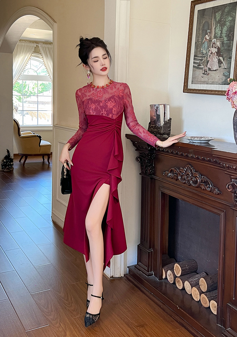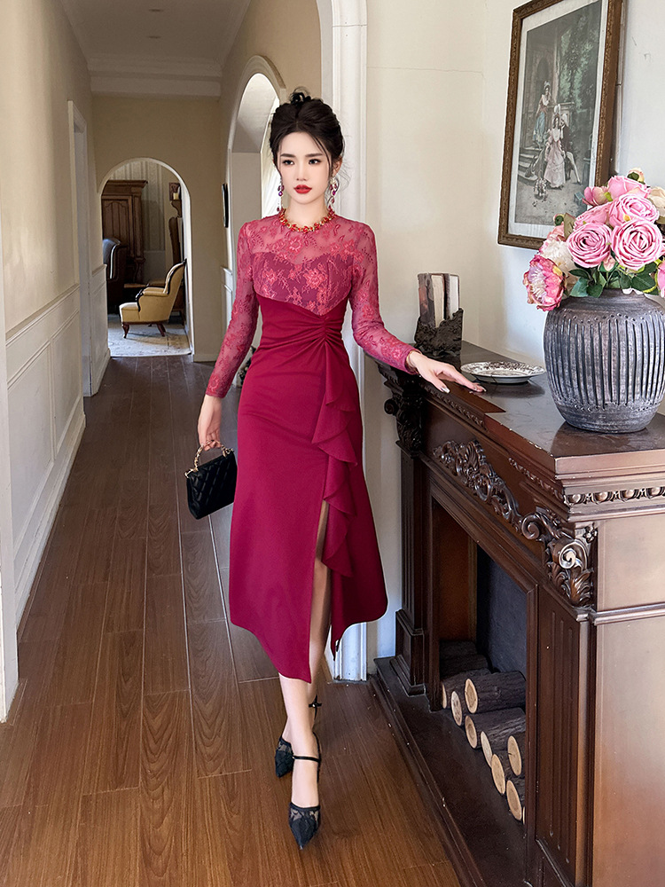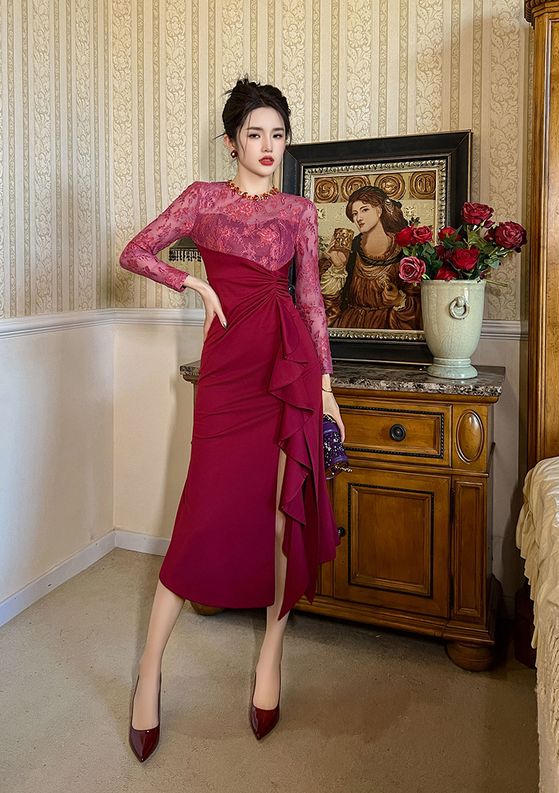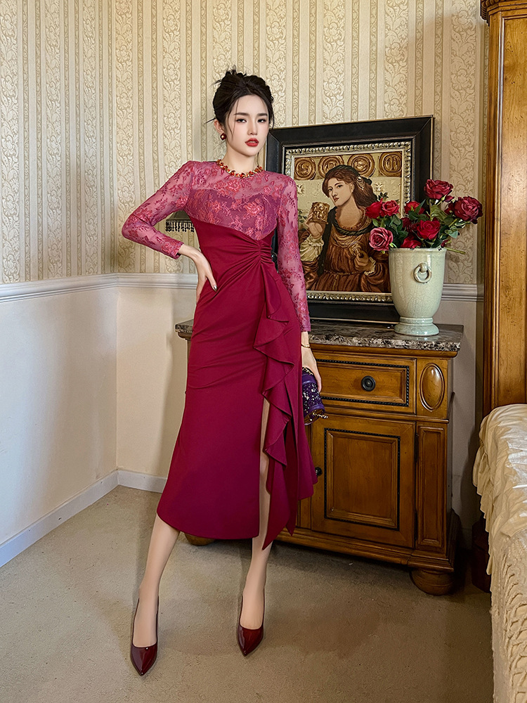 Chiếc đầm mới dành cho mùa thu, được thiết kế tinh tế với phần thân trên kết hợp ren và đá lấp lánh. Đầm có phần eo cao giúp tôn dáng, phối cùng diềm xòe nhẹ nhàng và điểm nhấn là đường xẻ tà tạo sự thoải mái, nữ tính. Kiểu dáng ôm vừa phải, phù hợp cho nhiều dịp đi chơi hàng ngày. Mặc cùng giày sandal hoặc giày búp bê để hoàn thiện bộ trang phục. | Tên sản phẩm: Váy Đầm Liền Thân Nữ Chất Liệu Ren Hàng Mùa Xuân Thu Đông - Thời Trang Nữ | Mã sản phẩm: B4662 - Giá: 1.260.000đ | Mã nhà sản xuất: CHDG-G04Hình ảnh sản phẩm