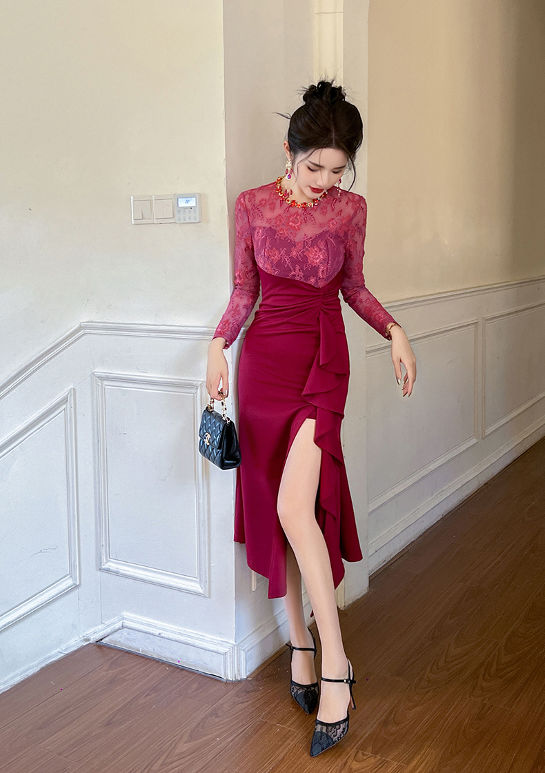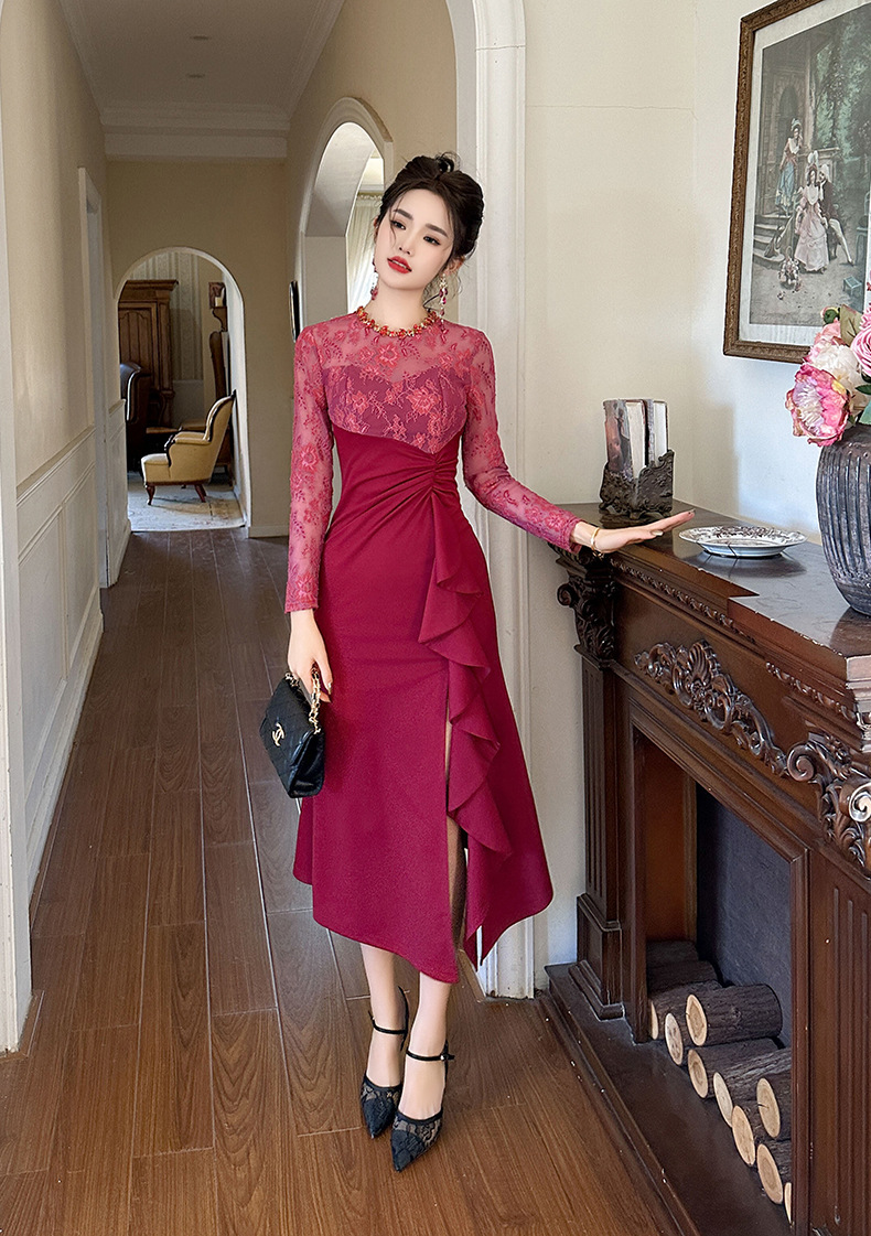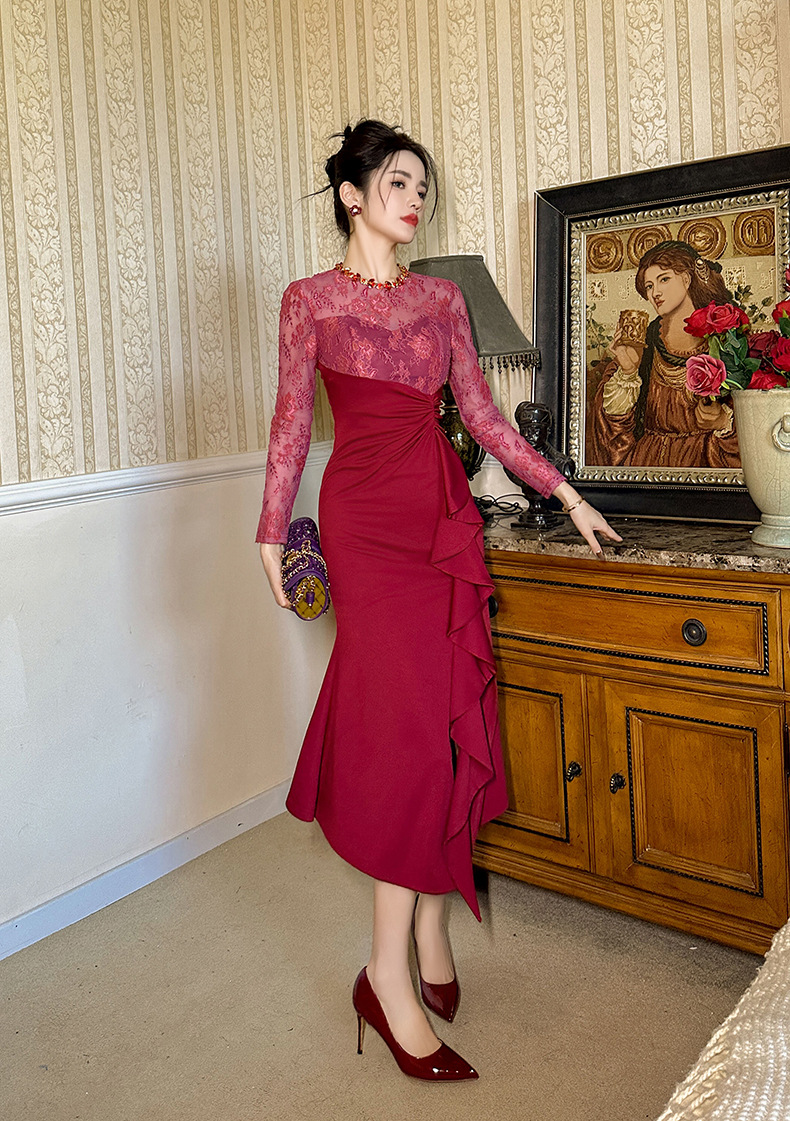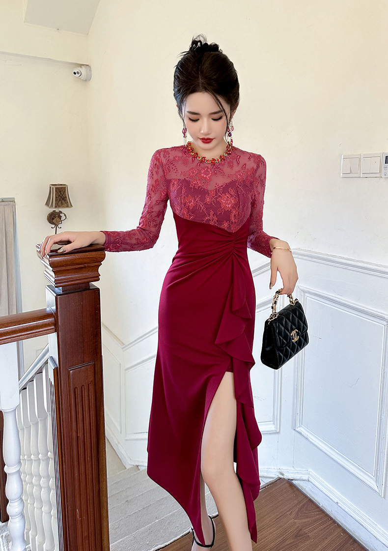 Chiếc đầm mới dành cho mùa thu, được thiết kế tinh tế với phần thân trên kết hợp ren và đá lấp lánh. Đầm có phần eo cao giúp tôn dáng, phối cùng diềm xòe nhẹ nhàng và điểm nhấn là đường xẻ tà tạo sự thoải mái, nữ tính. Kiểu dáng ôm vừa phải, phù hợp cho nhiều dịp đi chơi hàng ngày. Mặc cùng giày sandal hoặc giày búp bê để hoàn thiện bộ trang phục. | Tên sản phẩm: Váy Đầm Liền Thân Nữ Chất Liệu Ren Hàng Mùa Xuân Thu Đông - Thời Trang Nữ | Mã sản phẩm: B4662 - Giá: 1.260.000đ | Mã nhà sản xuất: CHDG-G04Hình ảnh sản phẩm
