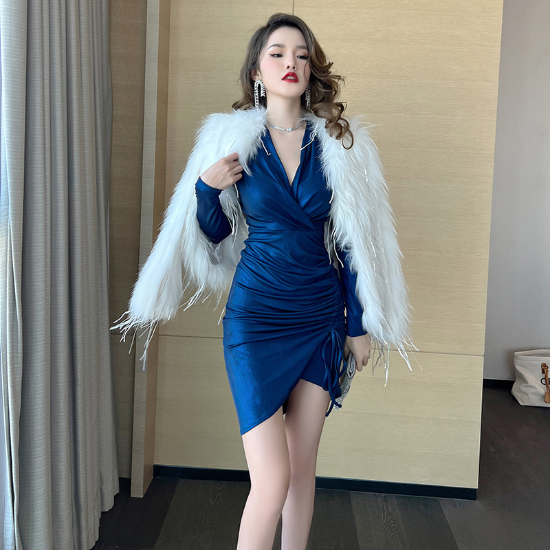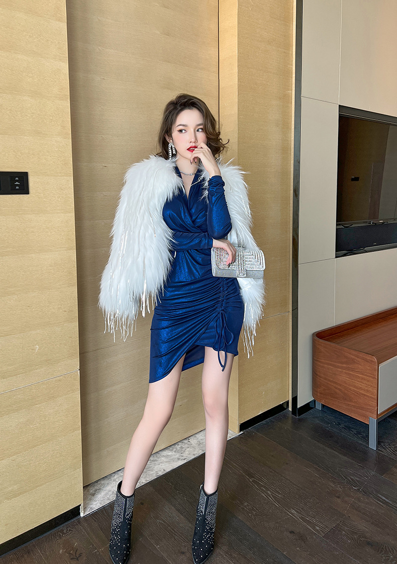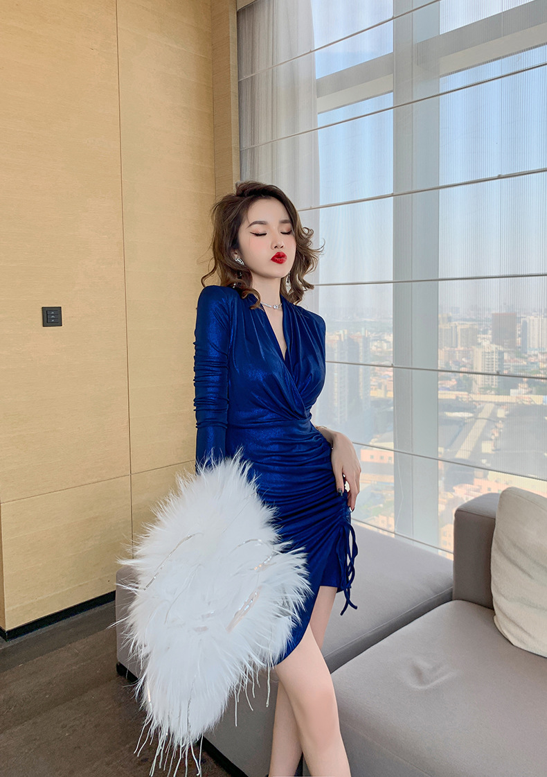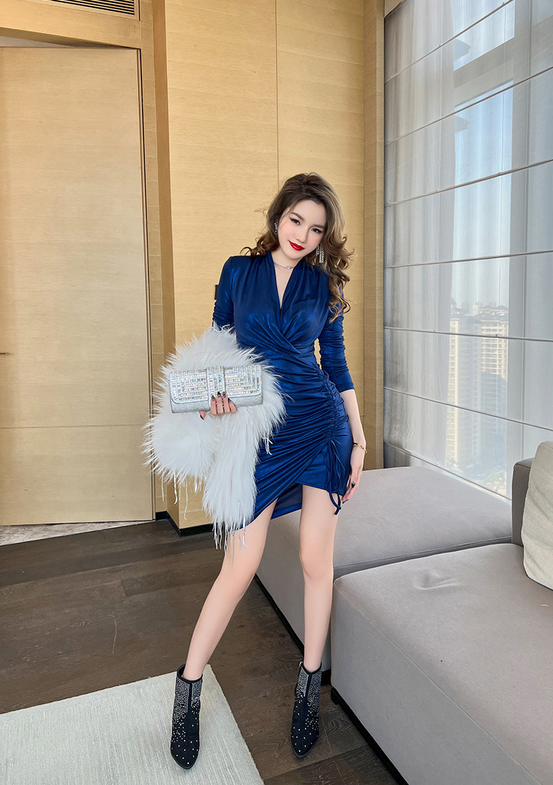 Đầm dáng ôm tay dài cho mùa xuân 2024 với cổ chữ V tôn dáng. Điểm nhấn là dây rút eo linh hoạt, giúp bạn dễ dàng điều chỉnh form áo vừa vặn. Thiết kế kết hợp các đường xếp ly và kiểu dáng không đối xứng, tạo nên vẻ đẹp mới lạ và giúp tôn lên đường nét cơ thể. Mặc kèm với giày cao gót hoặc bệt đều phù hợp cho nhiều dịp trong ngày. | Tên sản phẩm: Váy Đầm Liền Thân Nữ Dáng Ôm Cổ Chữ V Hàng Mùa Xuân Thu Đông - Thời Trang Nữ | Mã sản phẩm: B4666 - Giá: 1.020.000đ | Mã nhà sản xuất: CHDG-G03Hình ảnh sản phẩm