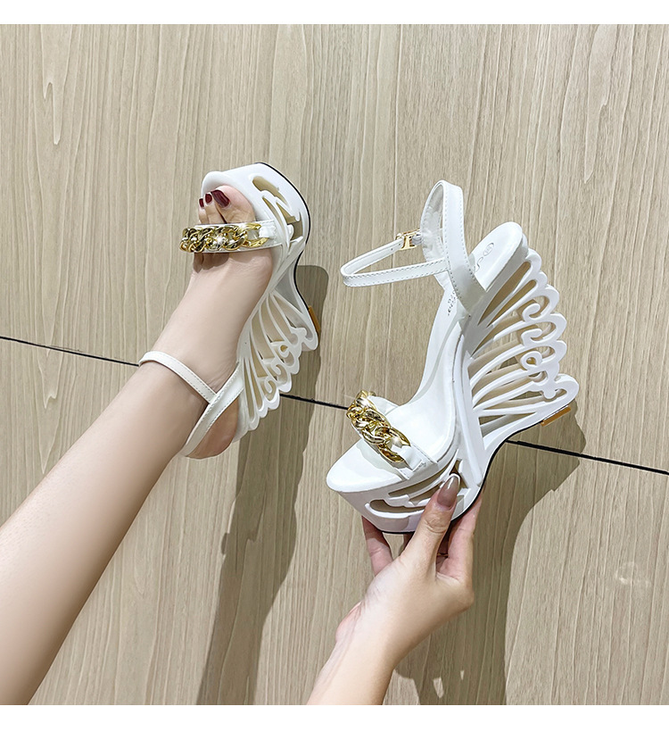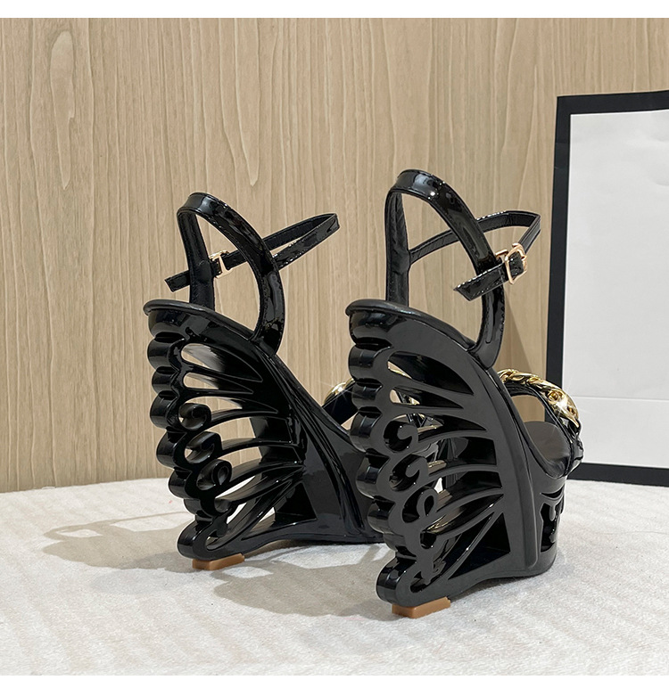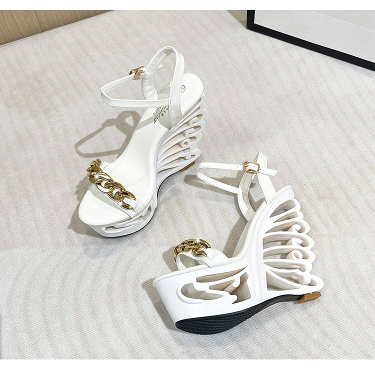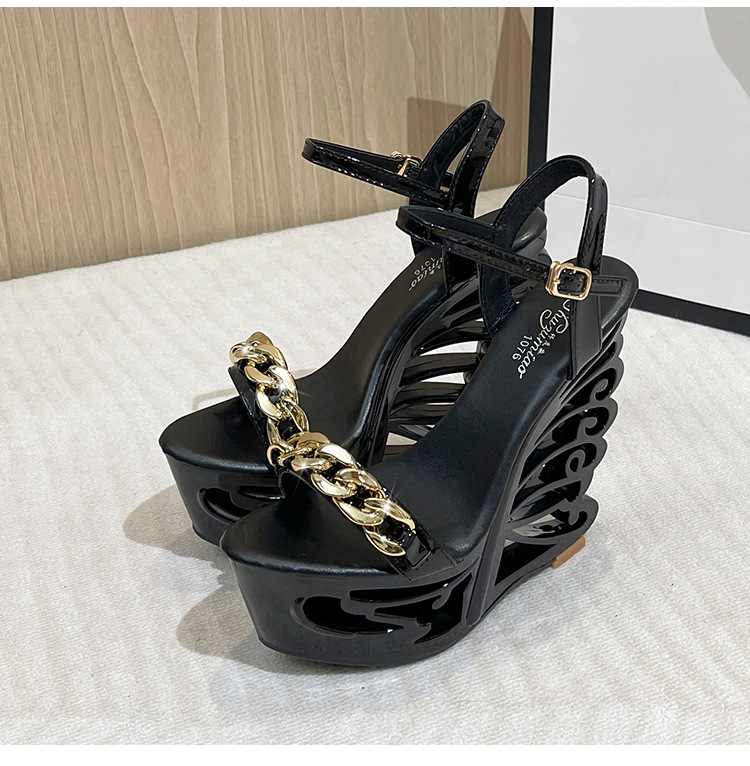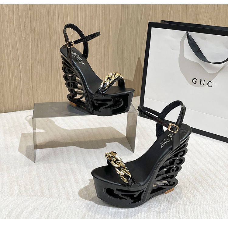Đôi giày sandal này có phần đế rất cao và dày, giúp tăng thêm chiều cao đáng kể cho người mang. Phần gót chân được thiết kế kiểu dáng khỏe khoắn, tạo cảm giác vững chãi. Điểm nhấn đặc biệt là chi tiết khóa kim loại với hình dáng độc đáo, tăng thêm nét cá tính. Sản phẩm phù hợp để phối cùng nhiều loại trang phục khác nhau. Khi sử dụng, bạn nên đi những bước ngắn và chậm rãi để giữ thăng bằng tốt hơn. | Tên sản phẩm: Giày Cao Gót Nữ Gót Vuông - Giày Dép Nữ | Mã sản phẩm: B4677 - Giá: 880.000đ | Mã nhà sản xuất: JIENNG-G03Hình ảnh sản phẩm