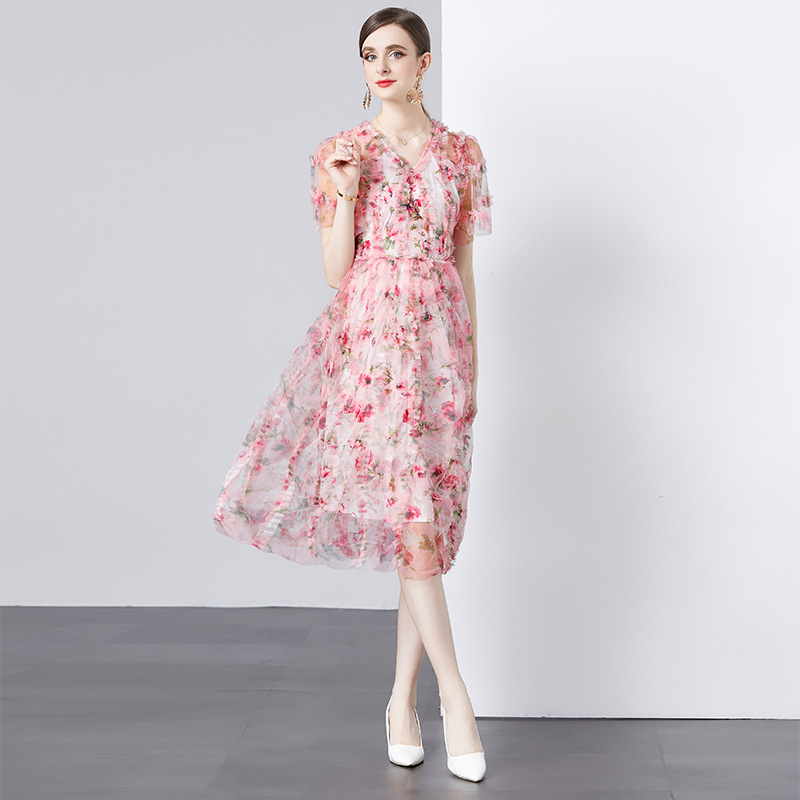 Chiếc đầm thời trang này có họa tiết in hoa nhỏ xinh kết hợp chất vải mỏng nhẹ tạo nên vẻ đẹp dịu dàng. Thiết kế cổ chữ V vừa phải cùng tay ngắn điểm xuyến đường viền cách điệu, giúp tôn dáng người mặc. Phần thân dáng suông nhẹ nhàng ôm vừa cơ thể, phù hợp cho những ngày hè. Có thể mặc đi làm, dạo phố hay dự tiệc nhẹ. Phối cùng giày sandal và túi xách cùng tông màu để trông hài hòa hơn. | Tên sản phẩm: Váy Đầm Liền Thân Nữ Lưới Mỏng Họa Tiết Hoa Cổ Chữ V Hàng Mùa Hè Phục Cổ Cổ Điển - Thời Trang Nữ | Mã sản phẩm: B4679 - Giá: 1.070.000đ | Mã nhà sản xuất: GUDG-G03Hình ảnh sản phẩm