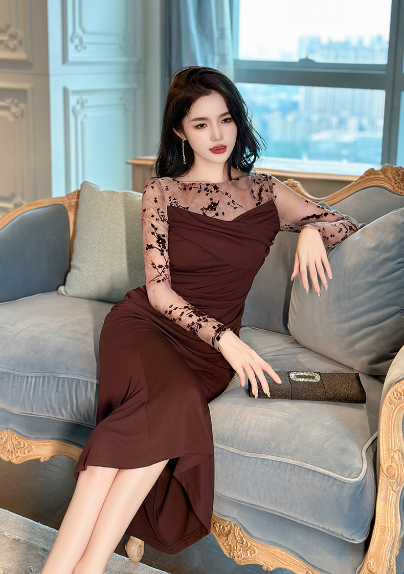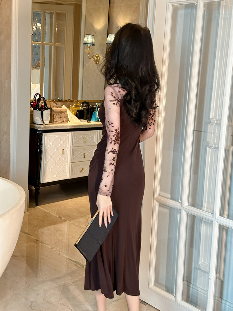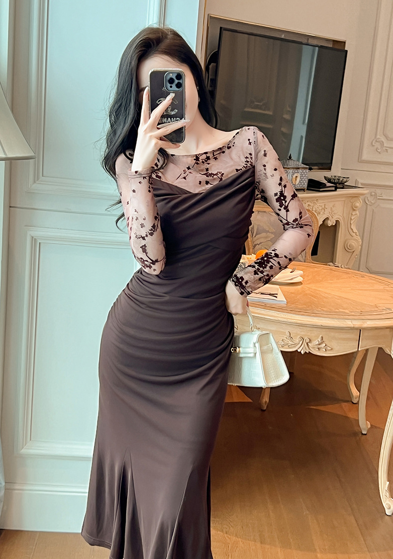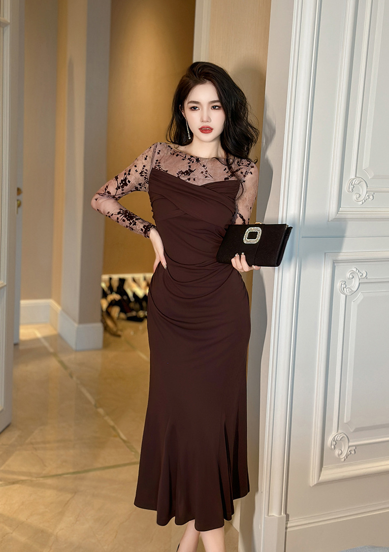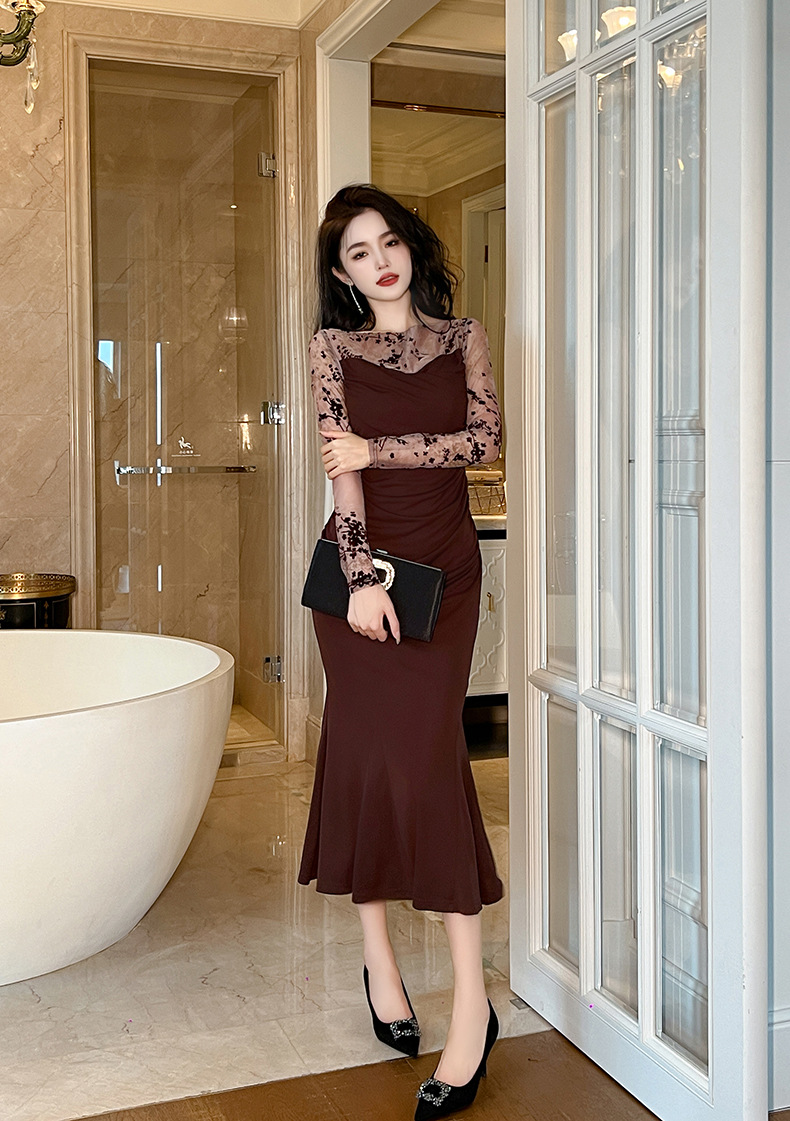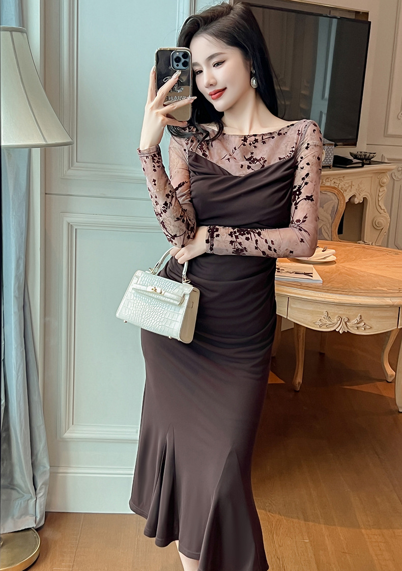 Chiếc đầm dáng cá mang phong cách cổ điển, kết hợp hài hòa giữa chất vải dệt mềm mại và lớp voan mỏng nhẹ. Thiết kế ôm sáng tôn lên những đường nét cơ thể, phần chân váo xòe nhẹ tạo dáng thướt tha. Sản phẩm phù hợp cho nhiều dịp đi chơi hay gặp gỡ. Bạn có thể mặc cùng giày cao gót hoặc giày đế bằng để tạo nên những phong cách khác nhau. | Tên sản phẩm: Váy Đầm Liền Thân Nữ Dáng Ôm Lưới Mỏng Kiểu Đuôi Cá Hàng Mùa Xuân Thu Đông Phục Cổ Cổ Điển - Thời Trang Nữ | Mã sản phẩm: B4693 - Giá: 1.120.000đ | Mã nhà sản xuất: CHDG-G04Hình ảnh sản phẩm
