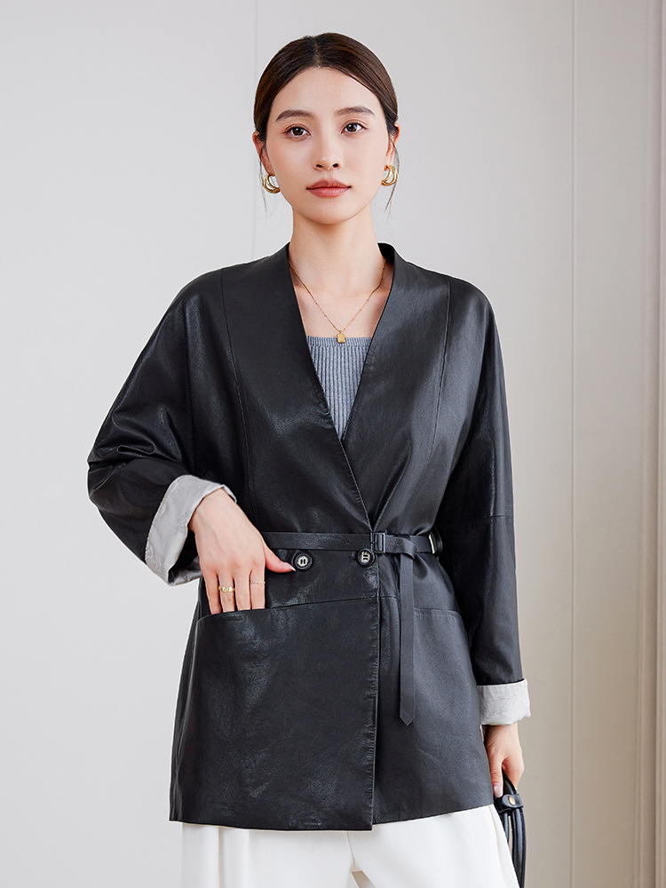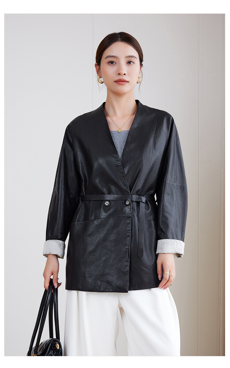 Áo khoác da thật dành cho nữ, thiết kế dáng dài vừa phải, phù hợp với nhiều vóc dáng. Chất liệu da mềm mại, tạo cảm giác dễ chịu khi mặc. Điểm nhấn là dây thắt eo, giúp tôn lên đường nét cơ thể. Kiểu dáng mang phong cách hiện đại, nhẹ nhàng. Có thể phối cùng quần jeans và áo thun để tạo vẻ ngoài năng động, hoặc mặc với váy để dịu dàng hơn. Bảo quản nơi khô ráo, tránh ánh nắng trực tiếp. | Tên sản phẩm: Áo Da Nữ Chất Liệu Da Bò Hàng Mùa Xuân Thu Đông - Thời Trang Nữ | Mã sản phẩm: B4706 - Giá: 9.340.000đ | Mã nhà sản xuất: HADG-G06Hình ảnh sản phẩm