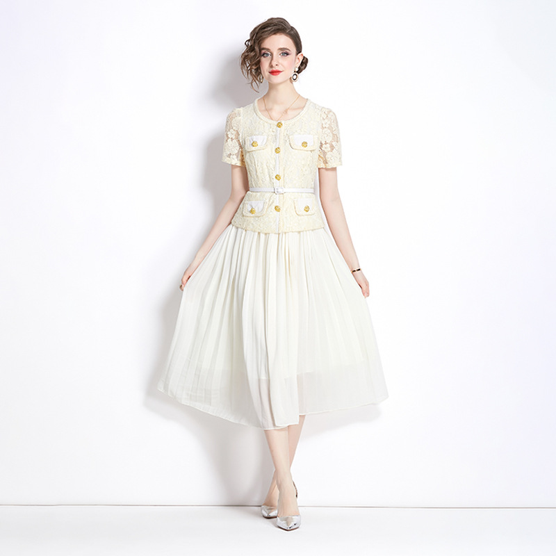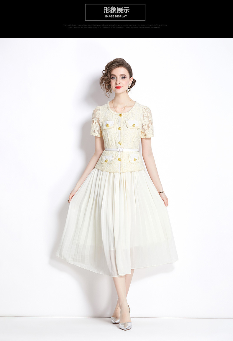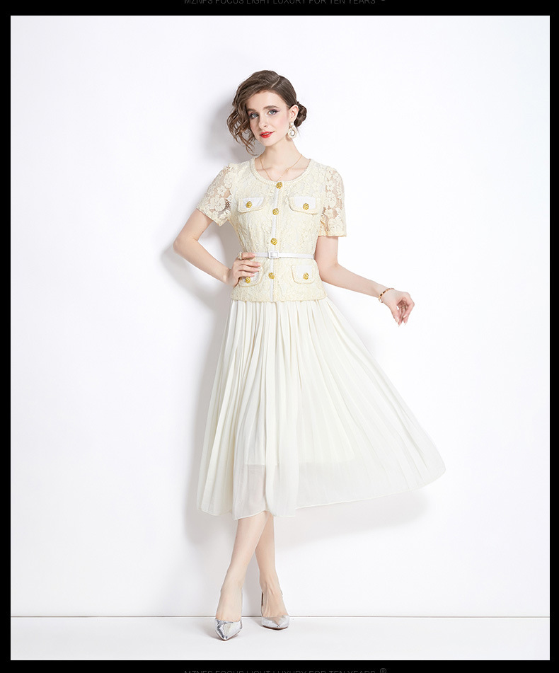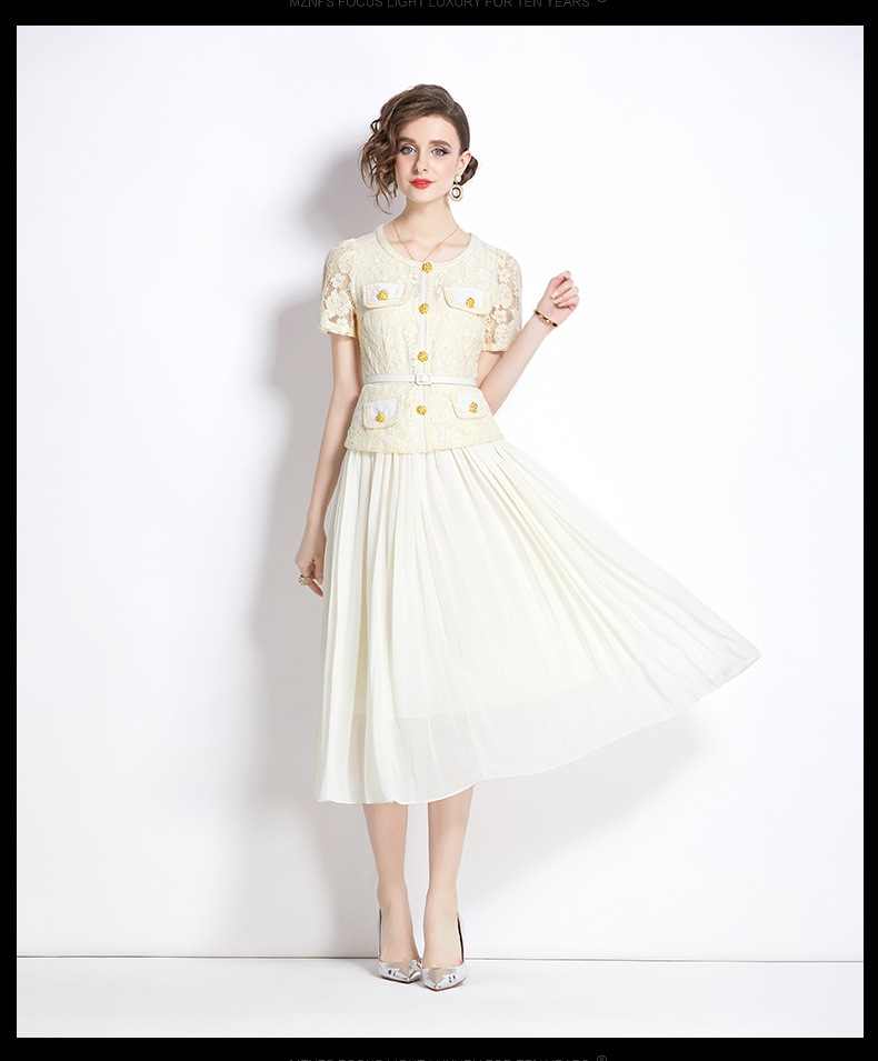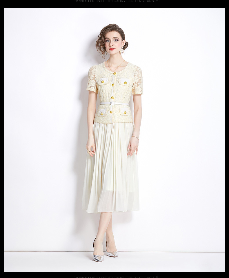 Chiếc đầm dành cho những ngày hè, kết hợp phong cách hai mảnh rất thời thượng. Cổ vuông và tay áo điểm xuyến họa tiết ren tinh tế, tôn lên vẻ dịu dàng. Thân đầm ôm nhẹ nhàng giúp tôn dáng, kết hợp cùng thiết kế xếp li phần chân váy tạo sự uyển chuyển. Dây lưng đi kèm có thể tùy chỉnh, mang đến cho bạn sự thoải mái và thoáng mát khi mặc. | Tên sản phẩm: Váy Đầm Liền Thân Nữ Chất Liệu Vải Voan Dáng Ôm Cả Bộ 2 Món Hàng Mùa Hè - Thời Trang Nữ | Mã sản phẩm: B4709 - Giá: 1.070.000đ | Mã nhà sản xuất: GUDG-G03Hình ảnh sản phẩm