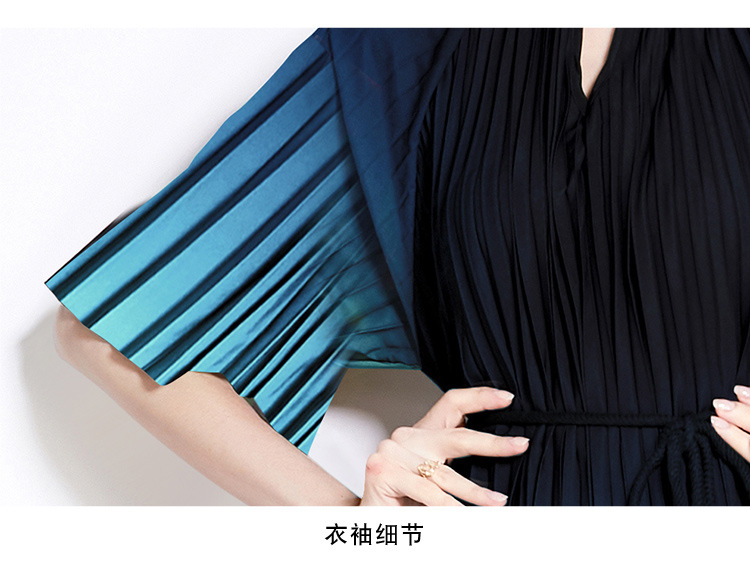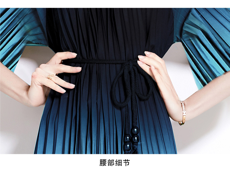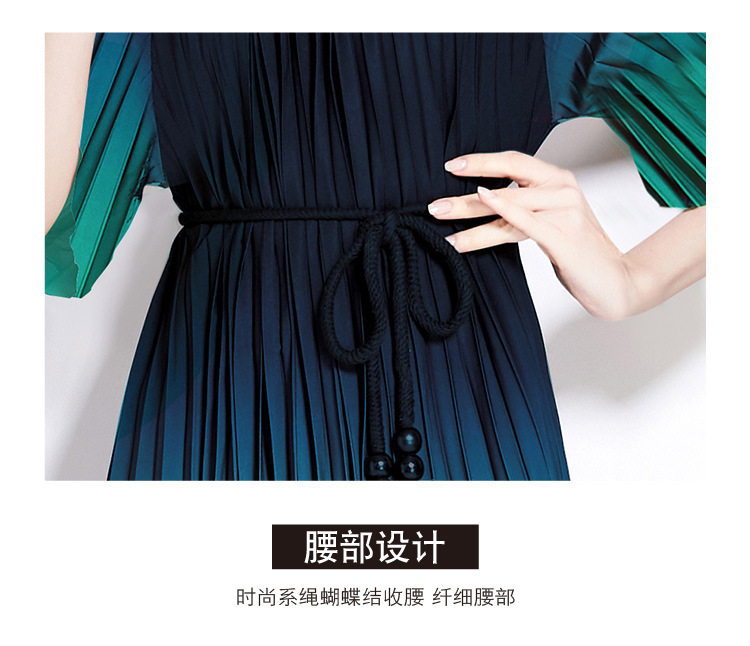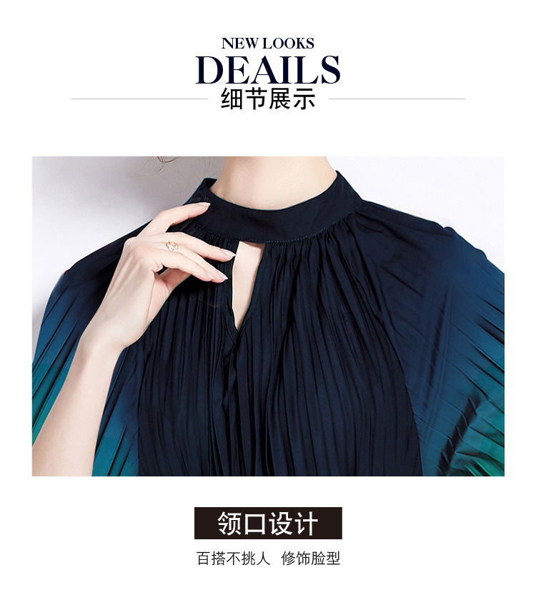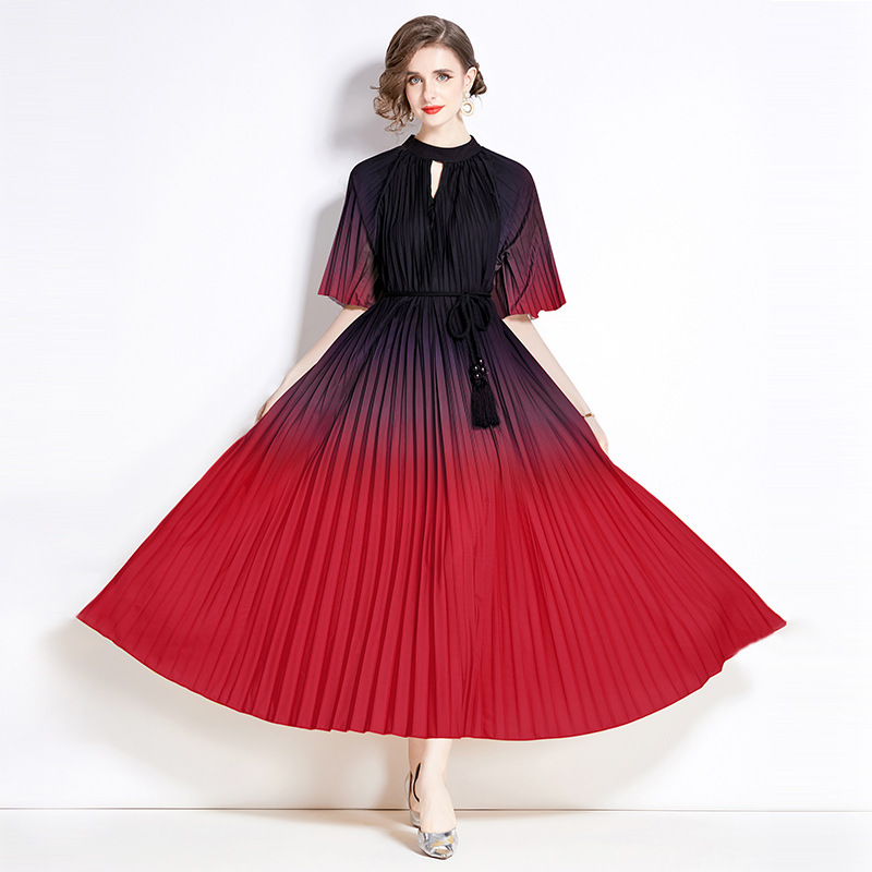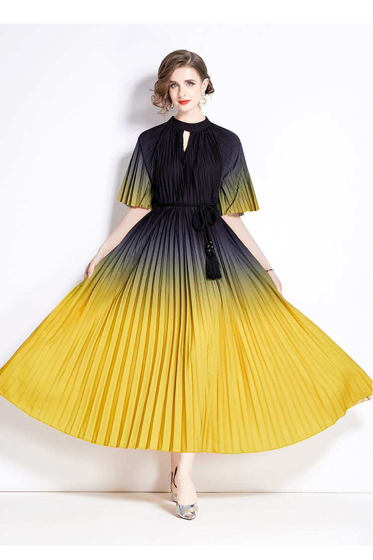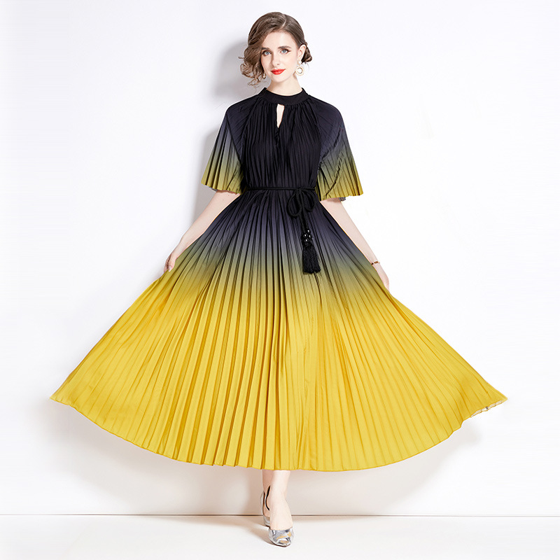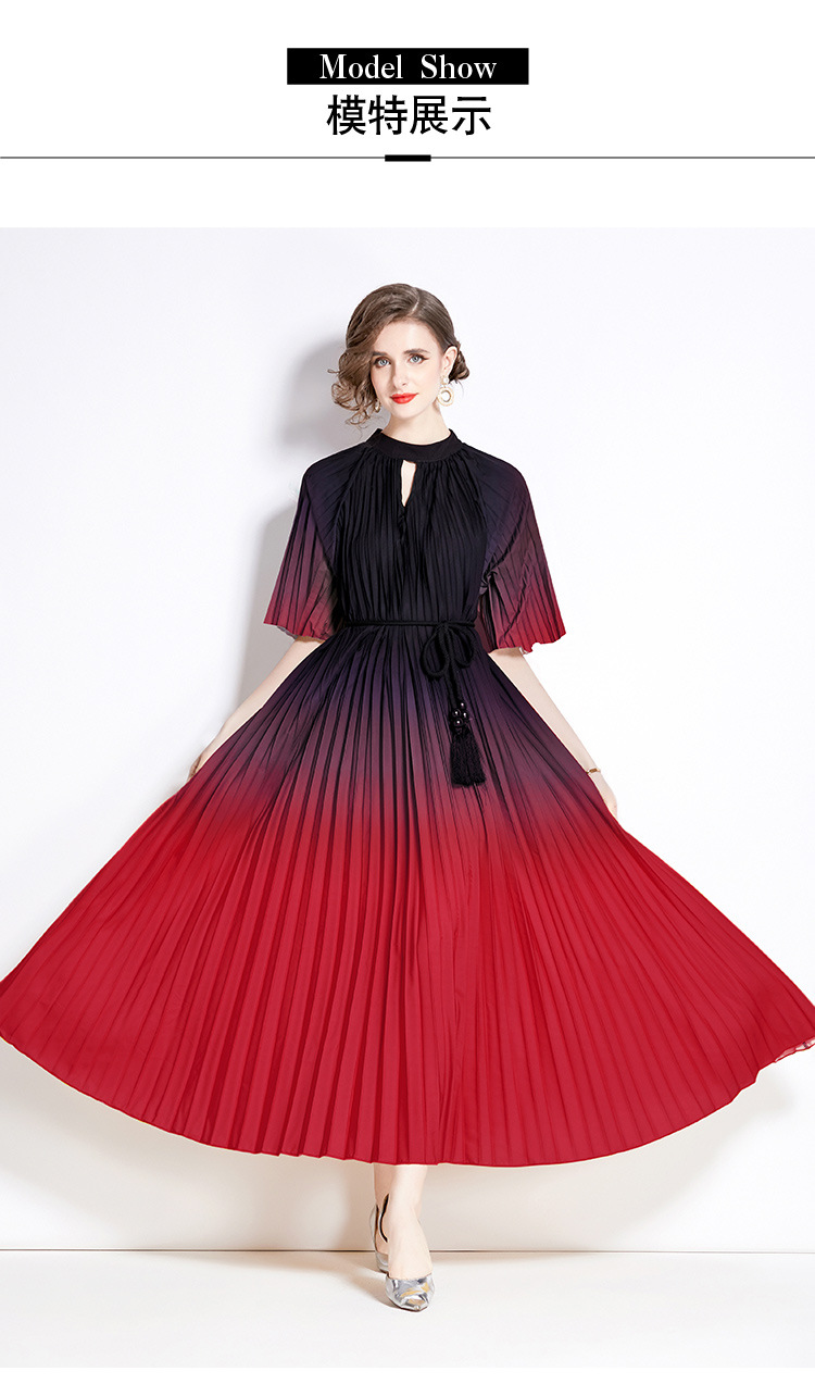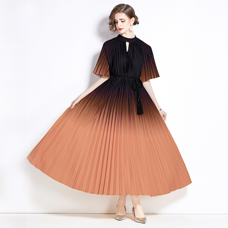 Áo dài tay ngắn mới cho mùa hè, cổ dựng và eo ôm tôn dáng. Thiết kế dáng chữ A với phần vải xếp ly mềm mại từ trên xuống, kết hợp hiệu ứng chuyển màu nhẹ nhàng từ nhạt đến đậm. Chất vải nhẹ, thoáng mát, phù hợp dự tiệc hoặc các buổi gặp mặt. Mặc kèm giày cao gót và phụ kiện đơn giản để hoàn thiện bộ trang phục. | Tên sản phẩm: Váy Đầm Liền Thân Dáng Dài Nữ Ngắn Tay Hàng Mùa Hè - Thời Trang Nữ | Mã sản phẩm: B4720 - Giá: 880.000đ | Mã nhà sản xuất: GUDG-G03Hình ảnh sản phẩm
