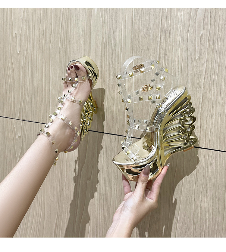 Đôi giày cao gót này có phần gót được thiết kế độc đáo, tạo điểm nhấn với những viên đá lấp lánh gắn trên đó. Gót giày rất cao và chắc chắn, đi kèm phần đế trước dày giúp nâng đỡ bàn chân, mang lại sự thoải mái khi di chuyển. Kiểu dáng phù hợp để đi trong những dịp cần sự nổi bật. Bạn chỉ cần xỏ chân vào và cài qu là đã sẵn sàng để bước đi. | Tên sản phẩm: Giày Cao Gót Nữ Gắn Đá Chống Nước Phong Cách Âu Mỹ - Giày Dép Nữ | Mã sản phẩm: B4723 - Giá: 980.000đ | Mã nhà sản xuất: JIENNG-G03Hình ảnh sản phẩm