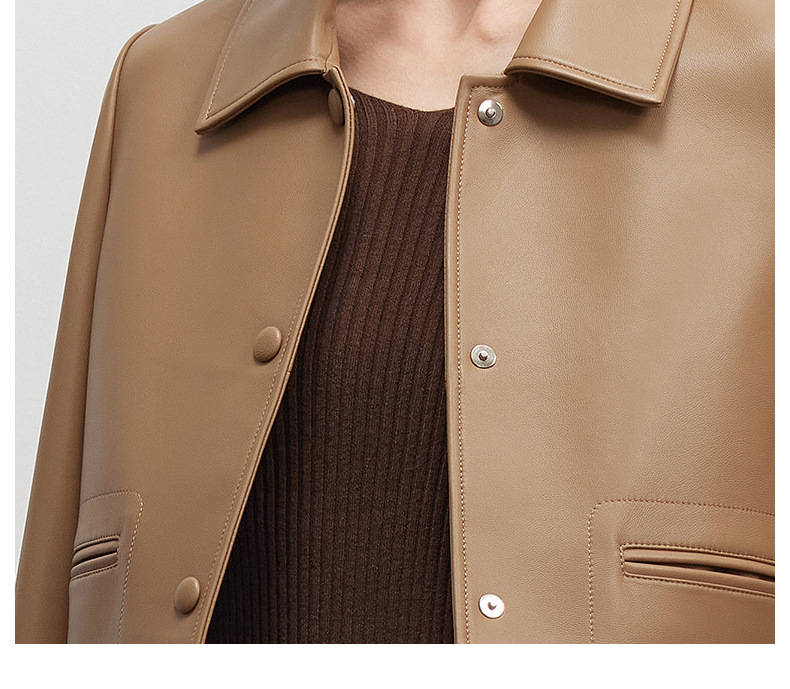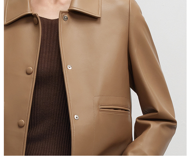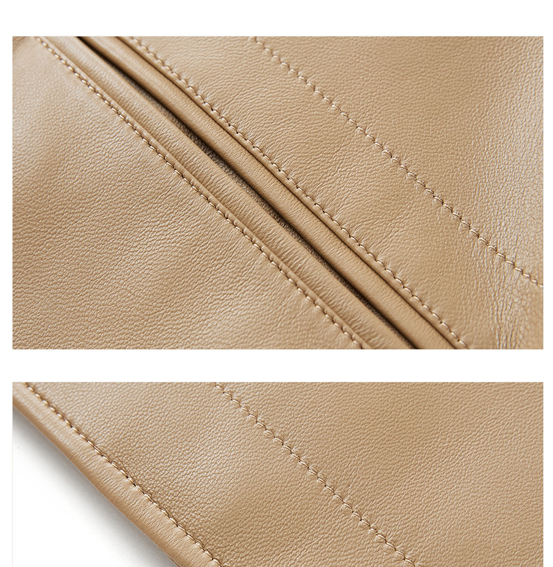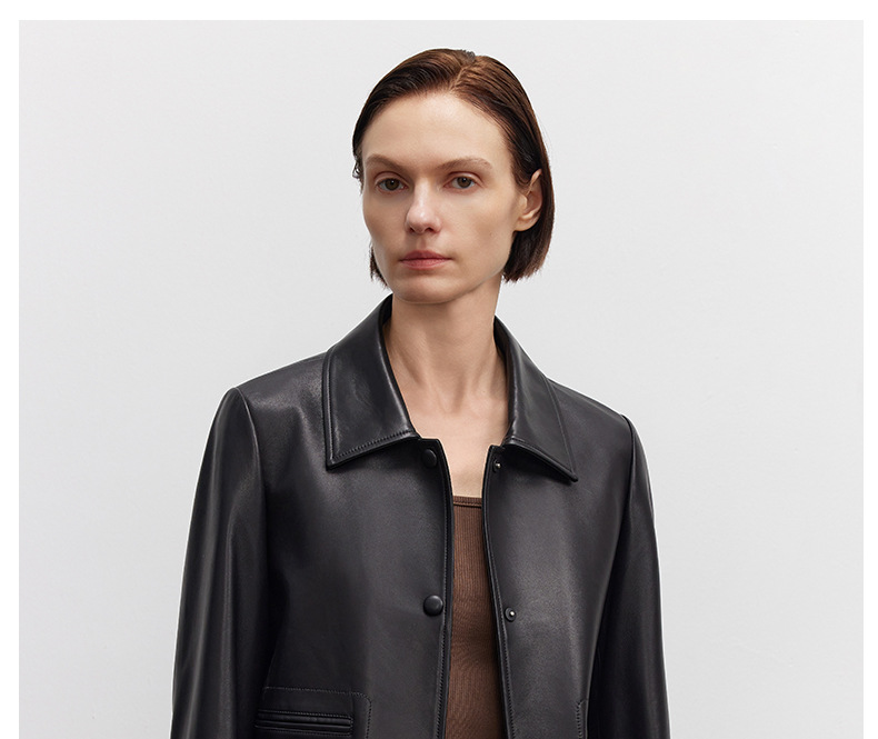 Áo khoác da cừu non dành cho nữ, thiết kế ngắn gọn gàng ôm vừa vặn cơ thể. Chất liệu da thật mềm mại, mang lại cảm giác dễ chịu khi mặc. Kiểu dáng đơn giản với cổ bẻ, phù hợp cho phong cách hằng ngày. Dễ dàng phối cùng nhiều trang phục như quần jean hay váy. Mặc trong tiết trời mát mẻ, giữ ấm nhẹ nhàng mà vẫn nổi bật. | Tên sản phẩm: Áo Da Nữ Chất Liệu Da Bò Dáng Ôm Kín Cổ Hàng Mùa Xuân Thu Đông - Thời Trang Nữ | Mã sản phẩm: B4724 - Giá: 12.020.000đ | Mã nhà sản xuất: HADG-G06Hình ảnh sản phẩm