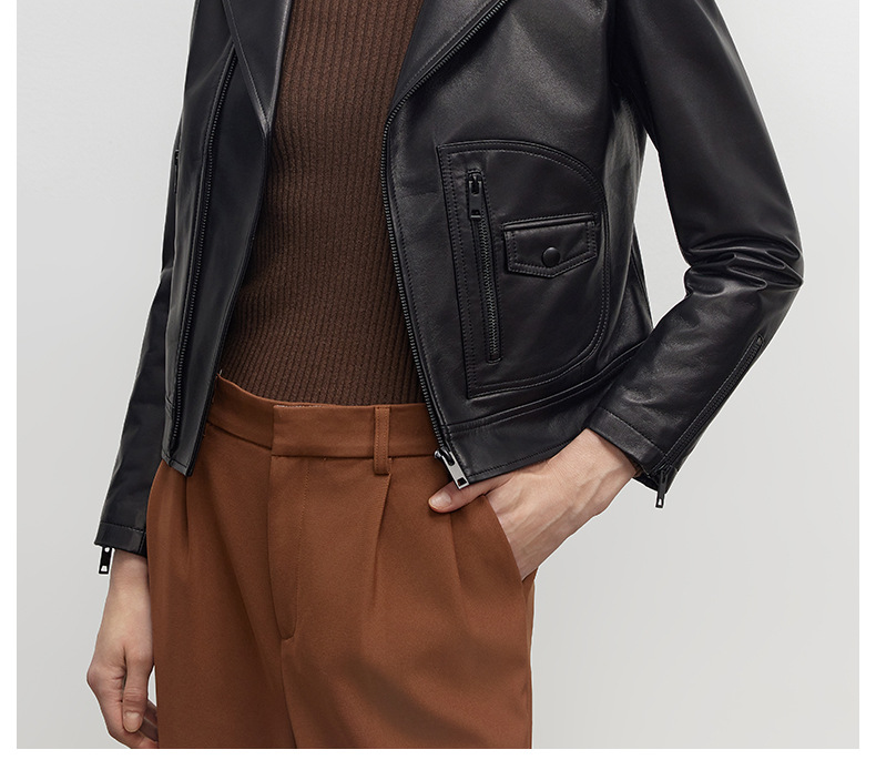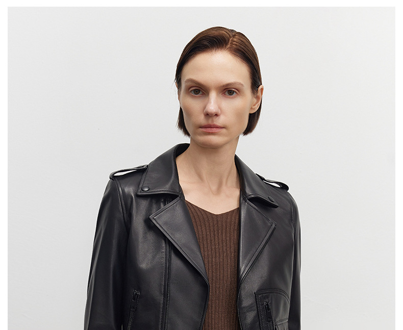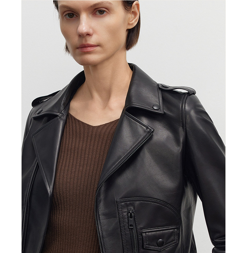 Áo khoác da kiểu dáng mô tô dành cho nữ, được cắt may ôm dáng tôn lên đường nét cơ thể. Chất liệu da cừu non mềm mại và bền chắc, mang đến cảm giác dễ chịu khi mặc. Thiết kế màu đen dễ dàng phối hợp với nhiều trang phục khác nhau. Sản phẩm phù hợp cho những ngày tiết trời mát mẻ. Có thể kết hợp cùng quần jeans và áo thun cho phong cách năng động, hoặc mặc với váy để tạo điểm nhấn cá tính. | Tên sản phẩm: Áo Da Nữ Chất Liệu Da Bò Dáng Ôm Hàng Mùa Xuân Thu Đông - Thời Trang Nữ | Mã sản phẩm: B4731 - Giá: 9.240.000đ | Mã nhà sản xuất: HADG-G06Hình ảnh sản phẩm