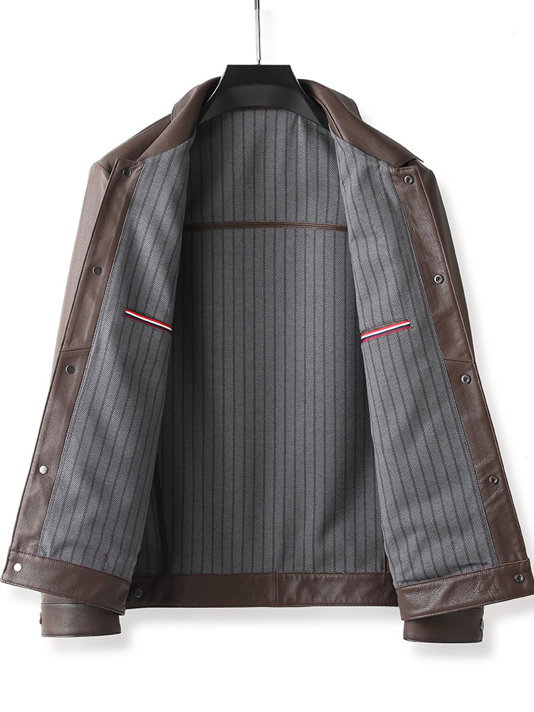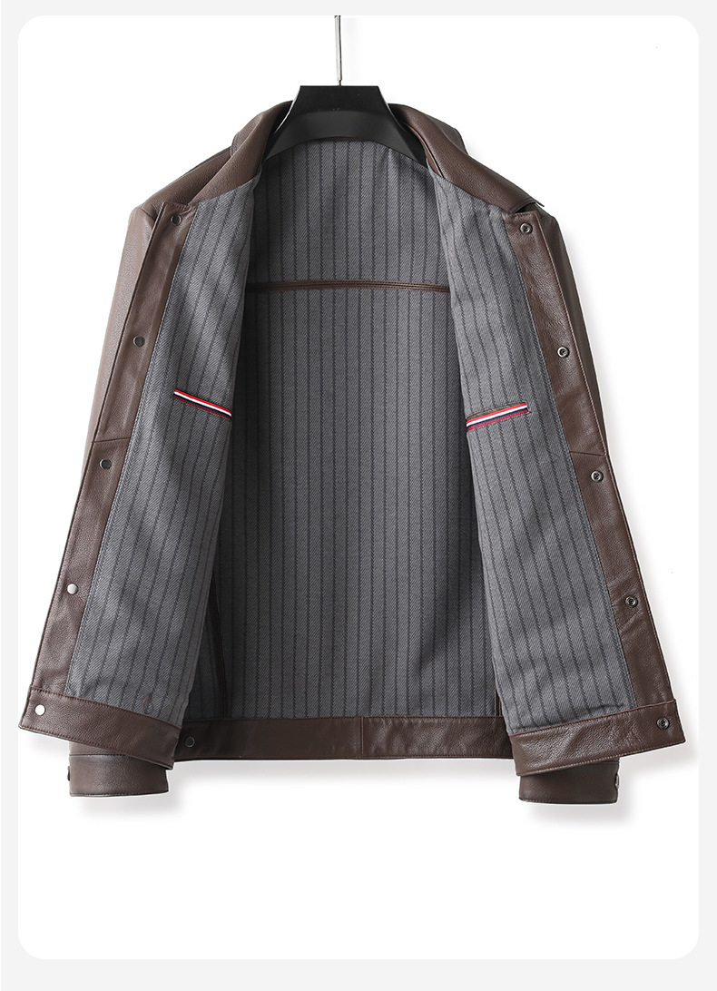 Áo khoác da cho nam, kiểu dáng kết hợp đi làm và dạo phố. Sản phẩm được làm từ chất liệu da thuộc mềm mại, có cổ bẻ. Thiết kế này phù hợp cho thời tiết mùa thu đông. Bạn có thể mặc cùng áo sơ mi hoặc áo thun bên trong. Dùng khăn mềm ẩm để lau sạch bề mặt, sau đó để nơi khô ráo. | Tên sản phẩm: Áo Da Nam Chất Liệu Da Bò Kín Cổ Hàng Mùa Xuân Thu Đông - Thời Trang Nam | Mã sản phẩm: B4735 - Giá: 10.640.000đ | Mã nhà sản xuất: HADG-G06Hình ảnh sản phẩm
