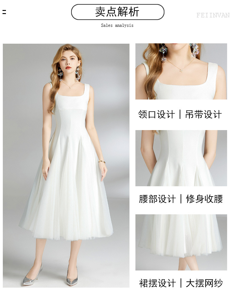 Chiếc váy hai dây màu trắng này là lựa chọn lý tưởng cho mùa hè. Thiết kế kết hợp giữa chất liệu chính và phần vải mỏng nhẹ tạo nên phom dáng xòe nhẹ nhàng, mang đến vẻ đẹp tinh tế và duyên dáng. Sản phẩm phù hợp cho những dịp quan trọng như chụp ảnh kỷ niệm. Cách sử dụng rất đơn giản, bạn chỉ cần mặc vào và điều chỉnh dây đeo cho vừa vặn là đã có một set đồ hoàn chỉnh. | Tên sản phẩm: Áo Hai Dây Nữ Lưới Mỏng Hai Dây Hở Vai Hàng Mùa Hè - Thời Trang Nữ | Mã sản phẩm: B4749 - Giá: 1.240.000đ | Mã nhà sản xuất: GUDG-G04Hình ảnh sản phẩm
