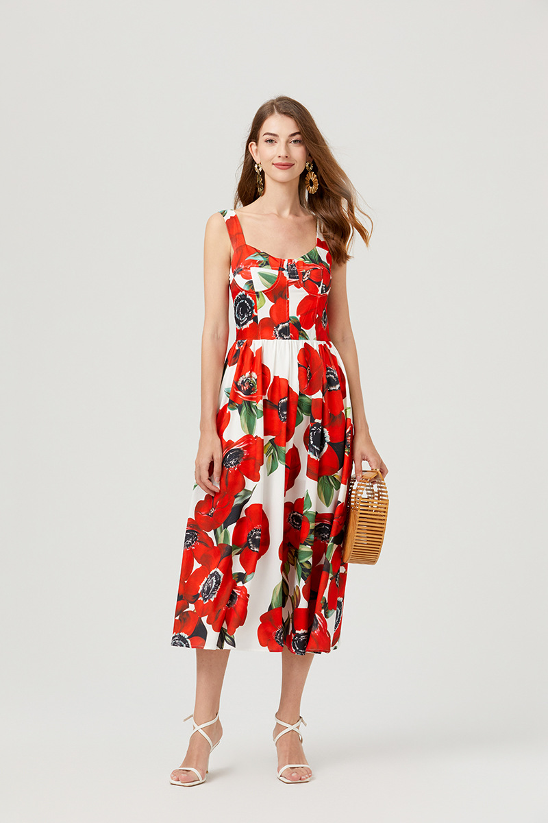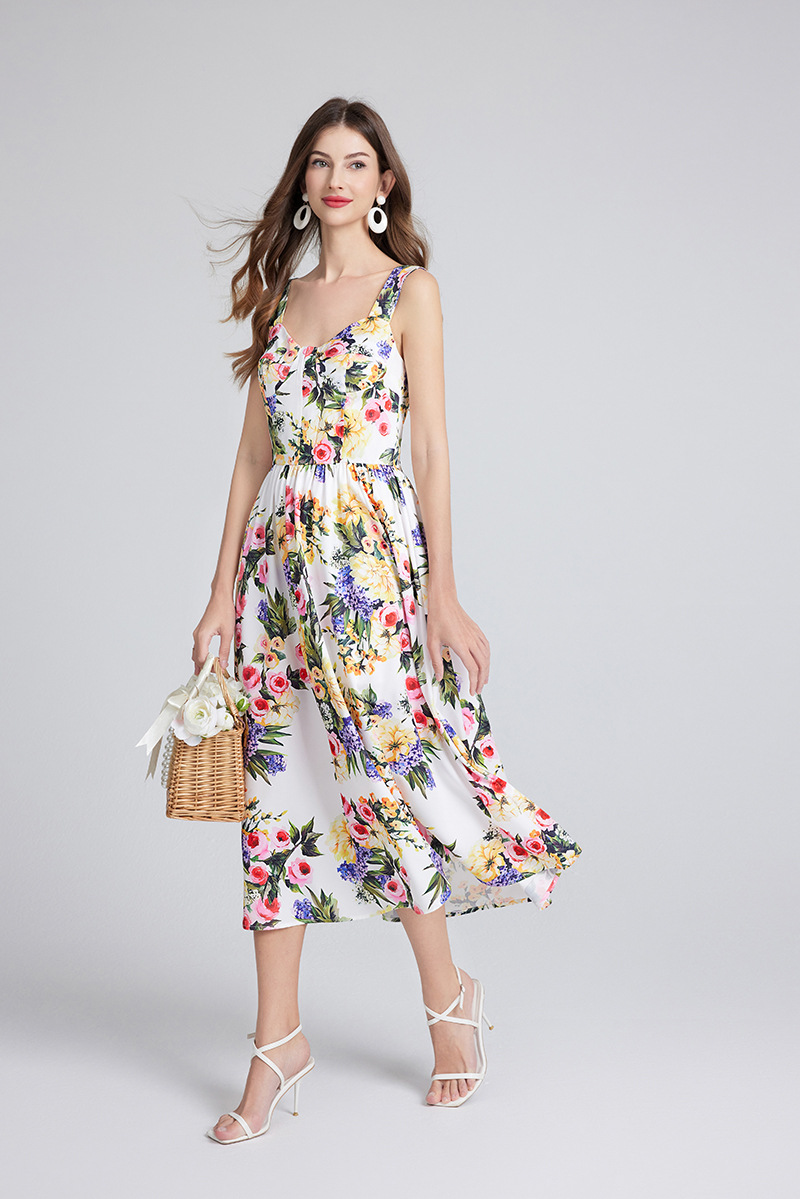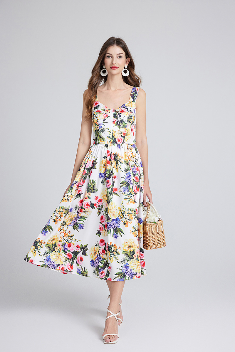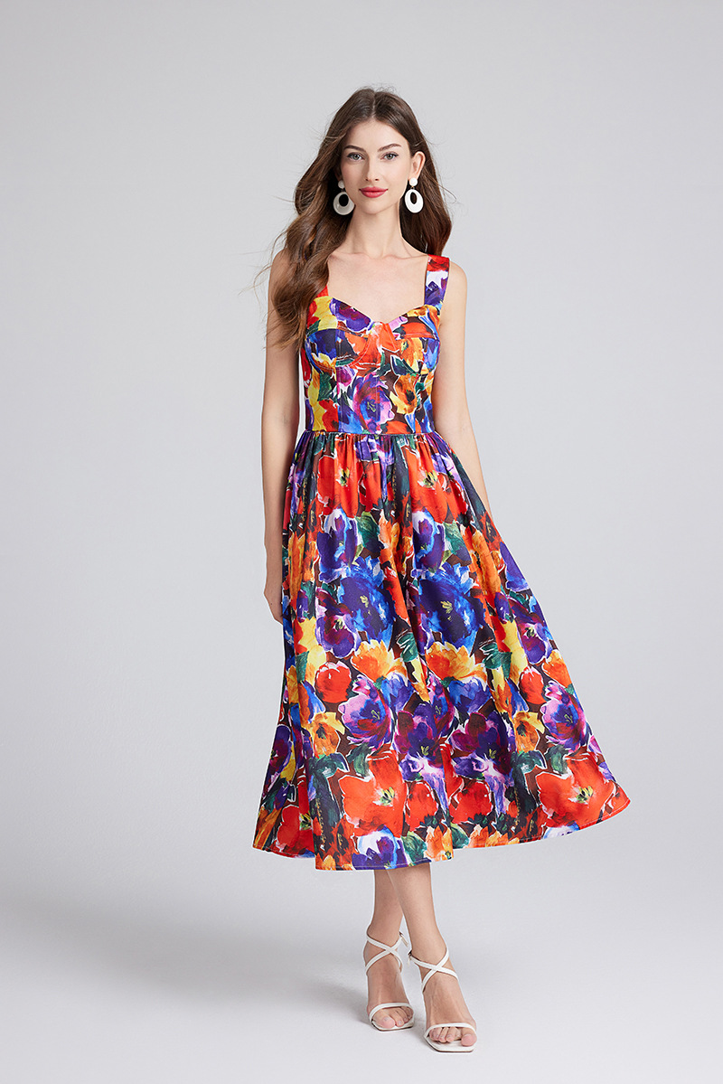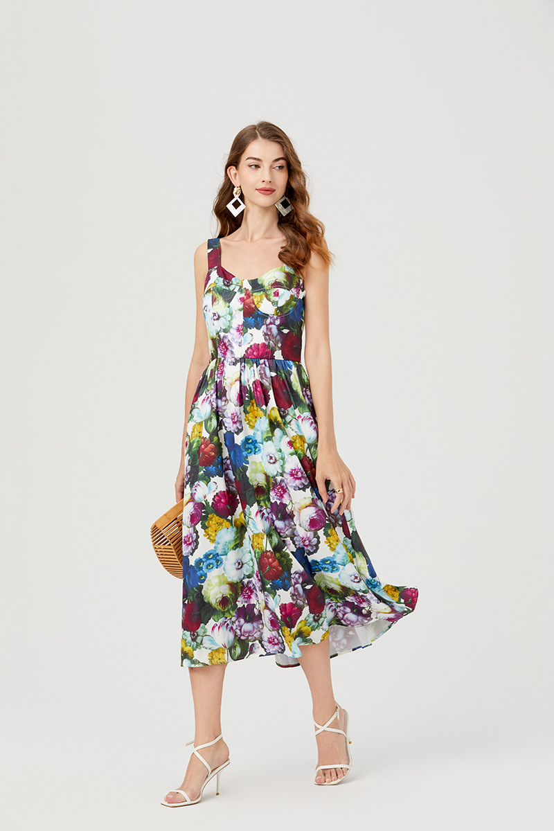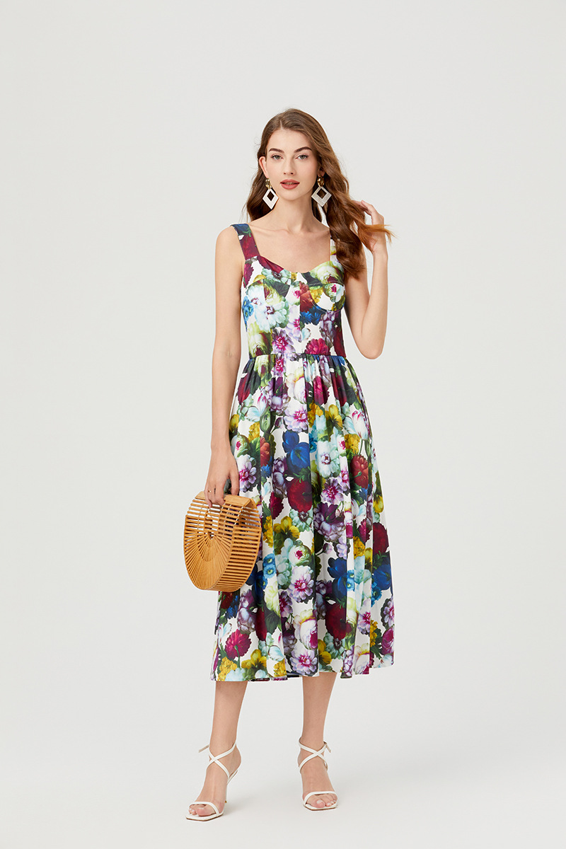 Chiếc đầm này có thiết kế cổ khoét sâu ngang tạo nên điểm nhấn gợi cảm tinh tế. Chất vải mềm mại, in họa tiết thời thượng lấy cảm hứng từ những buổi trình diễn. Dây đeo có thể điều chỉnh và phần eo được buộc nơ giúp tôn lên đường nét cơ thể. Đây là lựa chọn lý tưởng cho mùa hè, mặc đi dạo phố hay dự tiệc đều phù hợp. Bạn chỉ cần mặc và điều chỉnh dây cho vừa vặn là đã có một set đồ hoàn chỉnh. | Tên sản phẩm: Áo Hai Dây Nữ Họa Tiết Hoa Hai Dây Hở Vai Hàng Mùa Hè Phong Cách Âu Mỹ - Thời Trang Nữ | Mã sản phẩm: B4751 - Giá: 890.000đ | Mã nhà sản xuất: GUDG-G03Hình ảnh sản phẩm