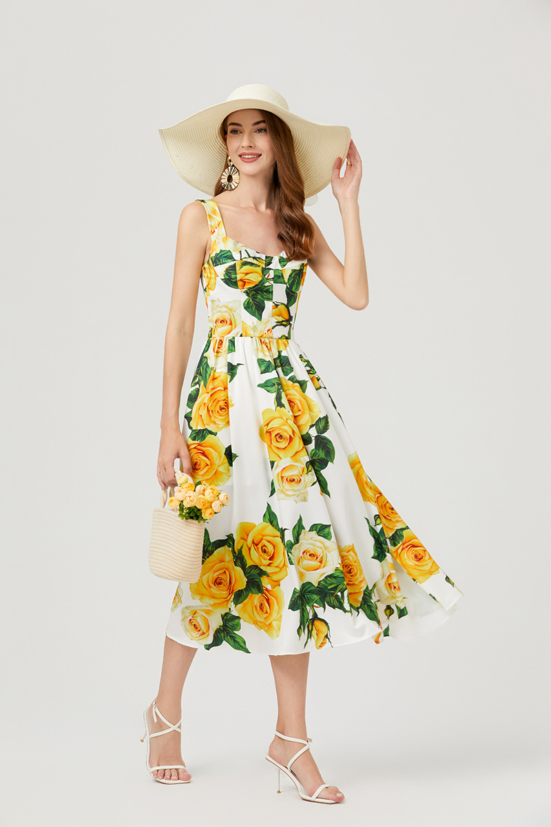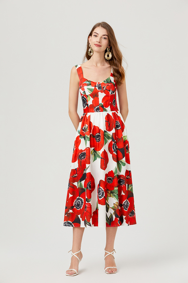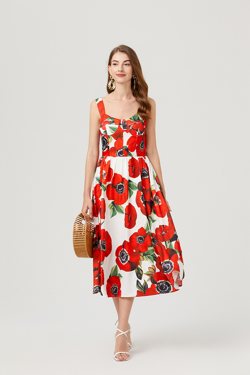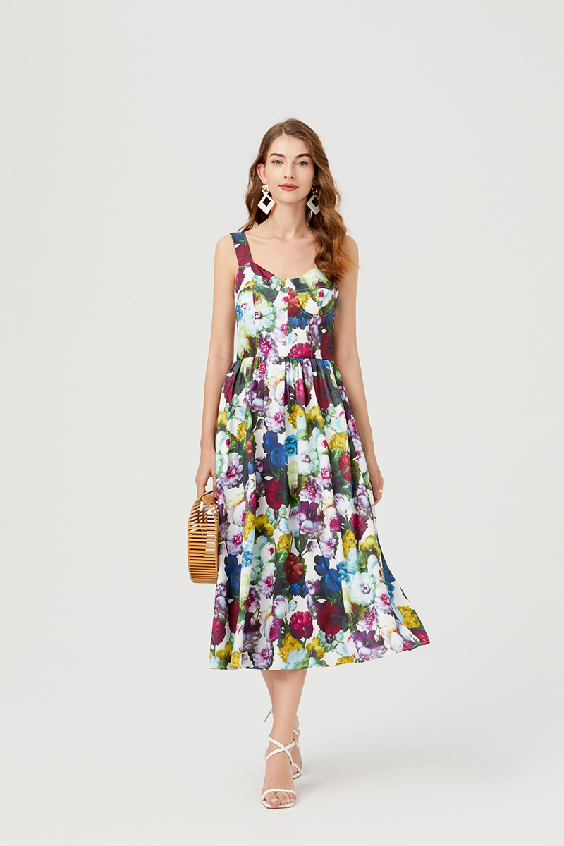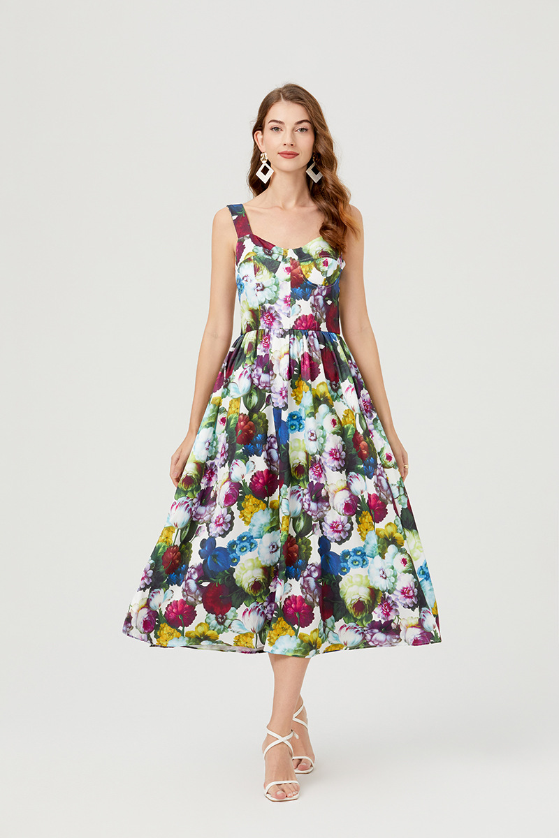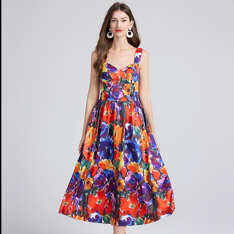 Chiếc đầm này có thiết kế cổ khoét sâu ngang tạo nên điểm nhấn gợi cảm tinh tế. Chất vải mềm mại, in họa tiết thời thượng lấy cảm hứng từ những buổi trình diễn. Dây đeo có thể điều chỉnh và phần eo được buộc nơ giúp tôn lên đường nét cơ thể. Đây là lựa chọn lý tưởng cho mùa hè, mặc đi dạo phố hay dự tiệc đều phù hợp. Bạn chỉ cần mặc và điều chỉnh dây cho vừa vặn là đã có một set đồ hoàn chỉnh. | Tên sản phẩm: Áo Hai Dây Nữ Họa Tiết Hoa Hai Dây Hở Vai Hàng Mùa Hè Phong Cách Âu Mỹ - Thời Trang Nữ | Mã sản phẩm: B4751 - Giá: 890.000đ | Mã nhà sản xuất: GUDG-G03Hình ảnh sản phẩm