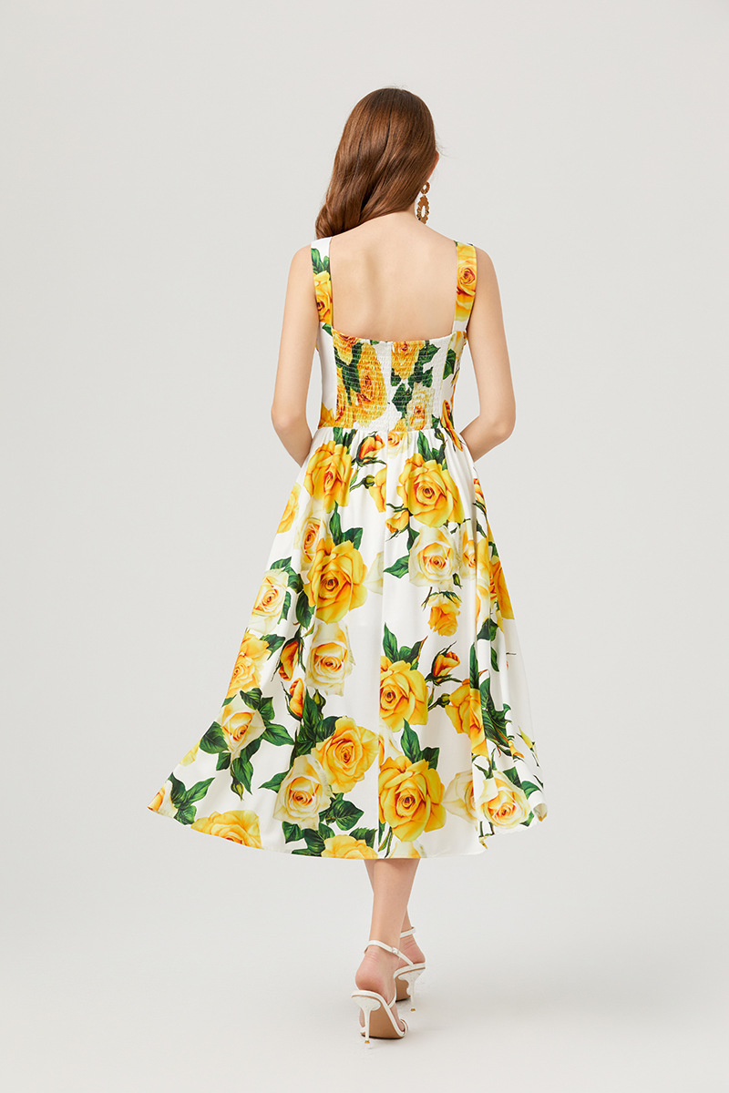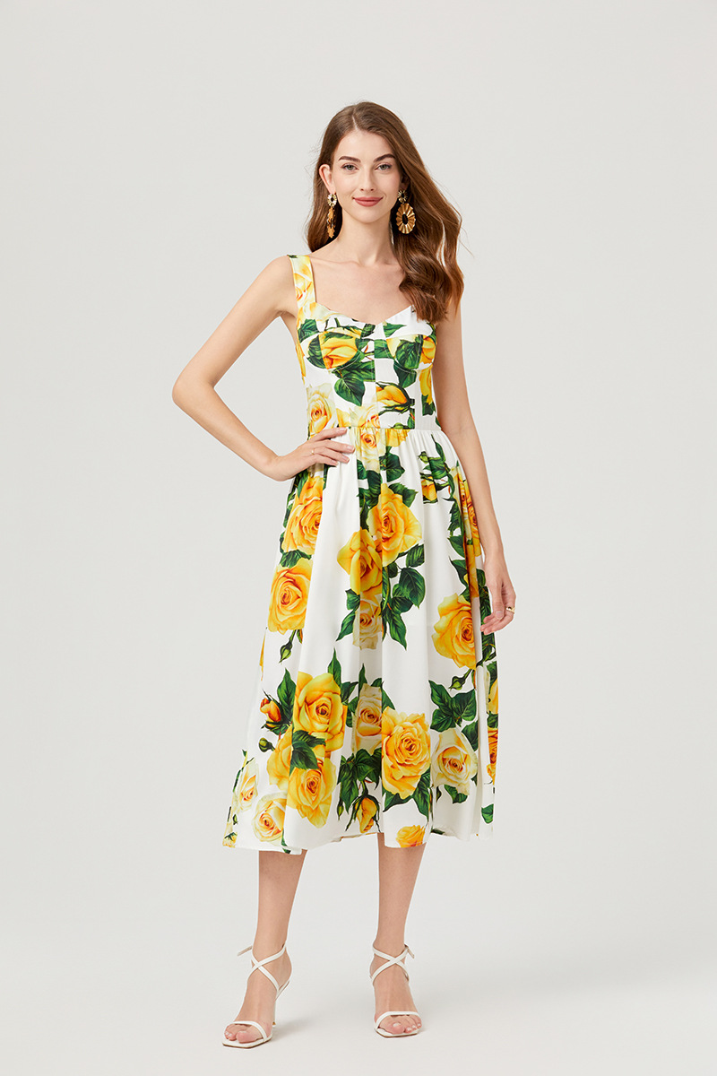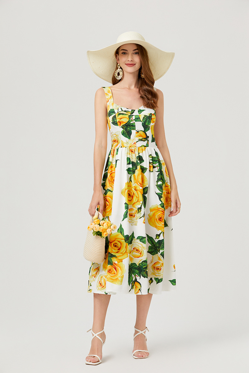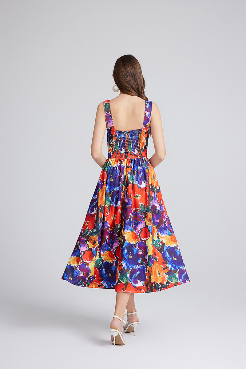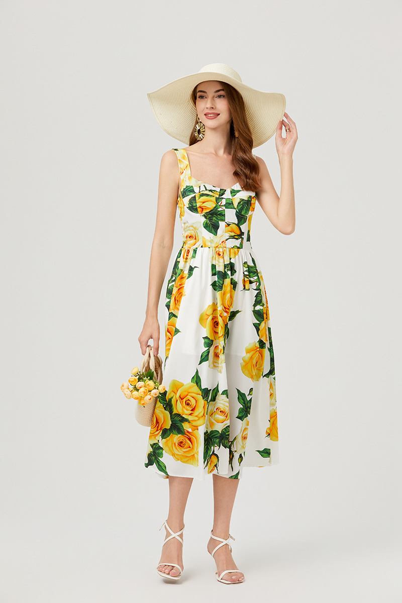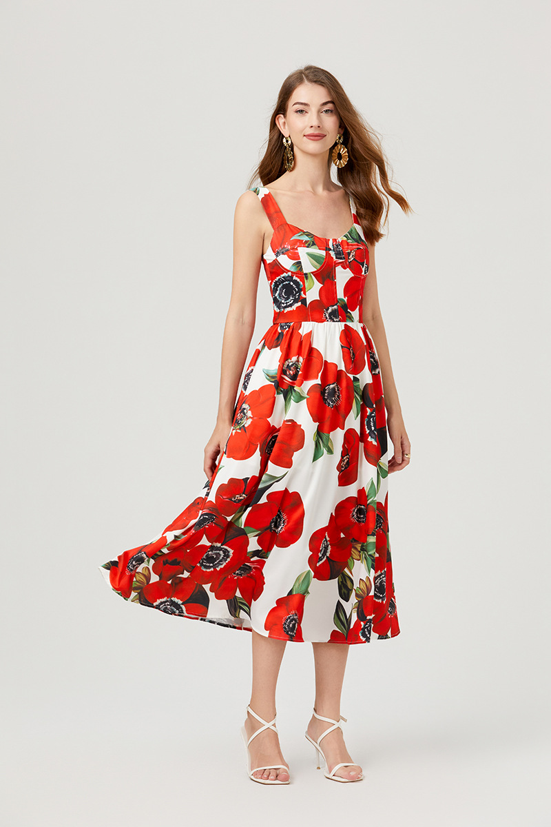 Chiếc đầm này có thiết kế cổ khoét sâu ngang tạo nên điểm nhấn gợi cảm tinh tế. Chất vải mềm mại, in họa tiết thời thượng lấy cảm hứng từ những buổi trình diễn. Dây đeo có thể điều chỉnh và phần eo được buộc nơ giúp tôn lên đường nét cơ thể. Đây là lựa chọn lý tưởng cho mùa hè, mặc đi dạo phố hay dự tiệc đều phù hợp. Bạn chỉ cần mặc và điều chỉnh dây cho vừa vặn là đã có một set đồ hoàn chỉnh. | Tên sản phẩm: Áo Hai Dây Nữ Họa Tiết Hoa Hai Dây Hở Vai Hàng Mùa Hè Phong Cách Âu Mỹ - Thời Trang Nữ | Mã sản phẩm: B4751 - Giá: 890.000đ | Mã nhà sản xuất: GUDG-G03Hình ảnh sản phẩm
