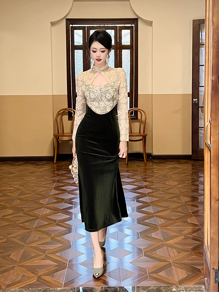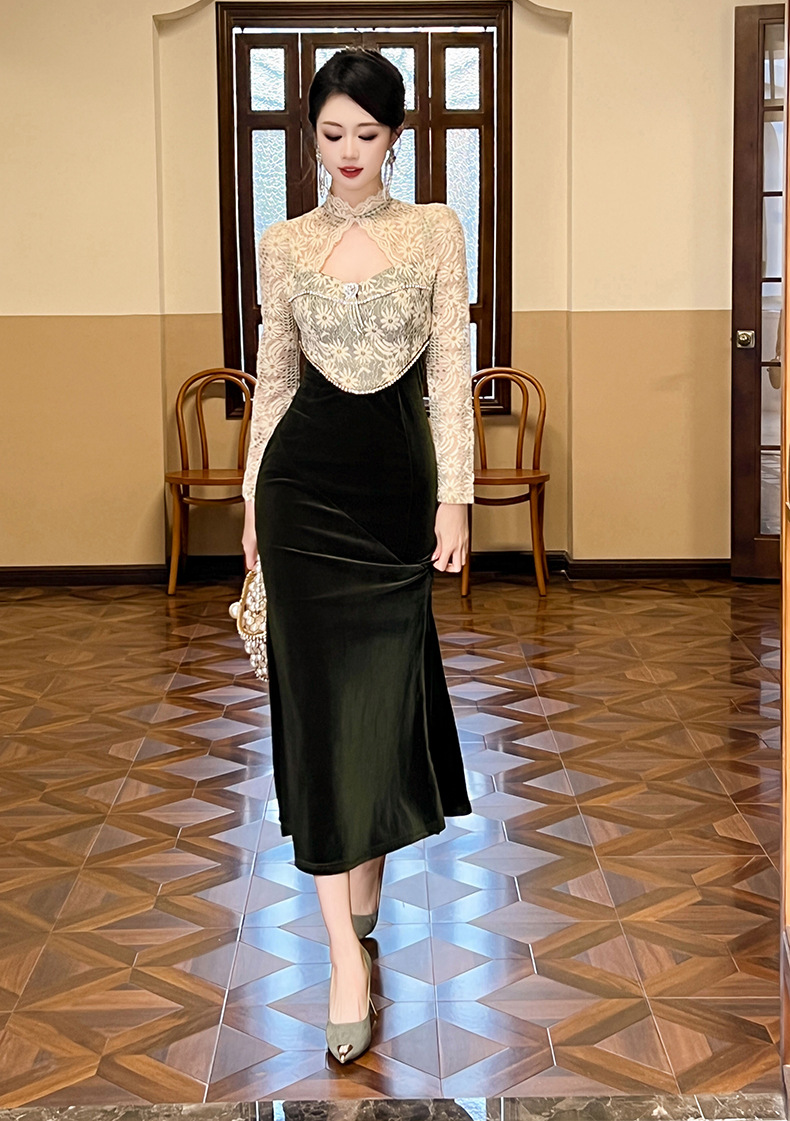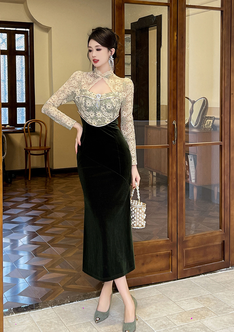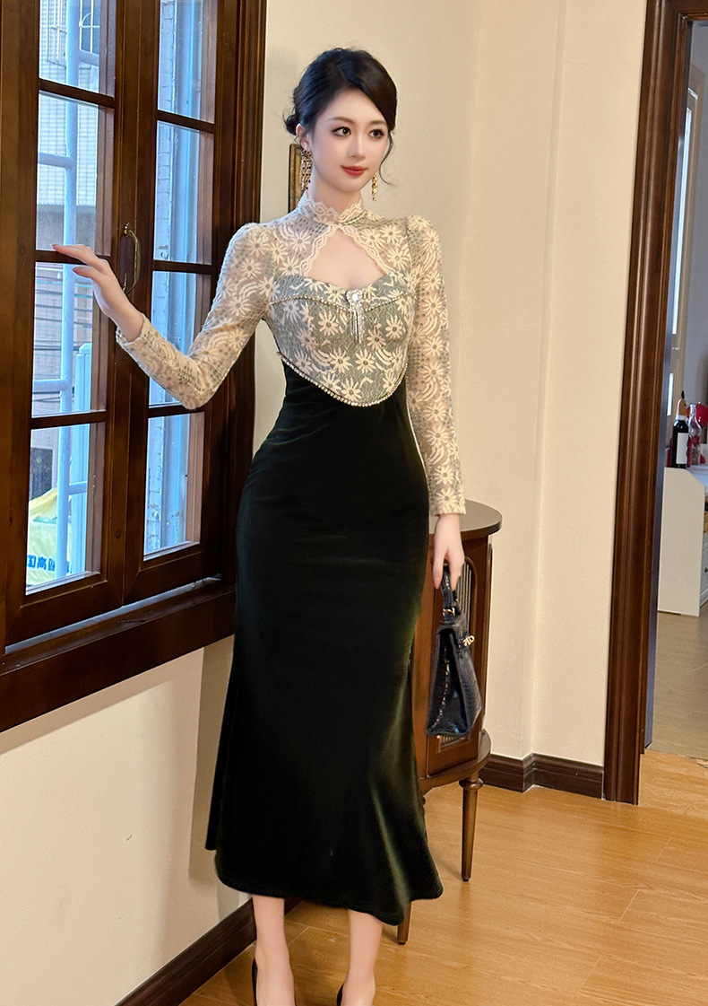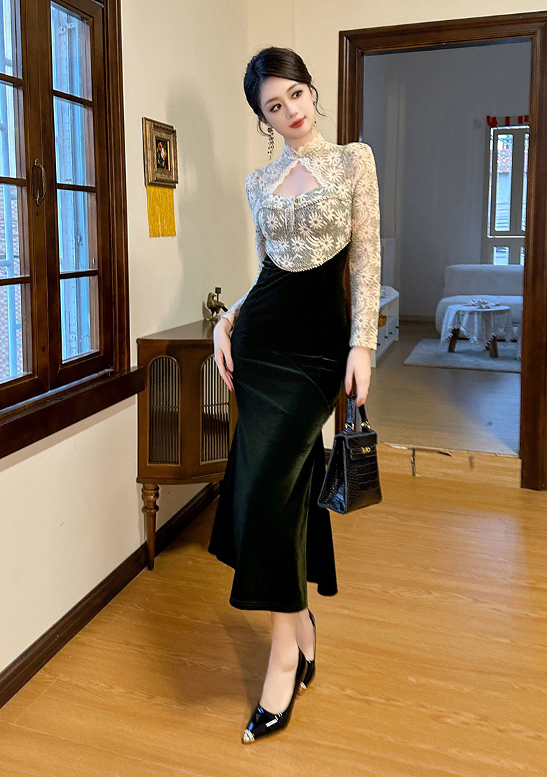 Chiếc đầm dáng dài tay, được cách tân từ kiểu dáng truyền thống, mang đến vẻ đẹp dịu dàng và hiện đại. Chất liệu nhung mềm mại giữ ấm cơ thể, kết hợp cùng chi tiết ren tinh tế. Sản phẩm phù hợp cho những dịp lễ hội hoặc sử dụng hàng ngày. Bạn có thể mặc nguyên chiếc, phối cùng giày cao gót hoặc giày đế bằng để tạo nên những phong cách khác nhau. | Tên sản phẩm: Váy Đầm Liền Thân Nữ Chất Liệu Ren Dài Tay Hàng Mùa Xuân Thu Đông - Thời Trang Nữ | Mã sản phẩm: B4790 - Giá: 1.380.000đ | Mã nhà sản xuất: CHDG-G04Hình ảnh sản phẩm