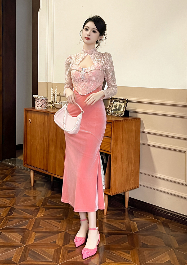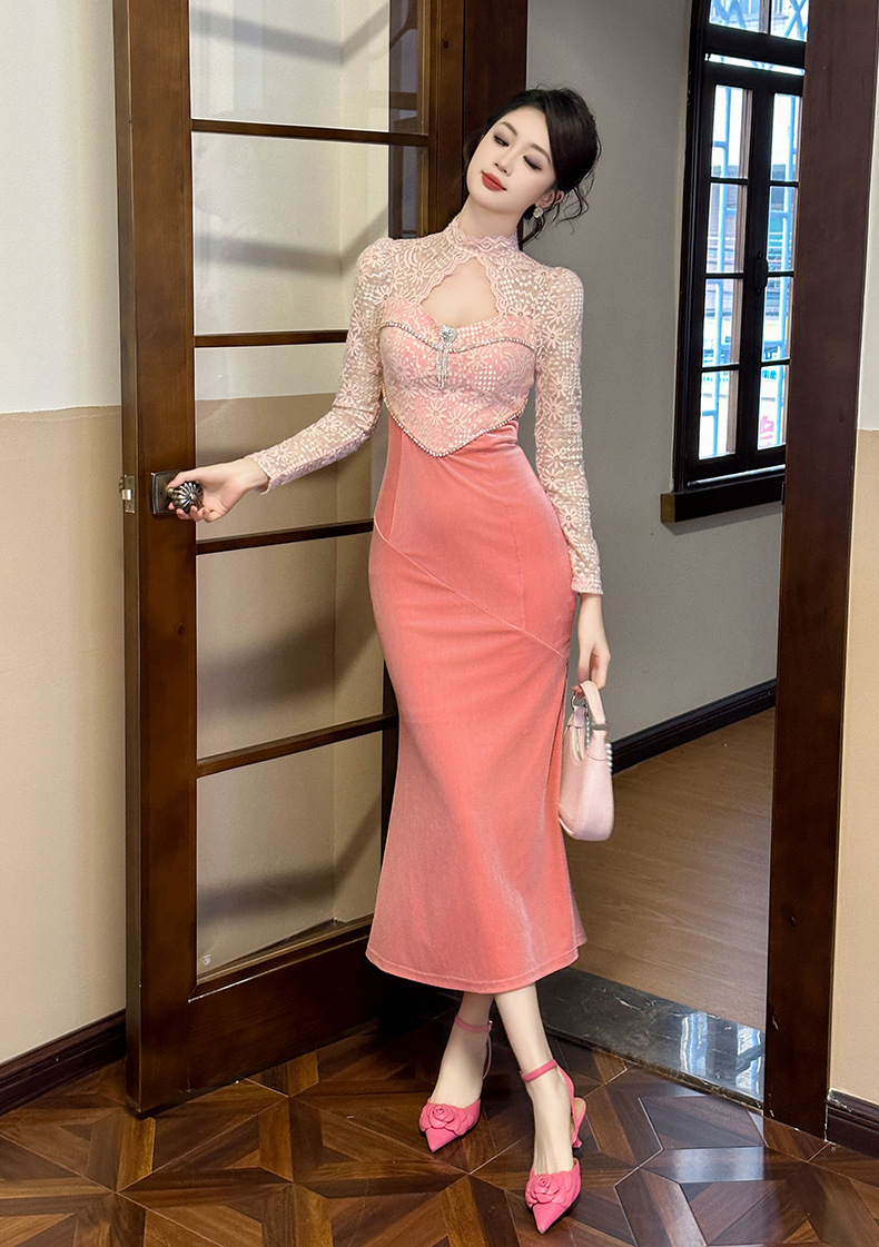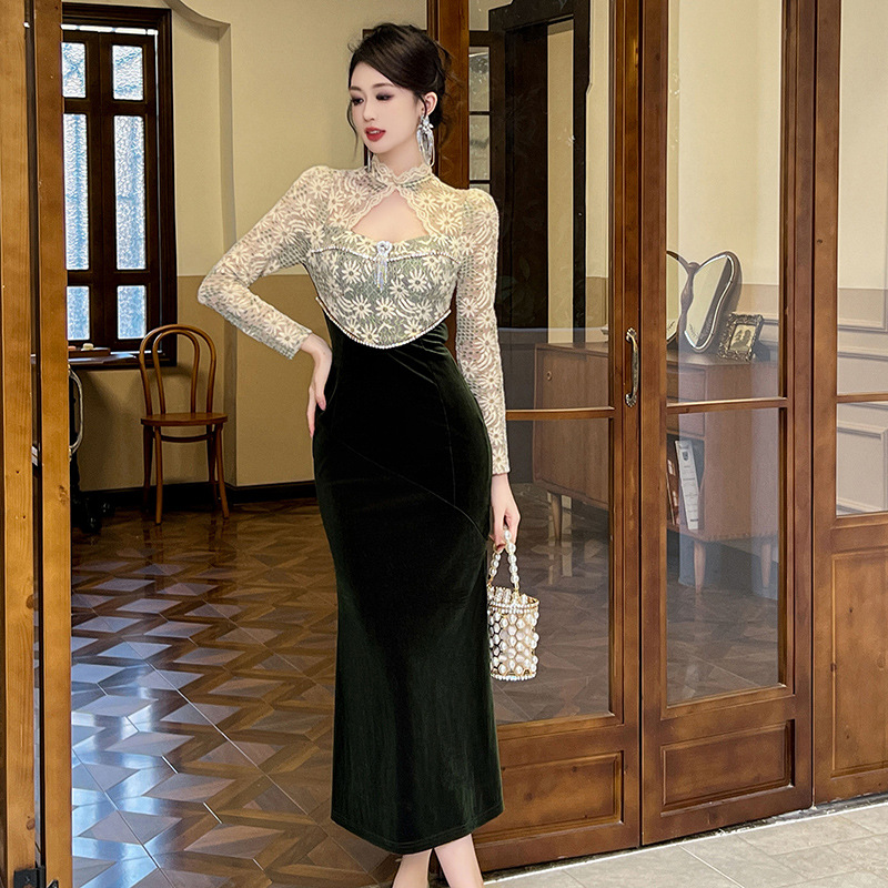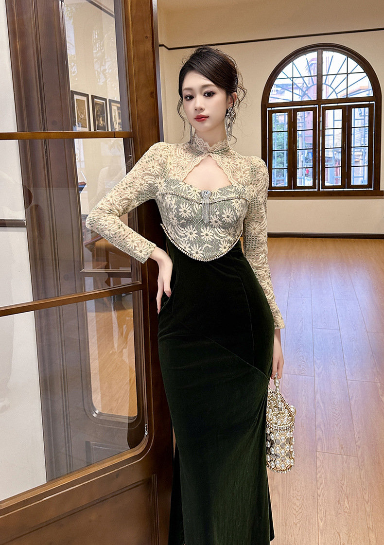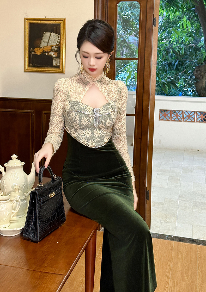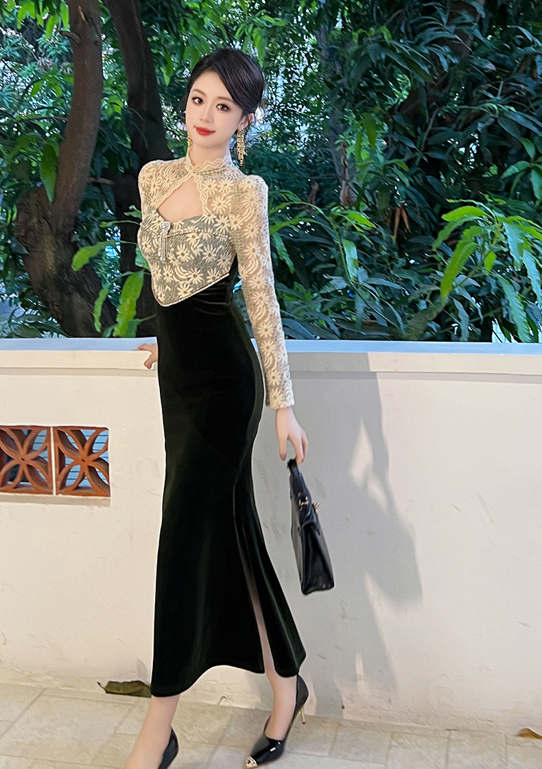Chiếc đầm dáng dài tay, được cách tân từ kiểu dáng truyền thống, mang đến vẻ đẹp dịu dàng và hiện đại. Chất liệu nhung mềm mại giữ ấm cơ thể, kết hợp cùng chi tiết ren tinh tế. Sản phẩm phù hợp cho những dịp lễ hội hoặc sử dụng hàng ngày. Bạn có thể mặc nguyên chiếc, phối cùng giày cao gót hoặc giày đế bằng để tạo nên những phong cách khác nhau. | Tên sản phẩm: Váy Đầm Liền Thân Nữ Chất Liệu Ren Dài Tay Hàng Mùa Xuân Thu Đông - Thời Trang Nữ | Mã sản phẩm: B4790 - Giá: 1.380.000đ | Mã nhà sản xuất: CHDG-G04Hình ảnh sản phẩm
