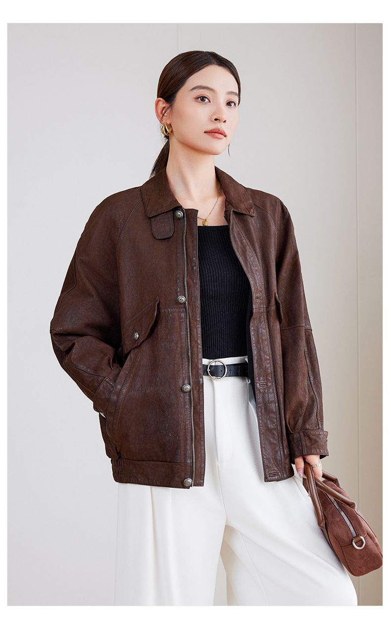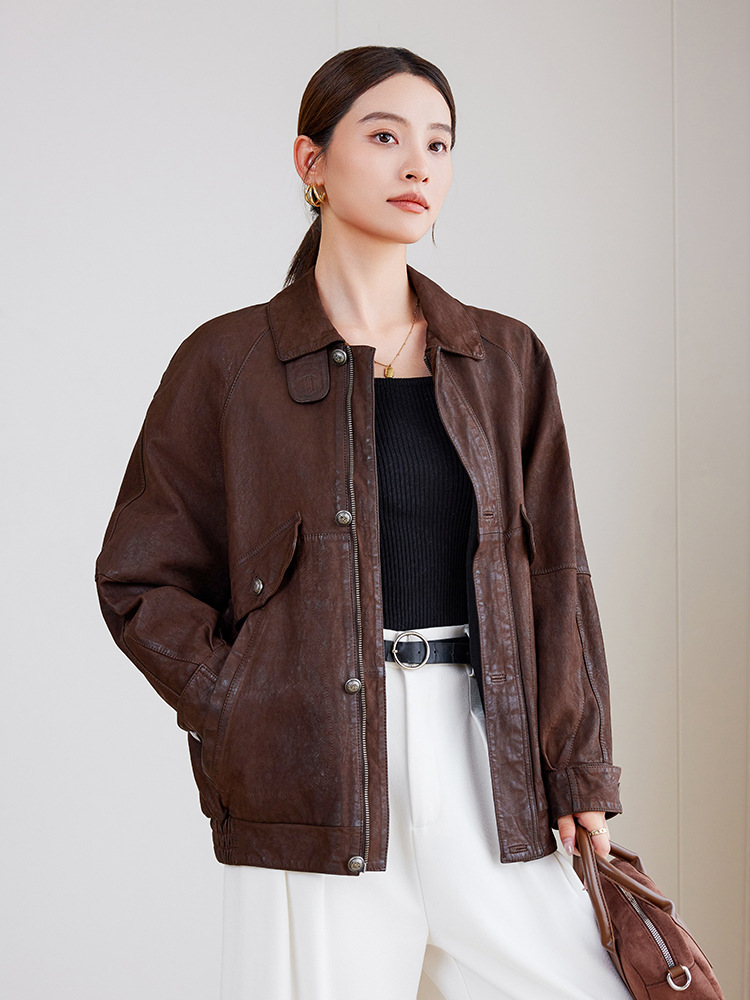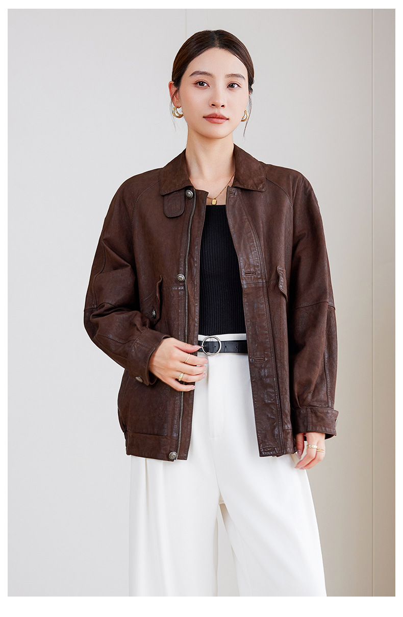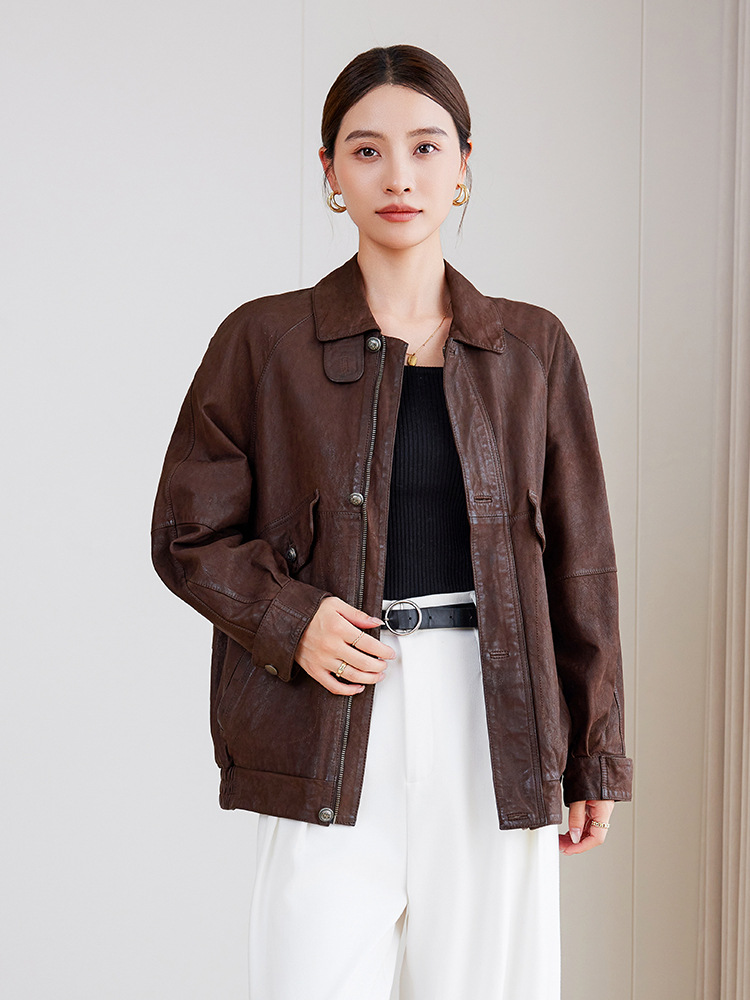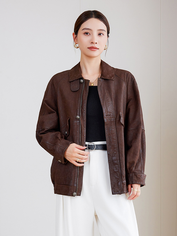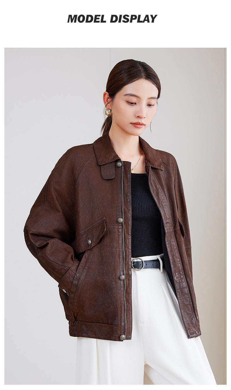 Áo khoác da thuộc màu nâu cổ điển, kiểu dáng ngắn phù hợp cho những người có vóc dáng nhỏ nhắn. Chất liệu da thật mang đến cảm giác mềm mại và bền bỉ theo thời gian. Thiết kế cổ bẻ, ấm áp và tạo điểm nhấn. Dễ dàng phối cùng quần jean hay váy để tạo vẻ ngoài cá tính. Mặc hằng ngày, giữ ấm nhẹ và bảo vệ cơ thể trong tiết trời se lạnh. | Tên sản phẩm: Áo Da Nữ Chất Liệu Da Bò Kín Cổ Hàng Mùa Xuân Thu Đông Phục Cổ Cổ Điển - Thời Trang Nữ | Mã sản phẩm: B4795 - Giá: 15.630.000đ | Mã nhà sản xuất: HADG-G06Hình ảnh sản phẩm