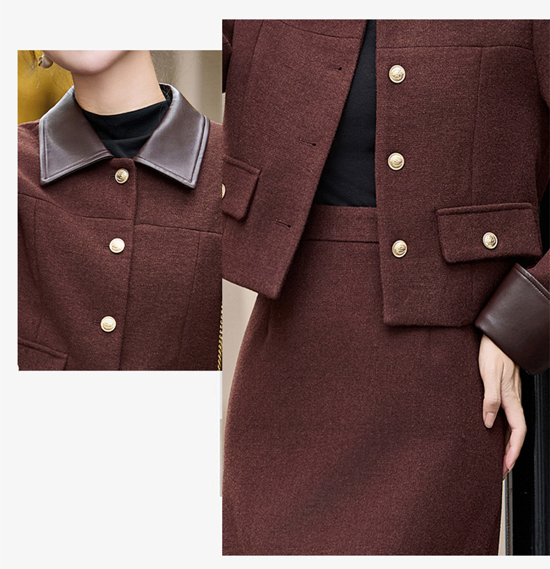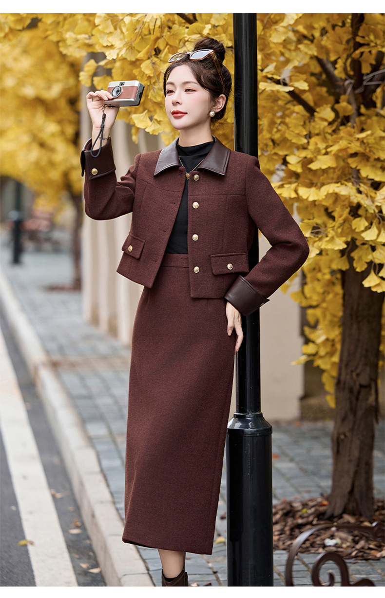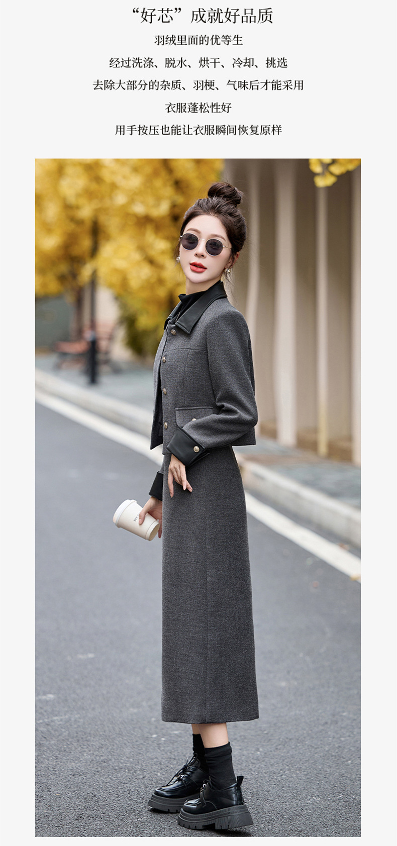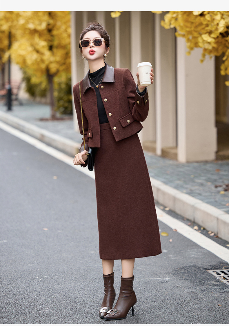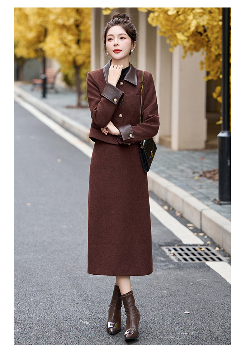 Bộ trang phục hai mảnh này gồm áo khoác và chân váy, thiết kế dành riêng cho mùa thu đông. Áo khoác có cổ bẻ, được lót bằng lớp lông vũ mềm mại giúp giữ ấm tốt. Chất liệu kết hợp tạo điểm nhấn thanh lịch. Chân váy ôn nhẹ tôn dáng. Dễ dàng phối đồ đi làm hoặc dạo phố. Mặc áo khoác với quần tây hoặc kết hợp cùng chân váy có sẵn để có bộ trang phục hoàn chỉnh. | Tên sản phẩm: Áo Khoác Nữ Cả Bộ 2 Món Kín Cổ Hàng Mùa Xuân Thu Đông - Thời Trang Nữ | Mã sản phẩm: B4803 - Giá: 2.720.000đ | Mã nhà sản xuất: HADG-G06Hình ảnh sản phẩm