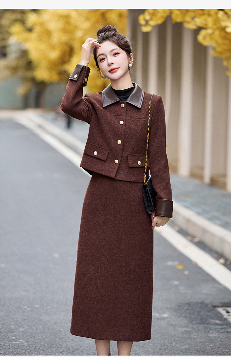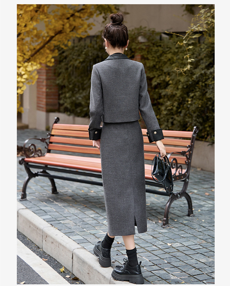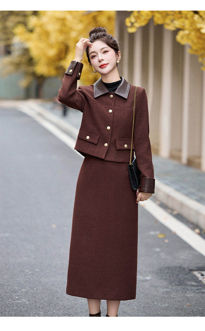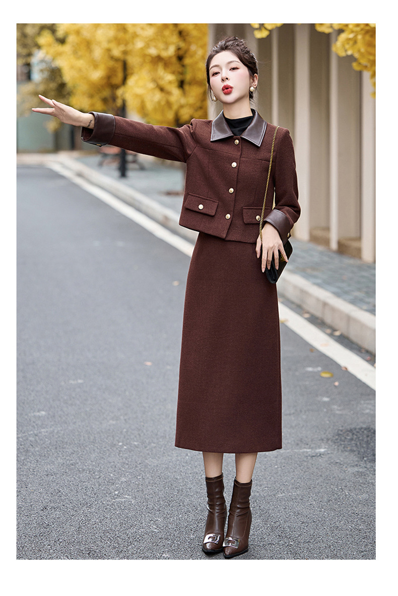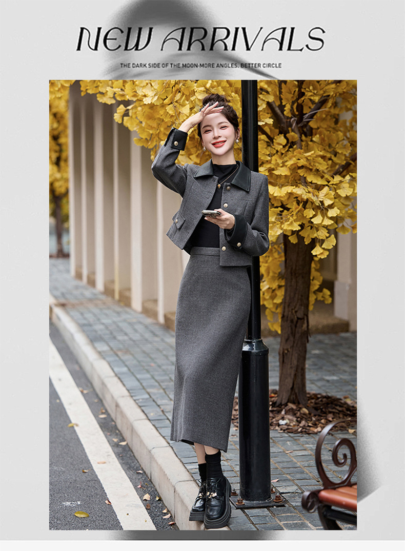 Bộ trang phục hai mảnh này gồm áo khoác và chân váy, thiết kế dành riêng cho mùa thu đông. Áo khoác có cổ bẻ, được lót bằng lớp lông vũ mềm mại giúp giữ ấm tốt. Chất liệu kết hợp tạo điểm nhấn thanh lịch. Chân váy ôn nhẹ tôn dáng. Dễ dàng phối đồ đi làm hoặc dạo phố. Mặc áo khoác với quần tây hoặc kết hợp cùng chân váy có sẵn để có bộ trang phục hoàn chỉnh. | Tên sản phẩm: Áo Khoác Nữ Cả Bộ 2 Món Kín Cổ Hàng Mùa Xuân Thu Đông - Thời Trang Nữ | Mã sản phẩm: B4803 - Giá: 2.720.000đ | Mã nhà sản xuất: HADG-G06Hình ảnh sản phẩm