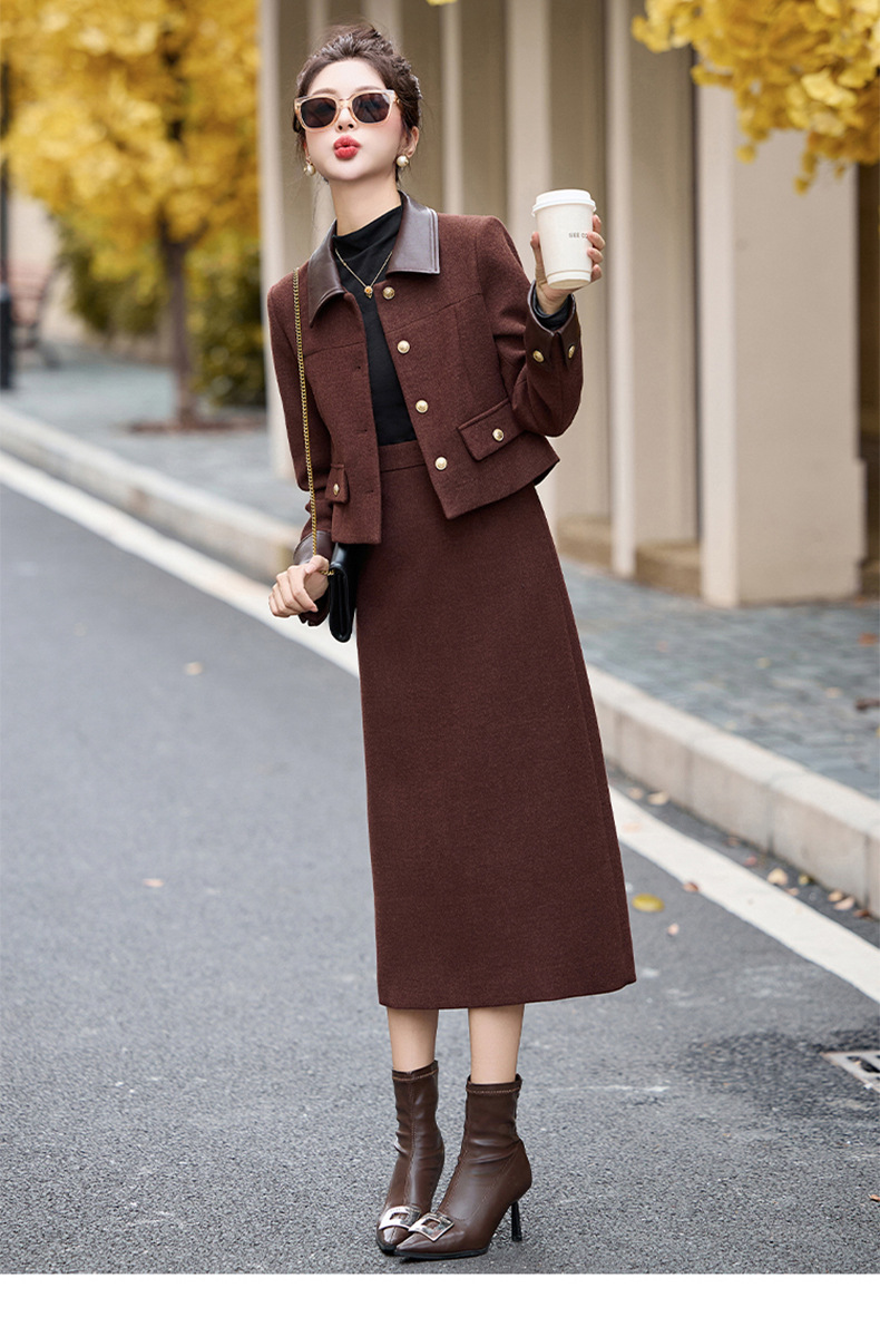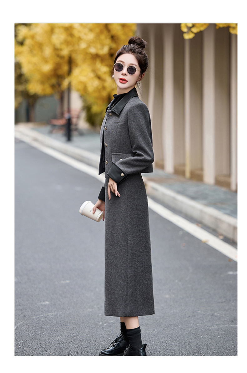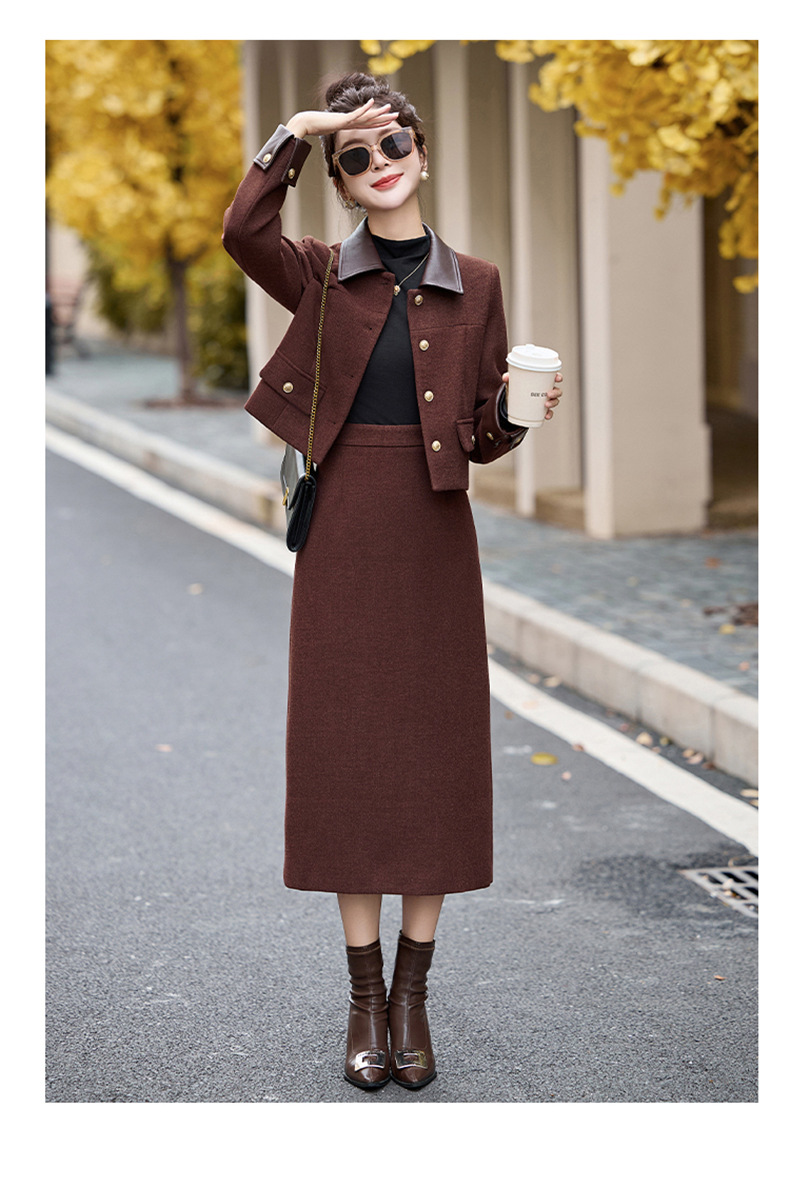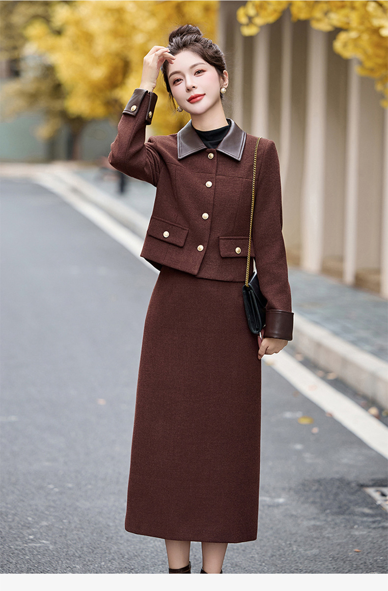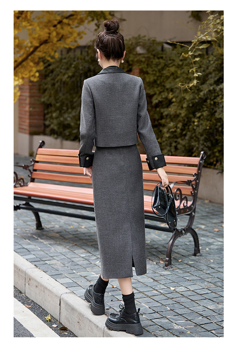 Bộ trang phục hai mảnh này gồm áo khoác và chân váy, thiết kế dành riêng cho mùa thu đông. Áo khoác có cổ bẻ, được lót bằng lớp lông vũ mềm mại giúp giữ ấm tốt. Chất liệu kết hợp tạo điểm nhấn thanh lịch. Chân váy ôn nhẹ tôn dáng. Dễ dàng phối đồ đi làm hoặc dạo phố. Mặc áo khoác với quần tây hoặc kết hợp cùng chân váy có sẵn để có bộ trang phục hoàn chỉnh. | Tên sản phẩm: Áo Khoác Nữ Cả Bộ 2 Món Kín Cổ Hàng Mùa Xuân Thu Đông - Thời Trang Nữ | Mã sản phẩm: B4803 - Giá: 2.720.000đ | Mã nhà sản xuất: HADG-G06Hình ảnh sản phẩm