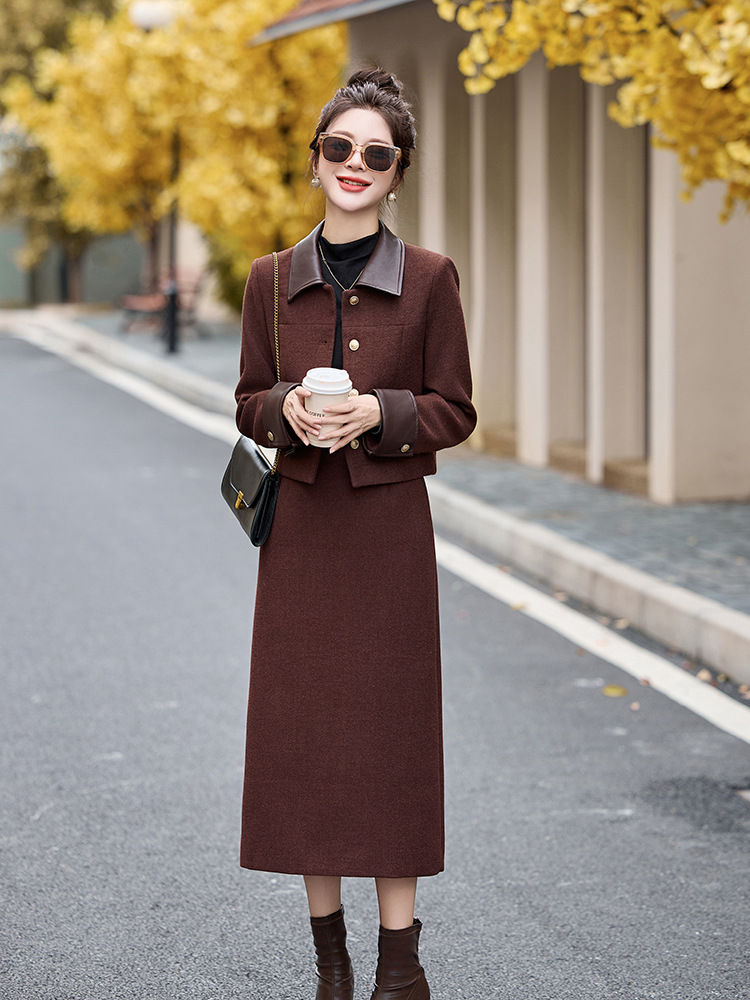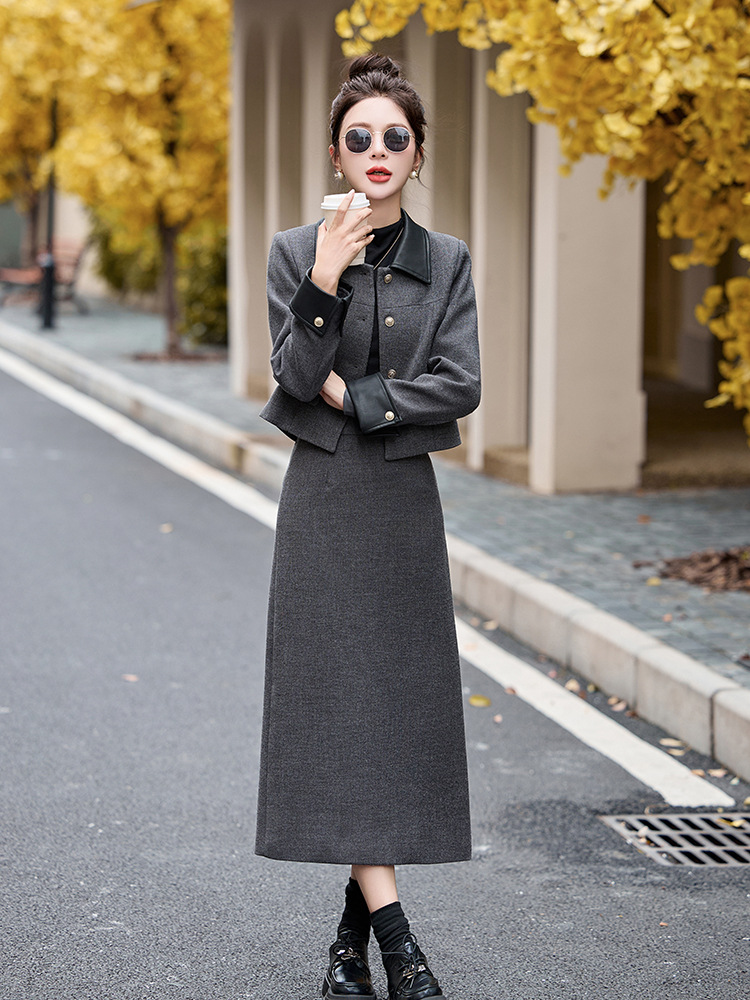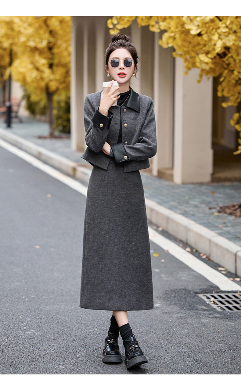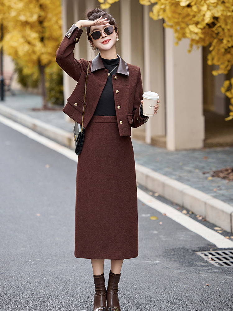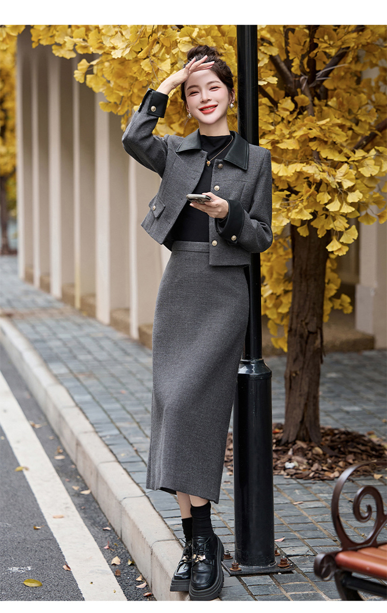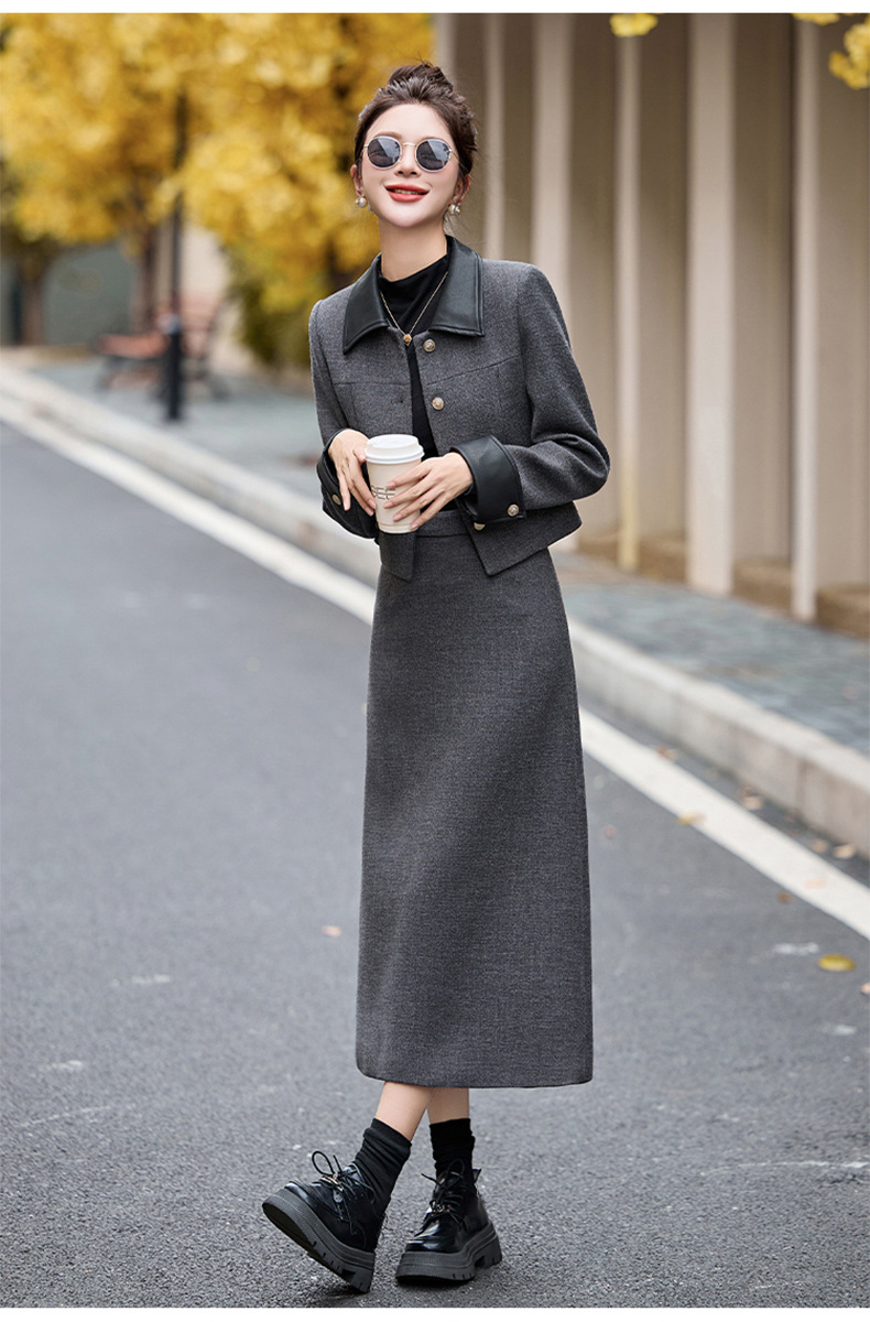 Bộ trang phục hai mảnh này gồm áo khoác và chân váy, thiết kế dành riêng cho mùa thu đông. Áo khoác có cổ bẻ, được lót bằng lớp lông vũ mềm mại giúp giữ ấm tốt. Chất liệu kết hợp tạo điểm nhấn thanh lịch. Chân váy ôn nhẹ tôn dáng. Dễ dàng phối đồ đi làm hoặc dạo phố. Mặc áo khoác với quần tây hoặc kết hợp cùng chân váy có sẵn để có bộ trang phục hoàn chỉnh. | Tên sản phẩm: Áo Khoác Nữ Cả Bộ 2 Món Kín Cổ Hàng Mùa Xuân Thu Đông - Thời Trang Nữ | Mã sản phẩm: B4803 - Giá: 2.720.000đ | Mã nhà sản xuất: HADG-G06Hình ảnh sản phẩm