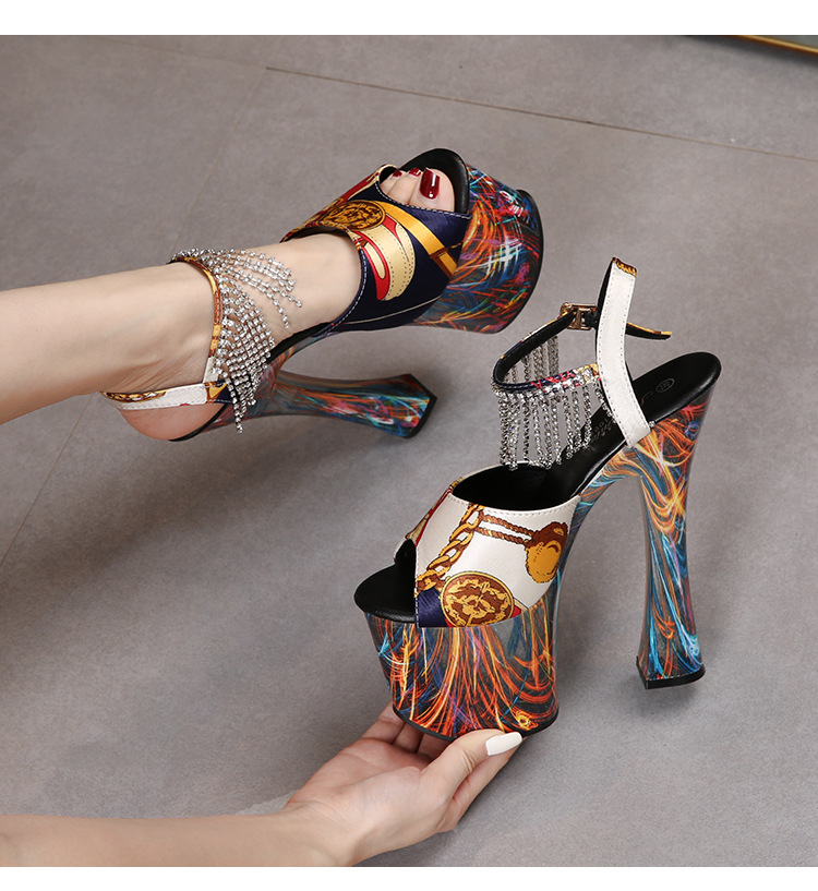 Đôi giày này có phần gót rộng và chắc chắn, tạo dáng đẹp và giúp bạn thêm tự tin. Kiểu dáng mang phong cách dân tộc với điểm nhấn là các viên đá lấp lánh như pha lê. Bạn có thể dùng để biểu diễn, đi chơi hoặc kết hợp với nhiều trang phục khác nhau. Đế cao được thiết kế vững chãi, giúp bạn di chuyển thoải mái hơn trong những hoạt động cần đứng lâu. | Tên sản phẩm: Giày Dép Sandal Nữ Gắn Đá Gót Vuông - Giày Dép Nữ | Mã sản phẩm: B4885 - Giá: 1.060.000đ | Mã nhà sản xuất: JIENNG-G03Hình ảnh sản phẩm