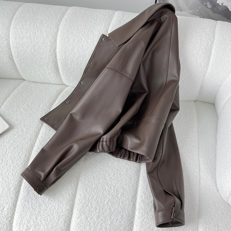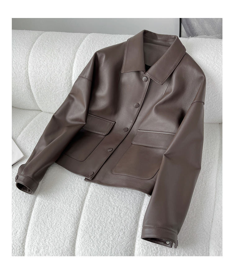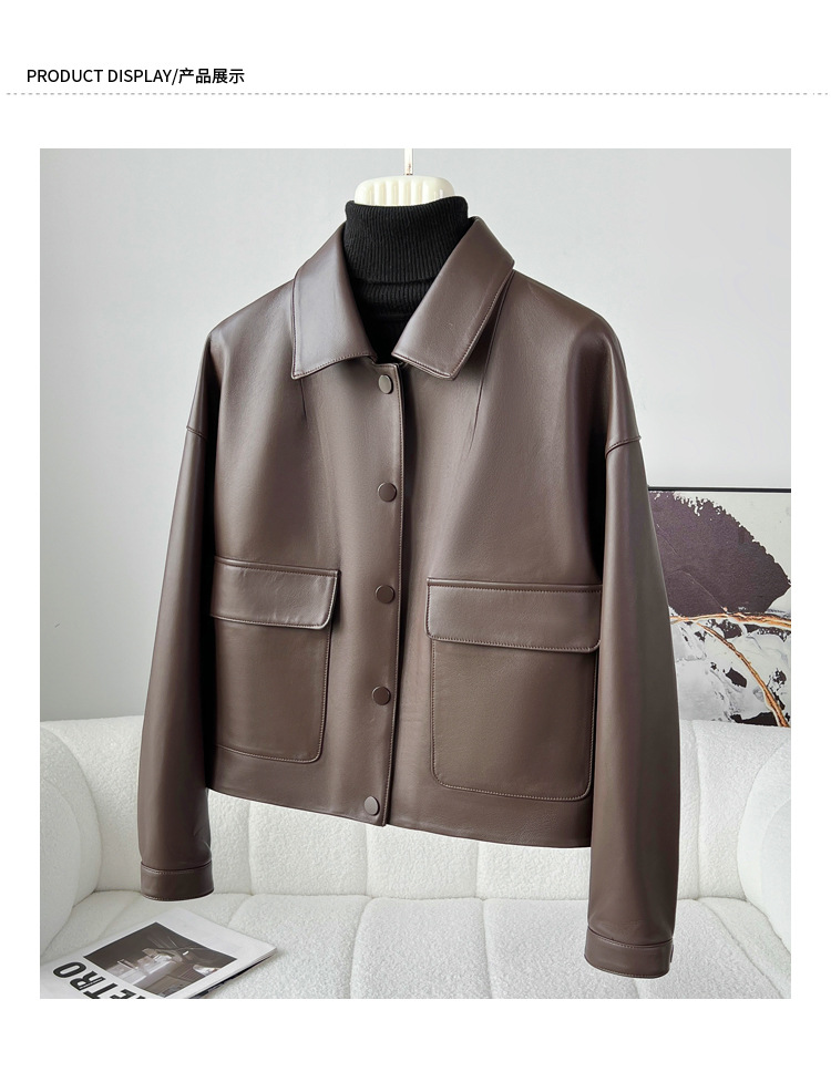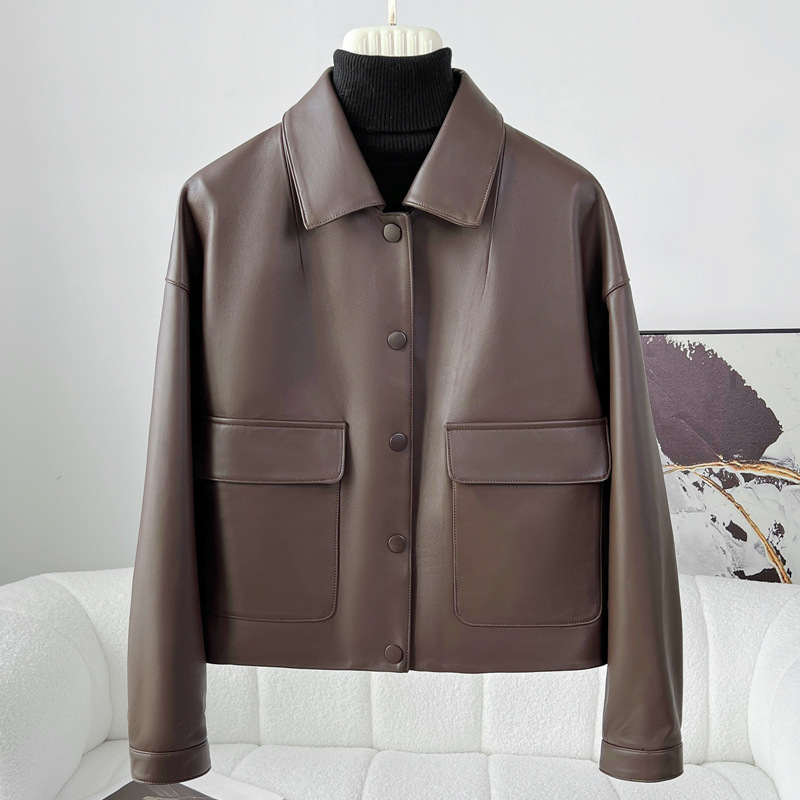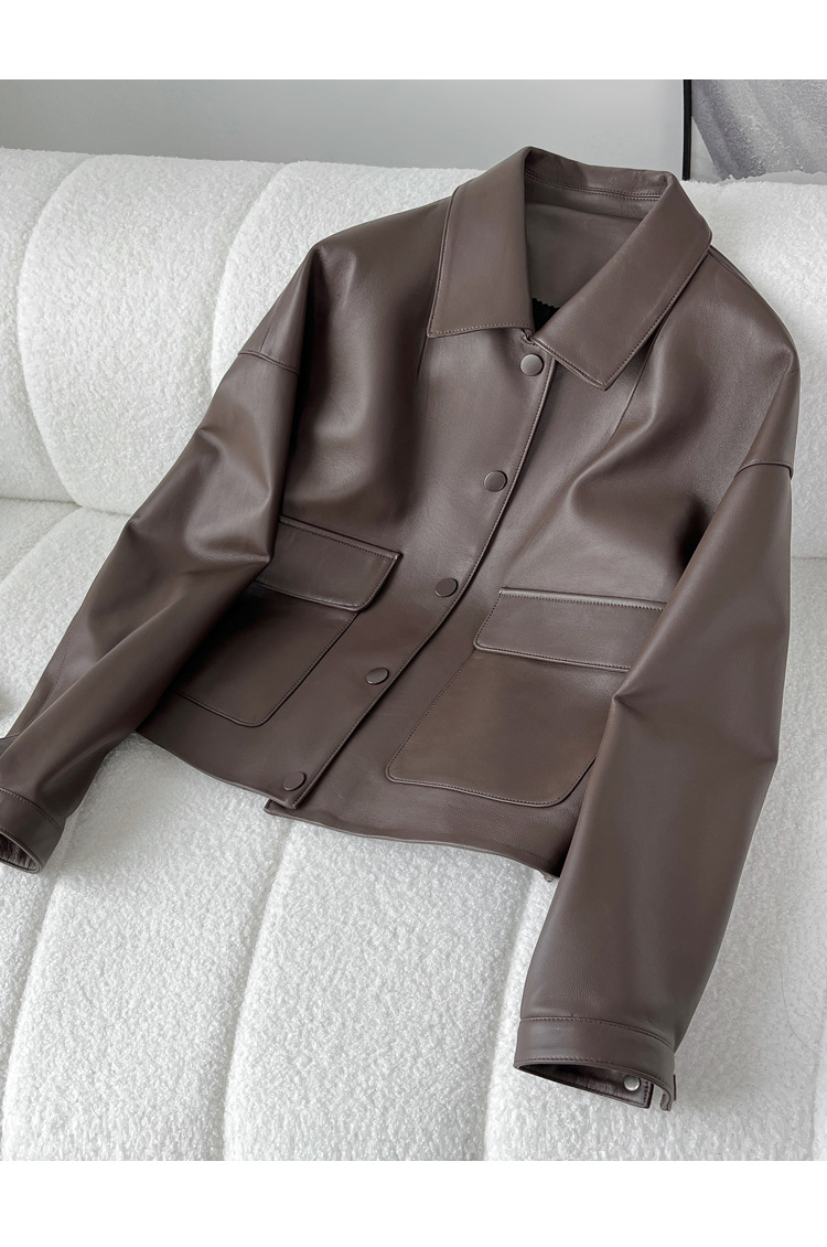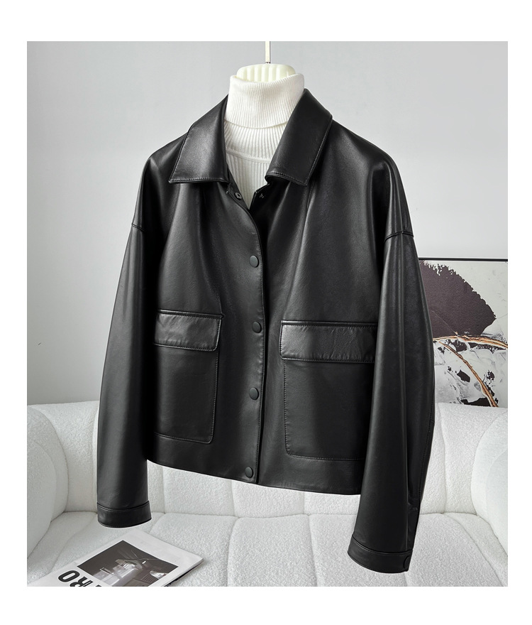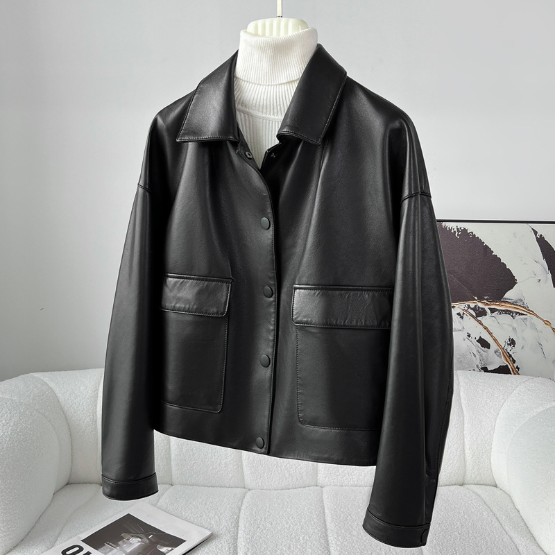 Áo khoác da thật dành cho nữ, được làm từ chất liệu da cừu mềm mại và bền đẹp. Kiểu dáng ngắn, cổ bẻ phóng khoáng mang phong cách thời trang năng động, phù hợp mặc trong tiết trời mùa xuân hoặc mùa thu. Sản phẩm có thiết kế dễ kết hợp với nhiều trang phục như quần jean hay váy. Khi mặc, tránh tiếp xúc với nước mưa và nên lau sạch bằng vải mềm nếu bám bụi. | Tên sản phẩm: Áo Da Nữ Chất Liệu Da Bò Kín Cổ Hàng Mùa Xuân Thu Đông - Thời Trang Nữ | Mã sản phẩm: B4909 - Giá: 5.180.000đ | Mã nhà sản xuất: HADGA-G06Hình ảnh sản phẩm