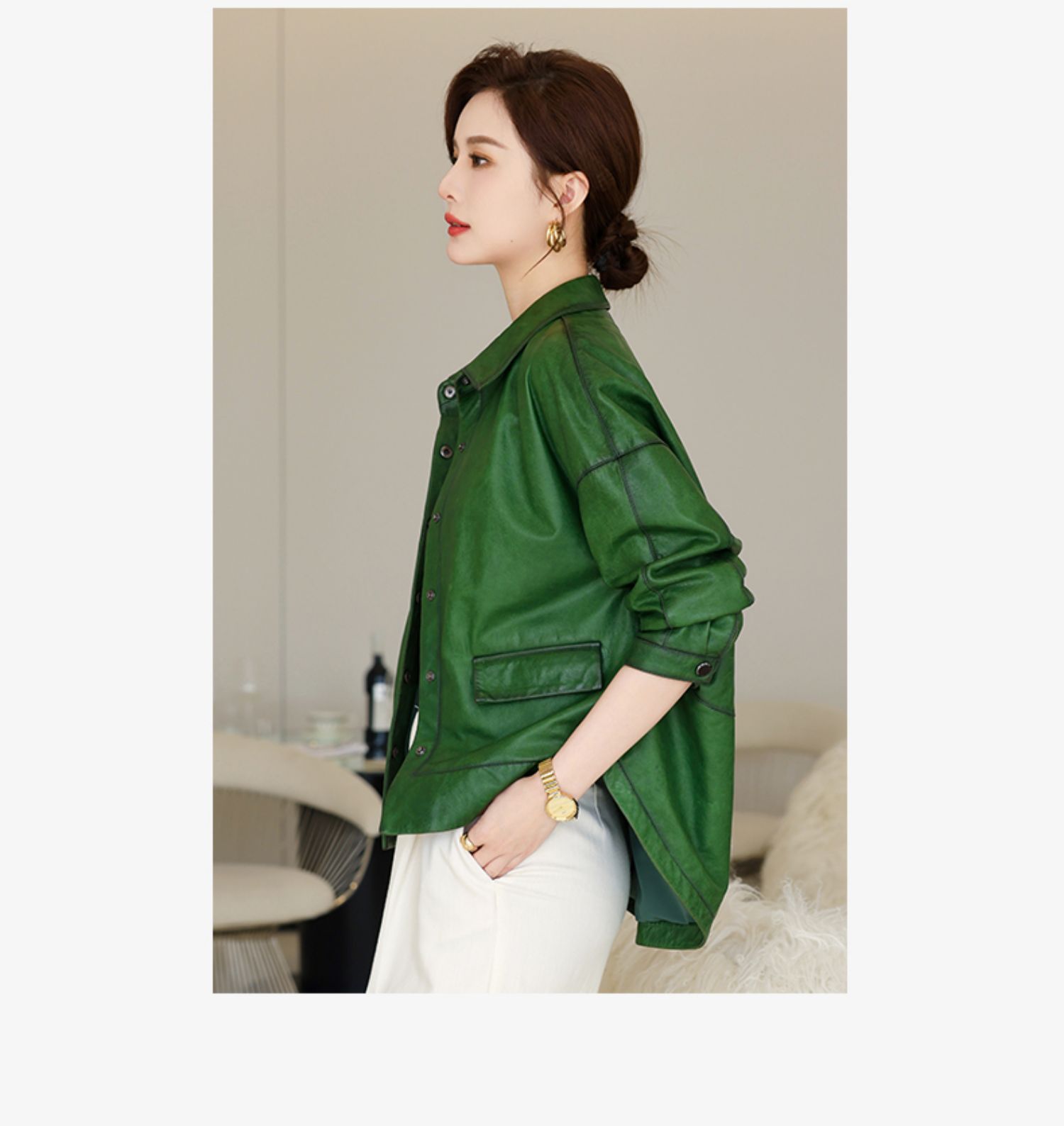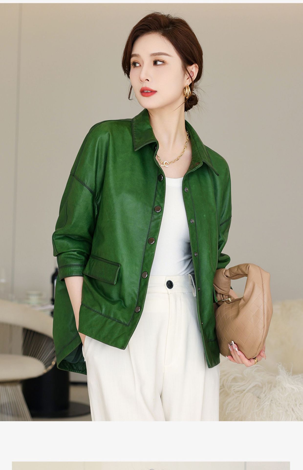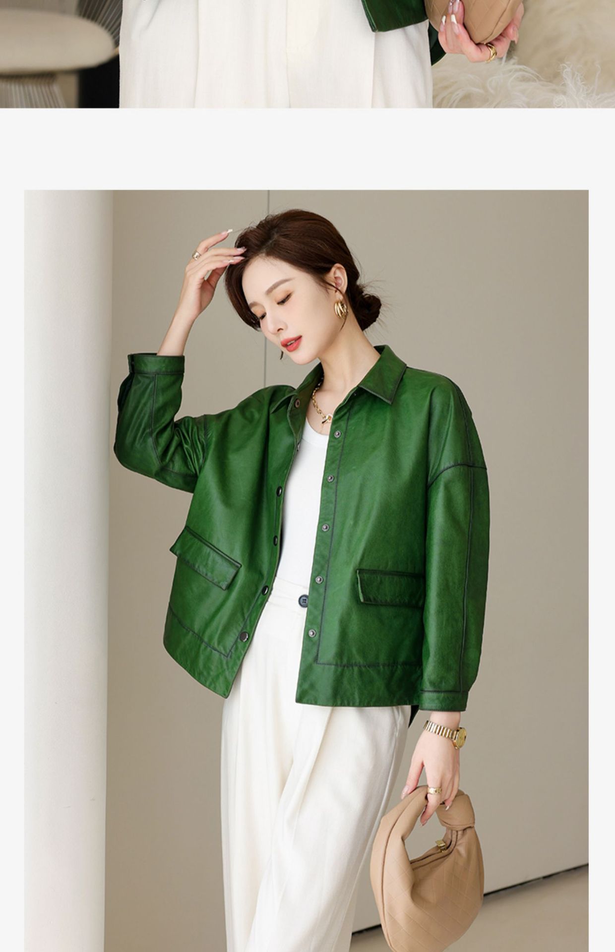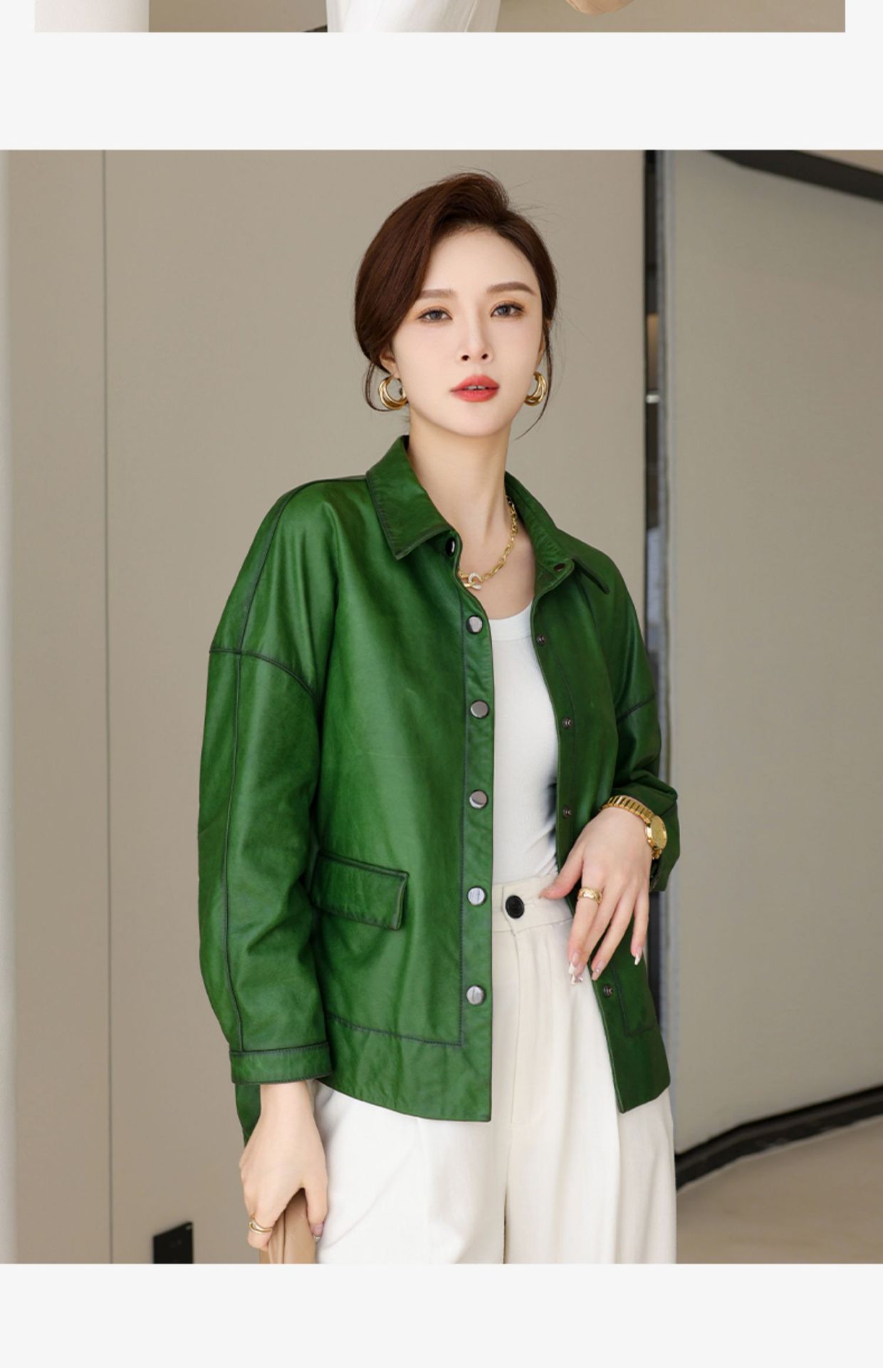 Áo khoác da cổ điển dành cho nữ, được làm từ chất liệu da cừu mềm mại và bền đẹp. Kiểu dáng rộng rãi mang đến sự thoải mái, phù hợp cho những ngày thu se lạnh hoặc tiết trời xuân mát mẻ. Thiết kế này có màu xanh lá tươi mới, tôn lên vẻ ngoại hình năng động. Bạn có thể mặc kết hợp cùng quần jeans và áo thun để tạo phong cách hằng ngày. Dùng khăn mềm ẩm để lau sạch bụi bám trên bề mặt, sau đó treo ở nơi khô ráo. | Tên sản phẩm: Áo Da Nữ Chất Liệu Da Bò Hàng Mùa Xuân Thu Đông - Thời Trang Nữ | Mã sản phẩm: B4910 - Giá: 6.010.000đ | Mã nhà sản xuất: HADGA-G06Hình ảnh sản phẩm